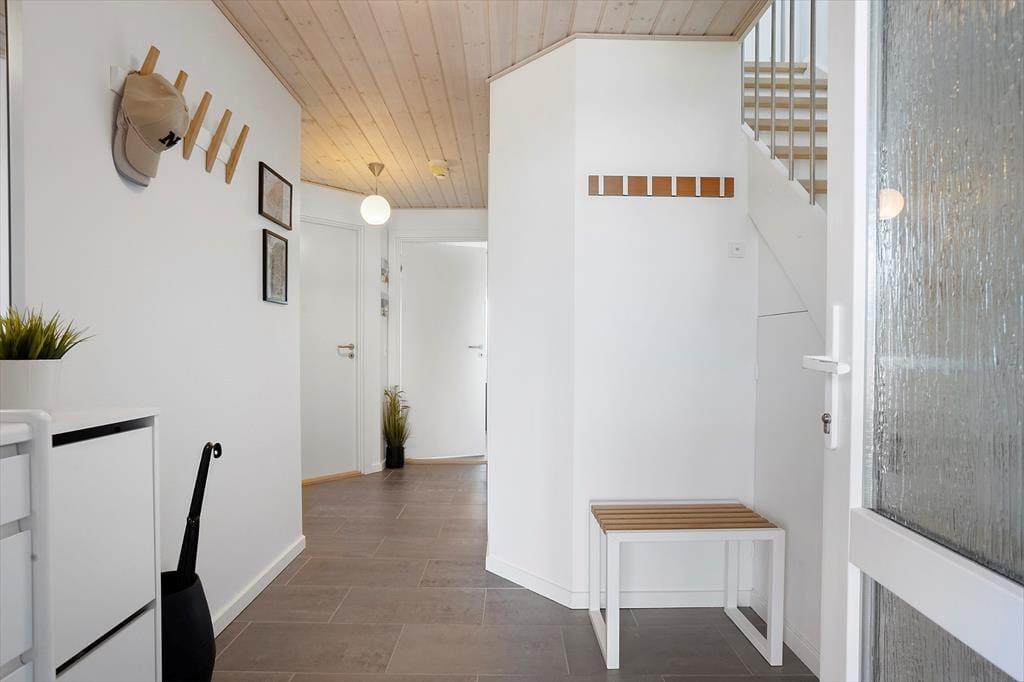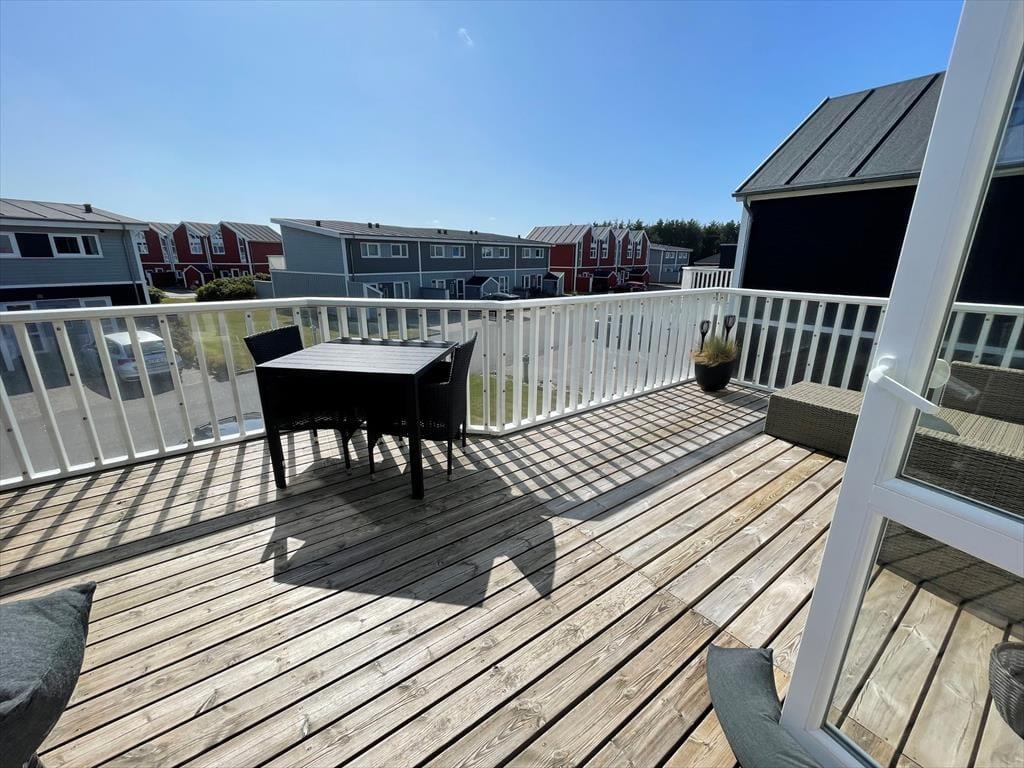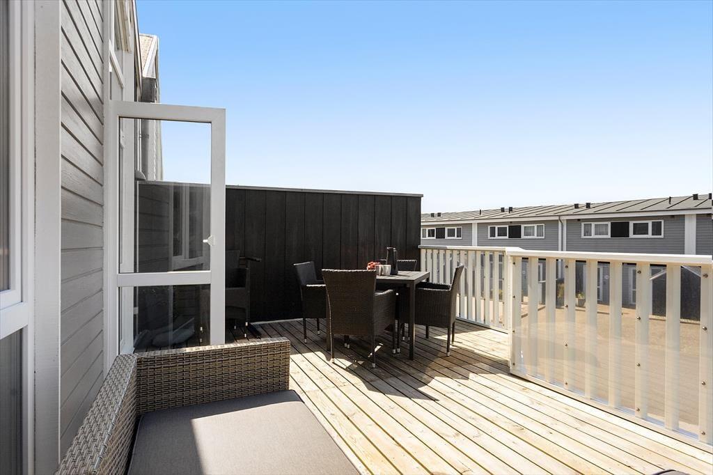 Når solen står højt, trækker livet naturligt udenfor – og her har Laksen 60 meget at byde på. Den store vestvendte altan bliver hurtigt et af feriens favoritsteder. Her kan du nyde eftermiddagslyset og de varme aftentimer, mens du mærker den friske havluft blande sig med duften fra grillen. Altanen indbyder til lange, rolige øjeblikke med udsigt til det grønne område, og måske kan du endda høre havets brusen i det fjerne, når vinden vender rigtigt. På grunden er der god plads til at slappe af, lege eller spille små spil, og du kan finde både sol og læ i løbet af dagen, alt efter humøret. Det er lige præcis den type udemiljø, der gør feriehus livet helt særligt – frihed, ro og tid til hinanden.