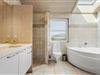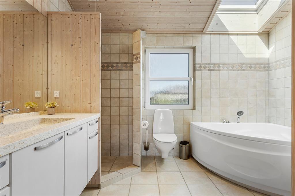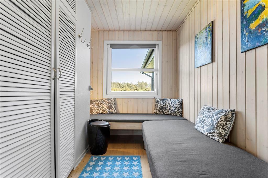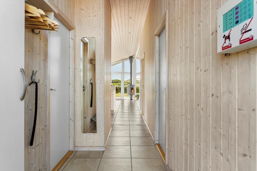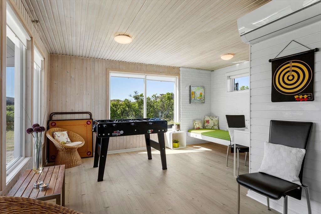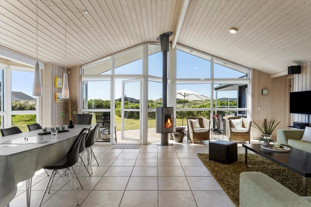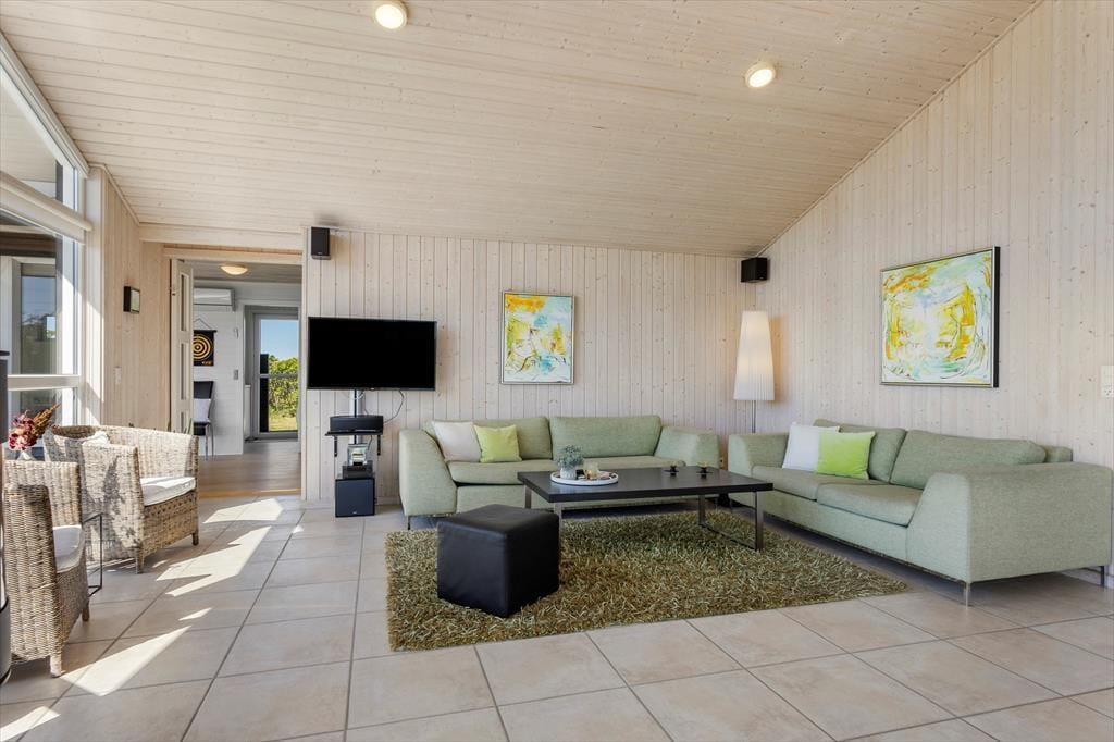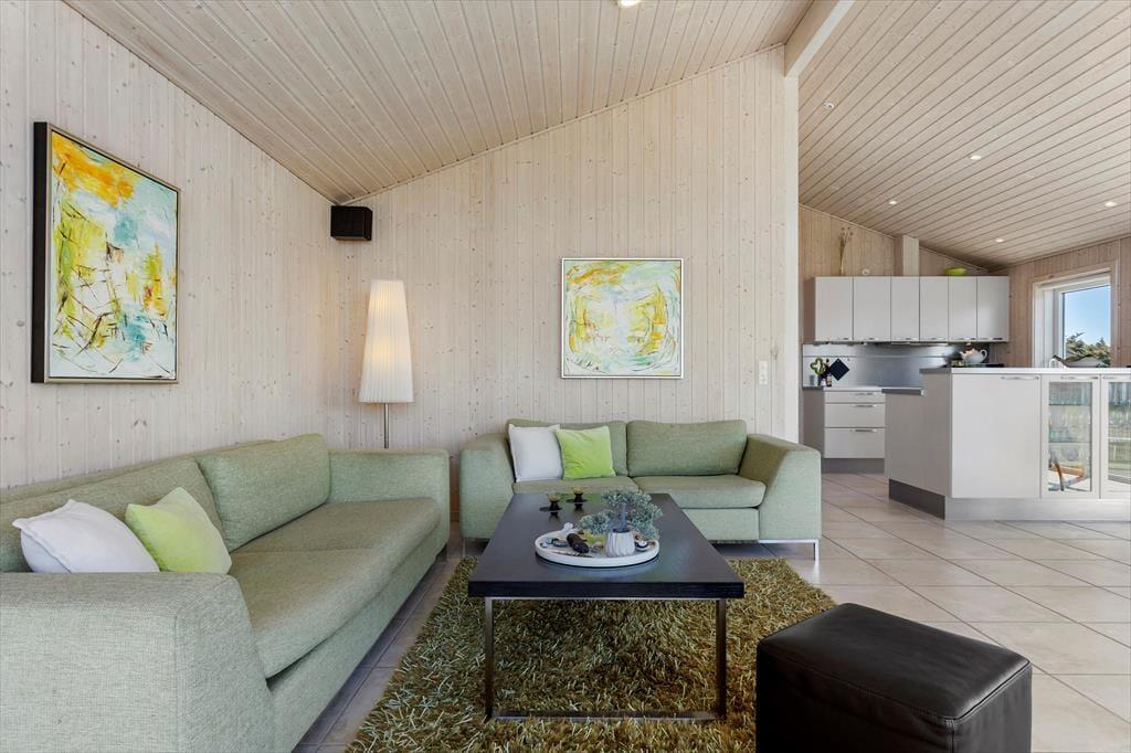 Kom indenfor i et af vores flotte sommerhuse; her er god plads og rum nok til en større familie. Med højt til loftet, store vinduer og klare og glade farver mødes man overalt af en dejlig og imødekommende atmosfære. Dette moderne hus er nyligt renoveret og overalt i huset er der et fantastisk lysindfald. Køkken og stuen er i åbenforbindelse. Huset har en charmerende indretning med kunst på væggene og mange hyggelige detaljer. Husets samlingspunkt er i den rummelige stue, når der skal slappes af i sofaen med tv eller spil på tablets eller pc. Desuden tre fine soveværelser og to badeværelser, hvoraf det ene er med spabad og sauna. Til de kreative er her et dejligt atelier, hvor man kan lade sig inspirere af udsigten og lyset over klitlandskabet, og børnene vil sætte pris på aktivitetsrummet, hvor de kan lege og have det sjovt i timevis. Alt i alt et skønt og dejligt feriehus til en afslappende familieferie.