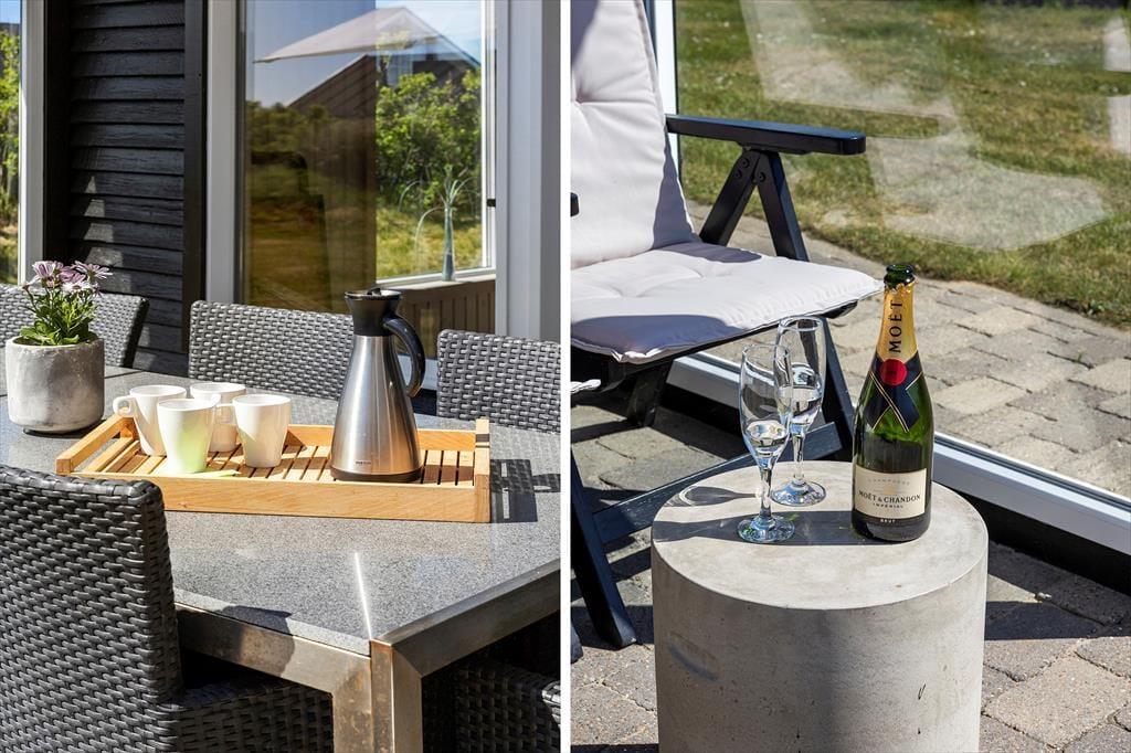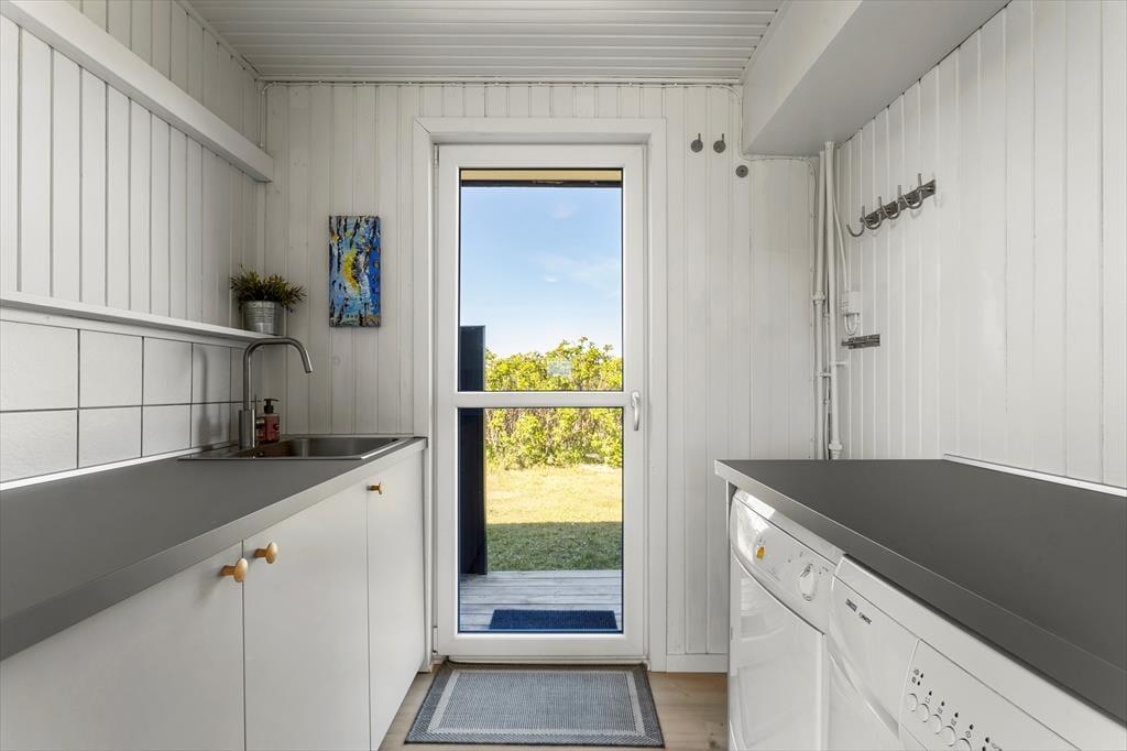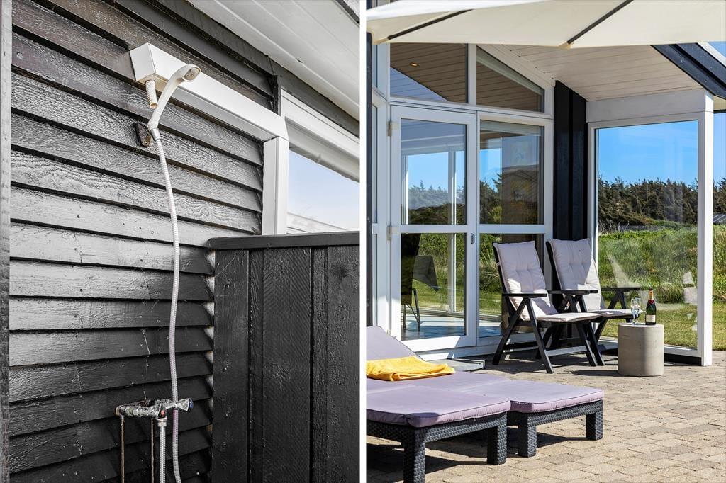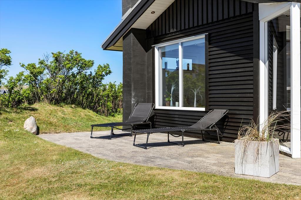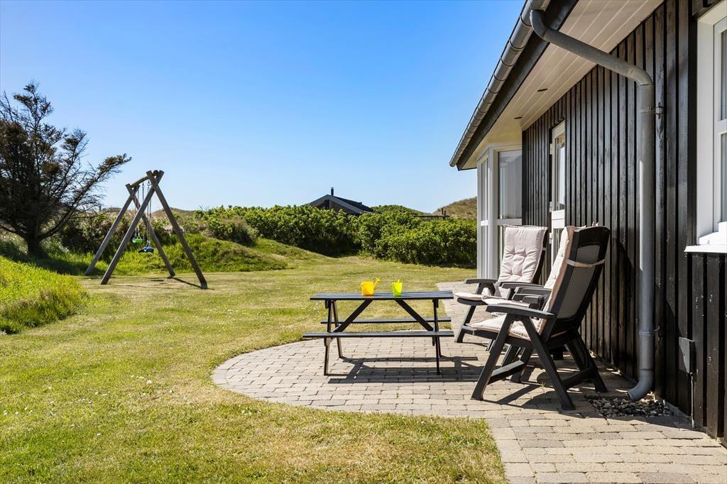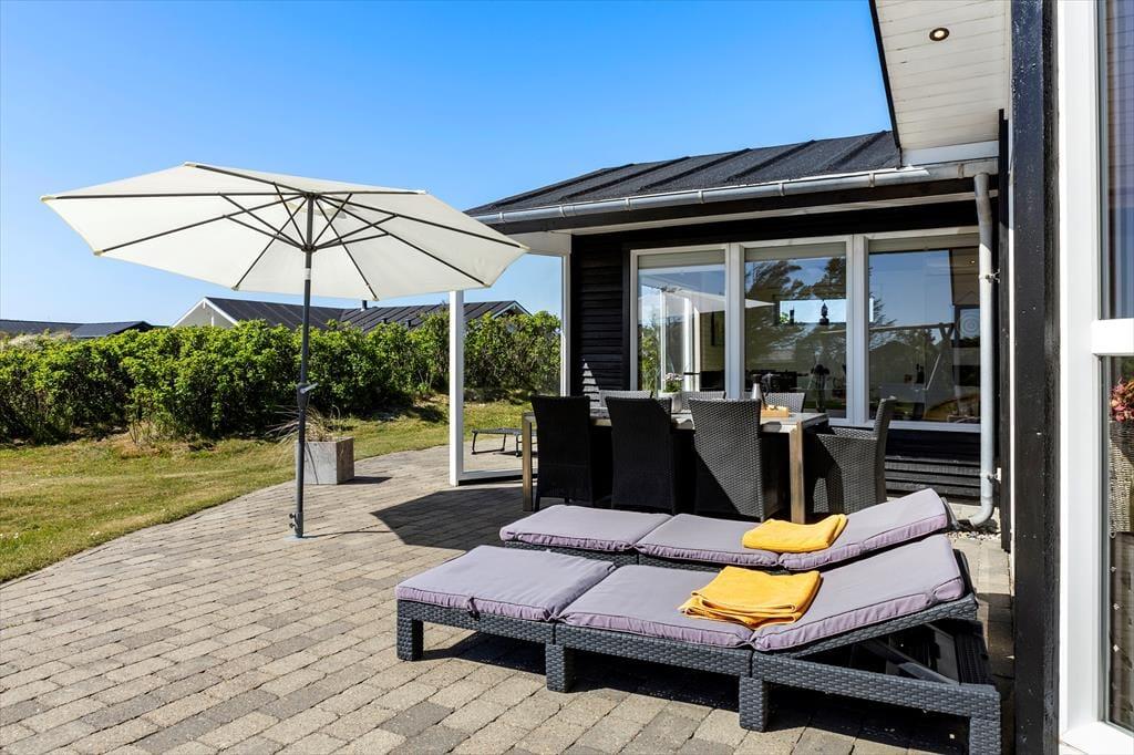 Huset ligger på en fredfyldt plet omgivet af Løkkens smukke natur. Her er stille og roligt og gode muligheder for at slappe af og nyde den danske sommer i fulde drag. Der er udgang til den store fliseterrasse fra både stuen og køkkenet, og bag huset er endnu en lille terrasse med god læ. Her er udendørsbruser, så man kan skylle sandet fra Vesterhavet af sig, inden man træder indenfor.