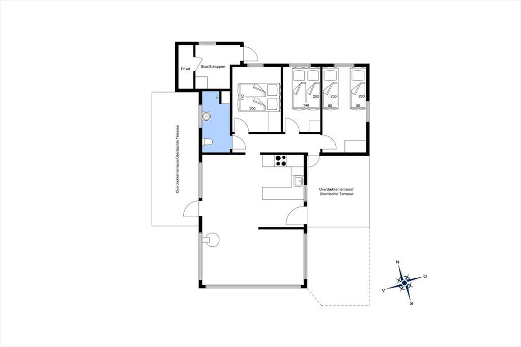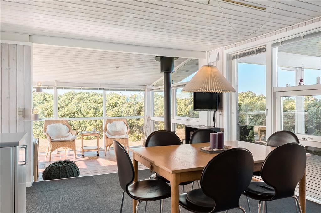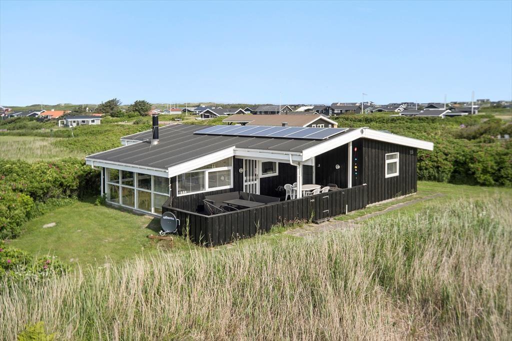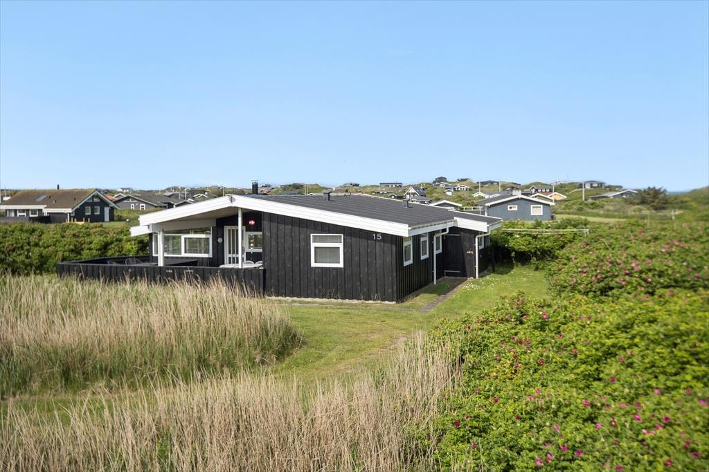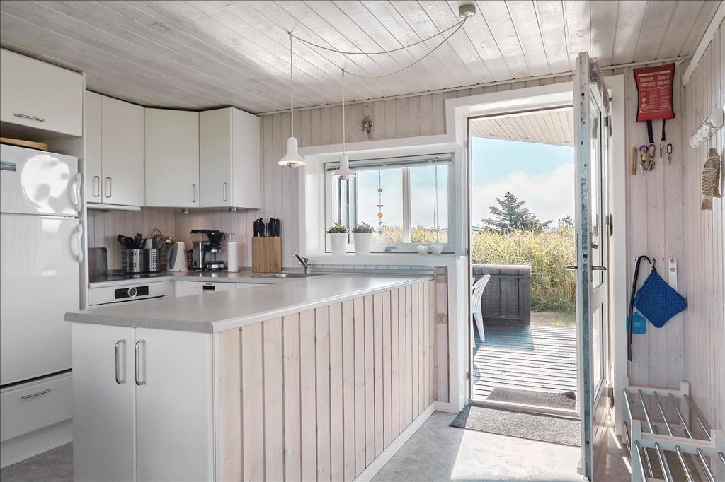 Med to dejlige terrasser er der næsten garanti for mange timer udendørs aktivitet. Foran huset ligger en lukket terrasse, som er delvist overdækket. Der er adgang fra køkkenet, så det er oplagt at tage måltiderne med herud i godt vejr. På bagsiden af sommerhuset, mod Vesterhavet, er en overdækket vestvendt terrasse med udsigt over et fælles naturområde; her kan man slappe af til lyden af Vesterhavets brusen og færdes i fred og ro, da der ikke er naboer til denne side.