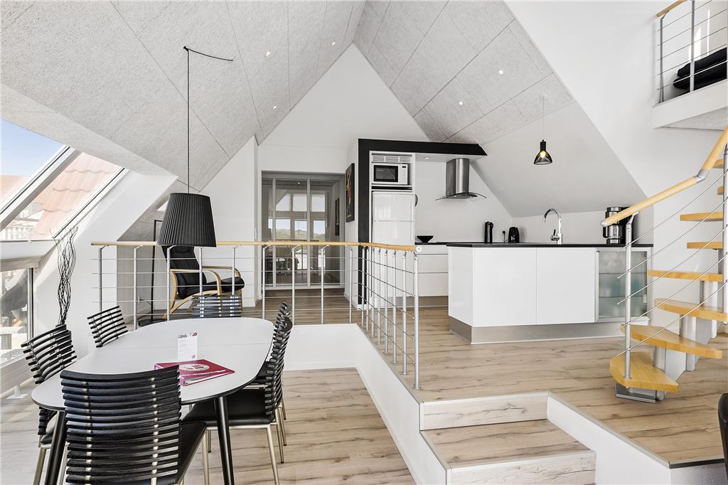 Spændende indretning og havudsigt fra balkon, helt perfekt til en byferie i Nordjylland.