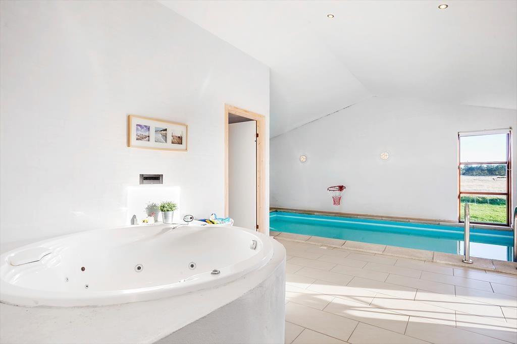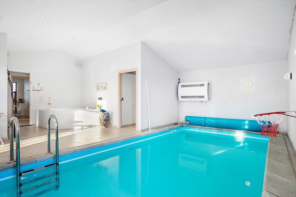 Den flotte og store poolafdeling med den 16m2 store pool indbyder til mange timers sjov og glæde. Efter vandpjask står saunaen klar, og har I ikke fået vand nok, er spabadet klar til at forkæle jeres trætte kroppe.