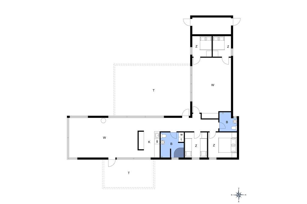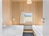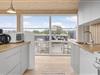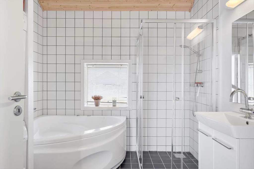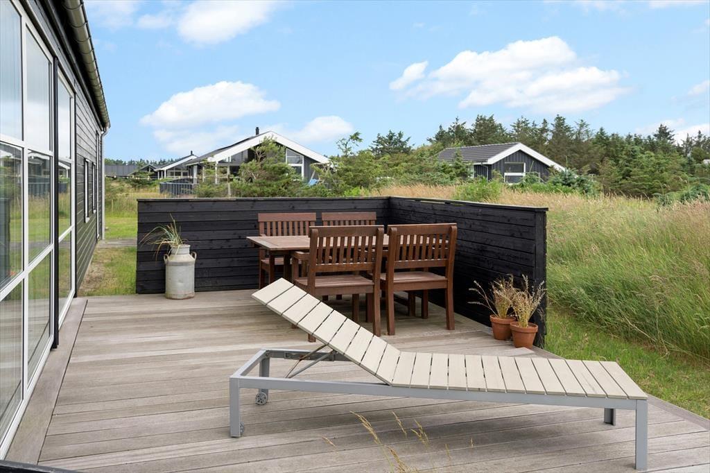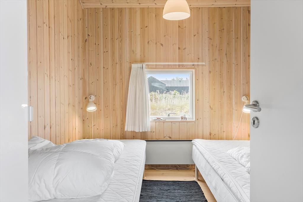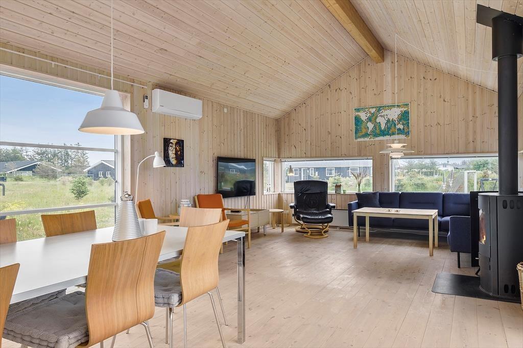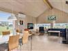 Inden døre har I hele 141 m2 at brede jer på, og med fire soveværelser og to badeværelser er planløsningen perfekt afstemt til otte personer. Trænger I til en rolig eftermiddag, er stuens sofaafdeling et skønt sted at sætte sig med sin bog eller tablet – eventuelt med ild i brændeovnen, hvis vejret er til det. Vil I spille brætspil, kan I samles omkring spisebordet, der står mellem stuens store vinduespartier og lige ved det åbne køkken. Er humøret mere til en film, kan det lade sig gøre både i stuen og i aktivitetsrummet, for begge rum er udstyret med et stort fjernsyn. På det største af husets badeværelser finder I et spabad, så wellness kan også indgå i afslapningsstunderne. Skal der være mere gang i den, er det skønt at have aktivitetsrummet, hvor I kan dyste i bordtennis og bordfodbold.