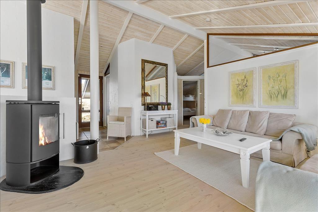 Vi er stolte over at formidle udlejningen af dette sommerhus, som med den varme og charmerende indretning, byder gæsterne velkommen fra første øjeblik. Husets indretning er elegant og stilfuldt med kvalitet for øje, og det åbne køkken-opholdsrum har store vinduespartier, som lukker dejligt med lys ind. Der er også mulighed for at tænde op i brændeovnen i stuen og på den måde skabe lidt hyggestemning. I sommerhuset er tre soveværelser og et flot badeværelse med sauna og spabadekar og også et lille gæstetoilet med bruser. Kort sagt et skønt og fuldt udstyret sommerhus med en hyggelig atmosfære, som vil danne gode rammer om enhver ferie.