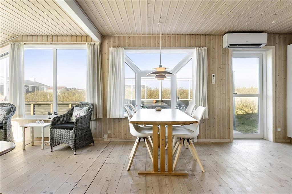 Har man først én gang holdt ferie ved Vesterhavet og oplevet det fantastiske lys og det fascinerende hav, ønsker man bare at komme tilbage hertil. I dette sommerhus får man gode rammer til en hyggelig og afslappende ferie tæt ved vandet. Sommerhuset er charmerende indrettet med mange vinduer og en flot glaskarnap, så lyset af sig selv kommer ind i rummene, og samtidig kan udsigten nydes ud over klitlandskabet. Man har rådighed over et åbent køkken-alrum med stue, to værelser og et badeværelse med bruser, og af moderne faciliteter kan blandt andet nævnes trådløst internet, gode hårde hvidevarer, varmepumpe og ikke mindst en centralt placeret brændeovn, som spreder varme til hele huset. Fra køkkenet er der en direkte adgang til en flot læfyldt terrasse. Sommerhuset er bedst egnet til et par eller to, som gerne vil opleve denne smukke del af Nordjylland sammen, men kan også benyttes af en lille familie med et enkelt eller to børn.