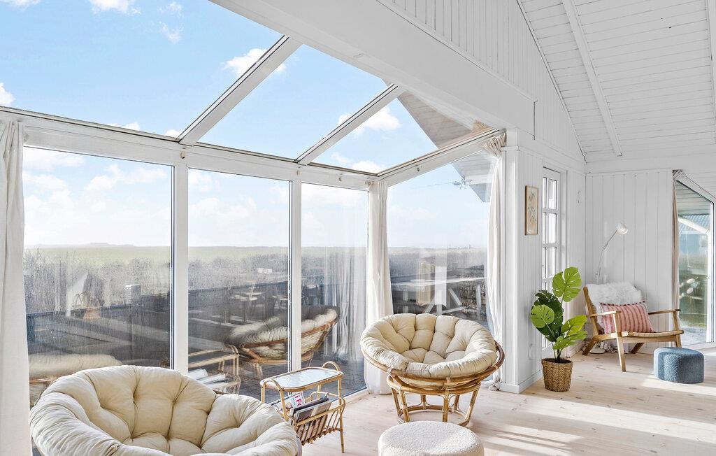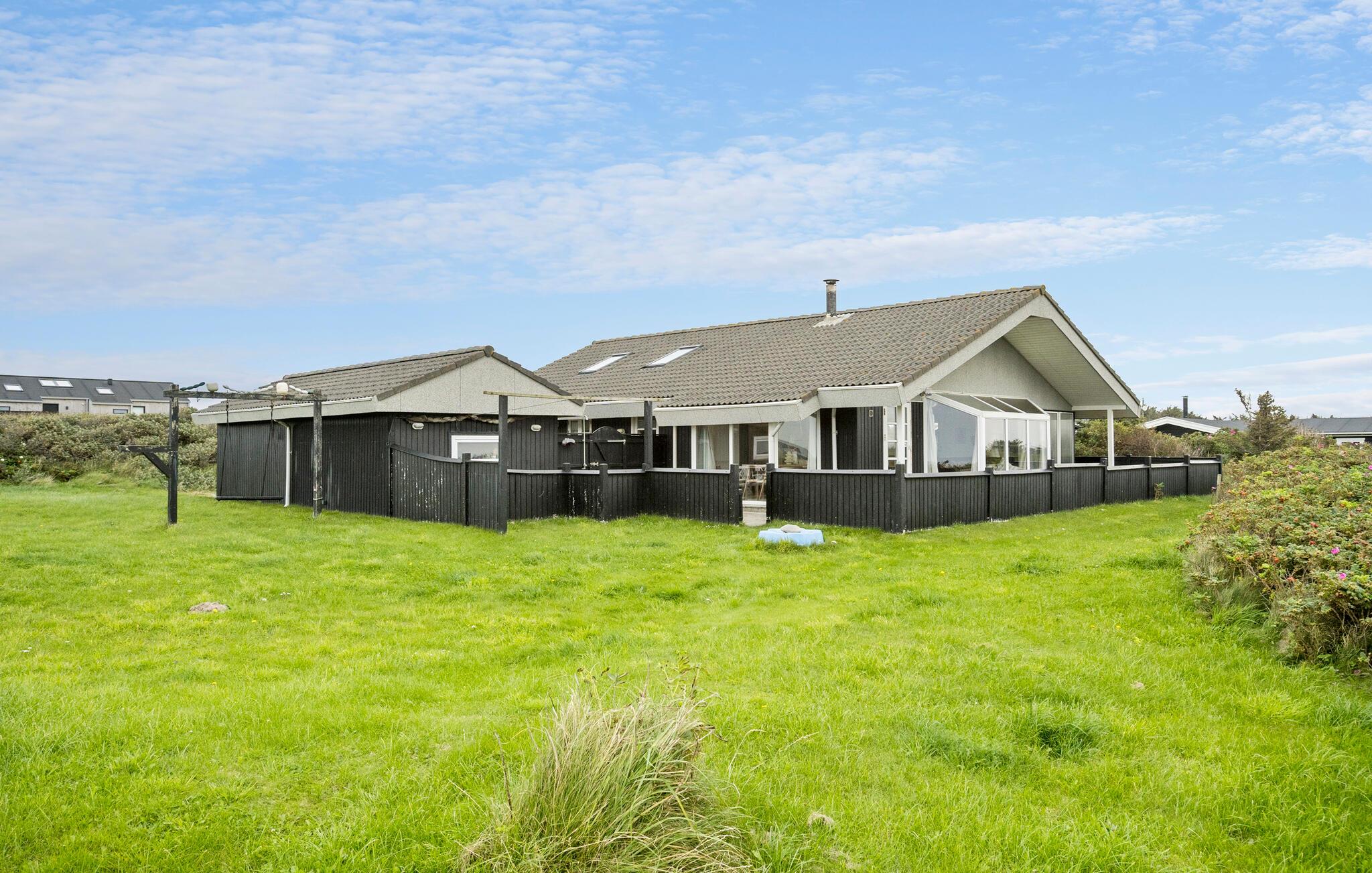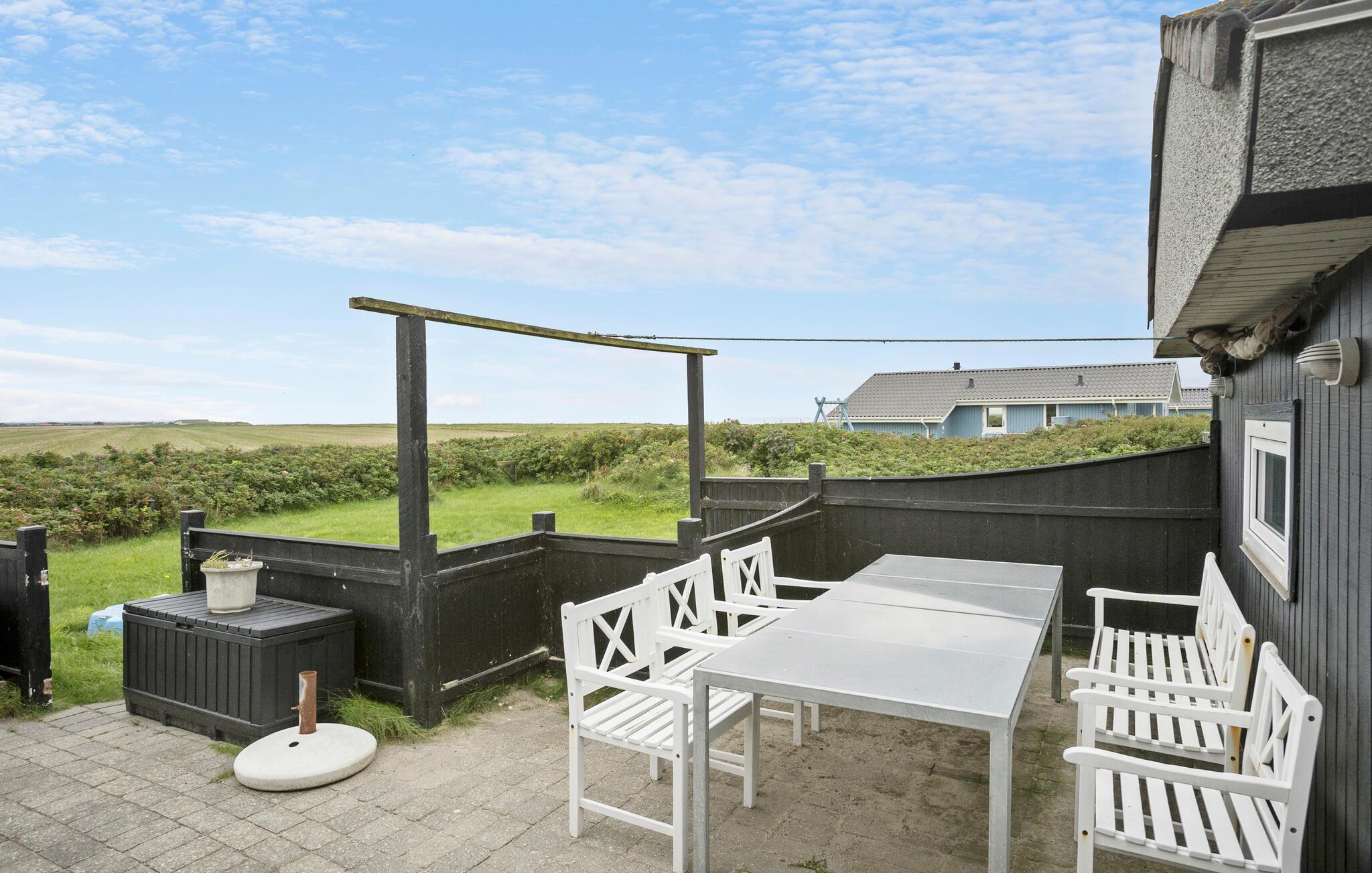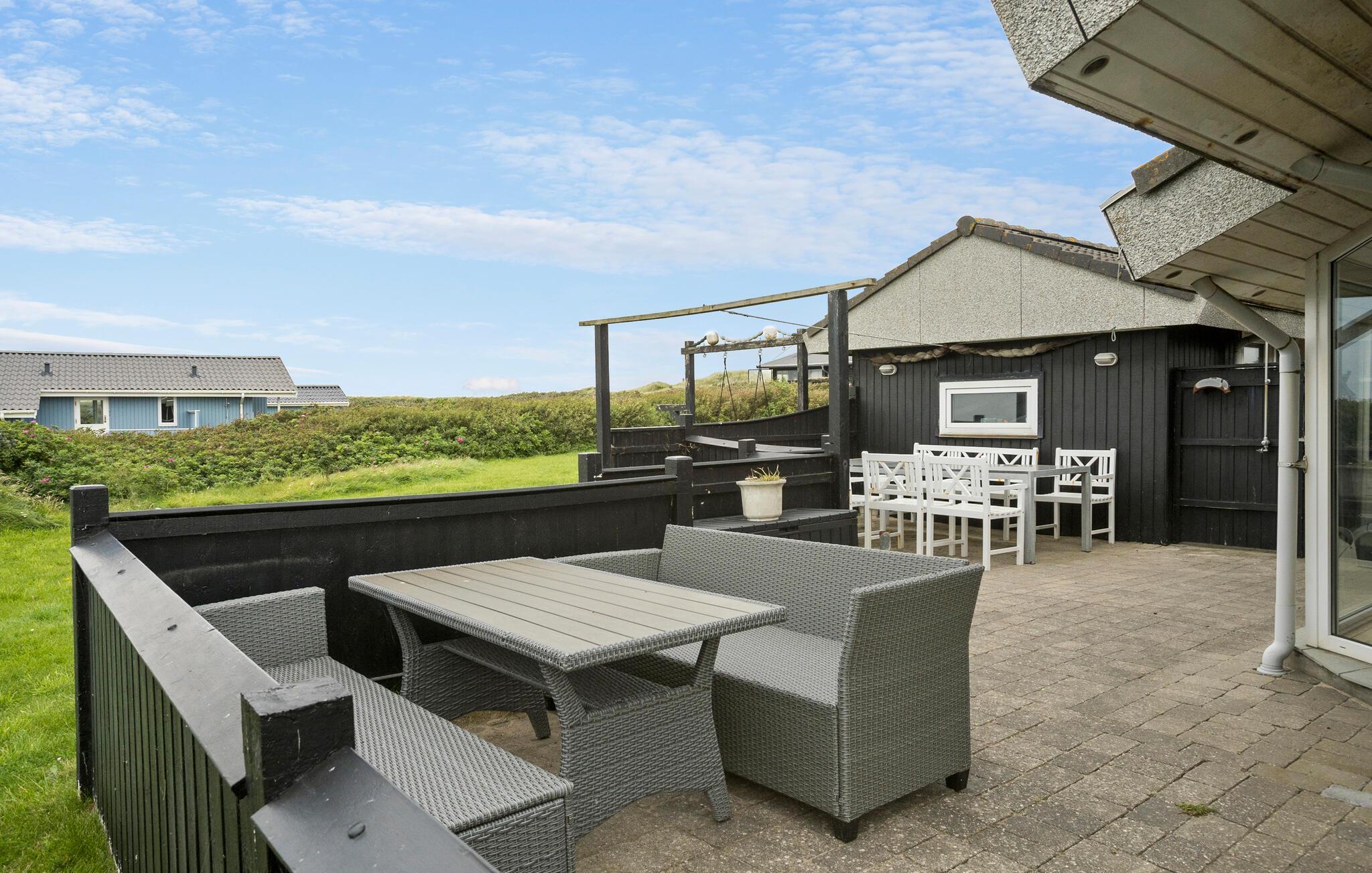 Huset venter på jer i skønne omgivelser, kun få skridt fra havet. Se frem til hyggeligt samvær i de lyse rum og slap af i saunaen efter jeres aktiviteter eller nyd den smukke udsigt over landskabet fra lænestolene i hyggeskrogen, mens brændeovnen spreder en behagelig varme. Naturgrunden har masser af plads til leg og afslapning. Ryk middagen udenfor og servér lækre retter fra grillen på terrassen. I kan også spadsere til den nærliggende strand ved det friske Vesterhav. En lille sti fører jer til strandtrappen. Der er en lille købmandsbutik i nærheden af huset i sommermånederne.