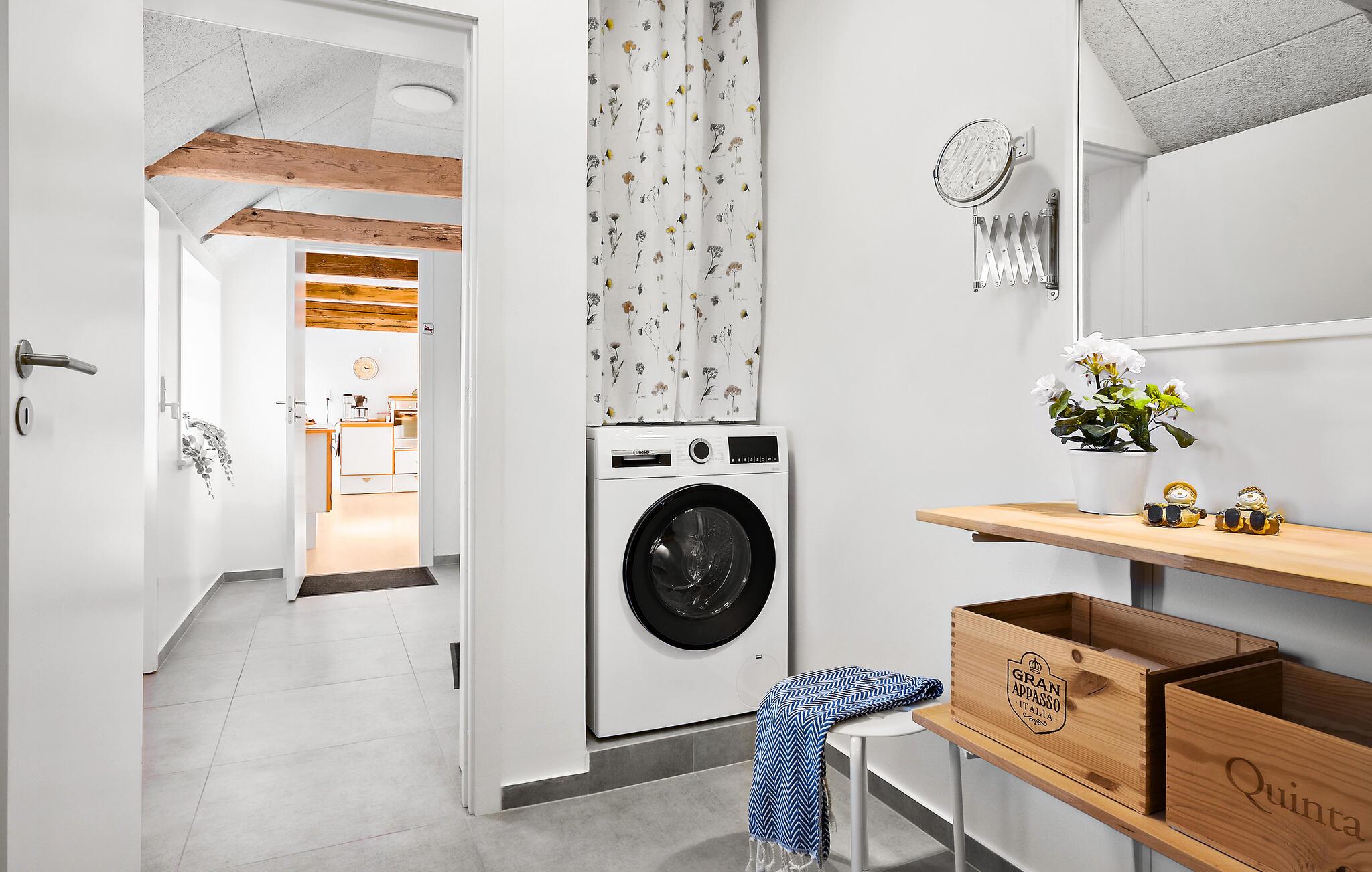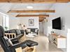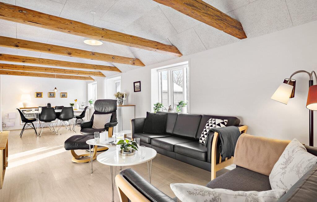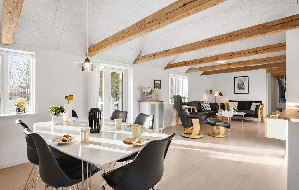 Tag en behagelig pause fra hverdagen, og lad turen gå til Nordjylland og dette komfortable feriehus. Boligen er indrettet med synlige træbjælker, adskillige træelementer og lyse farver, som skaber en særlig, varm atmosfære, hvor I ikke kan undgå at koble af og komme helt ned i tempo. Særligt i det åbne opholdsrum venter jer nogle vidunderlige fællesstunder; I kan piske nogle lækre retter sammen i køkkenet, mens I følger med i samtalen i det behagelige sofaarrangement. Der er lagt op til mange hyggelige aftener med brætspil ved spisebordet, inden I smider fødderne op i sofaen og lader en begivenhedsrig dag gå på hæld.