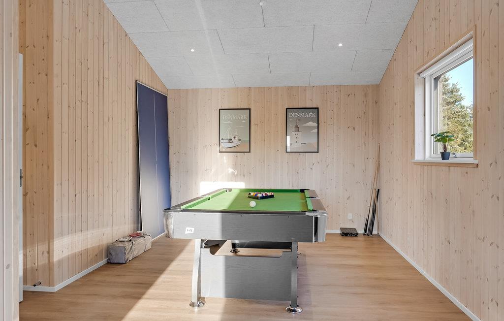 Glæd jer til et behageligt ophold i dette hyggelige træhus, som er særdeles velegnet til en familie eller en gruppe venner. Store vinduespartier giver rummene et lyst, åbent udtryk. Slap af i stuen og underhold jer med poolbordet. Om sommeren kan I sidde ude på den store terrasse og nyde de milde sommeraftener. I køligere årstider kan I varme jer i saunaen efter en frisk gåtur og om aftenen lytte til de knitrende flammer i brændeovnen, mens I spiller kort eller brætspil i de behagelige møbler.