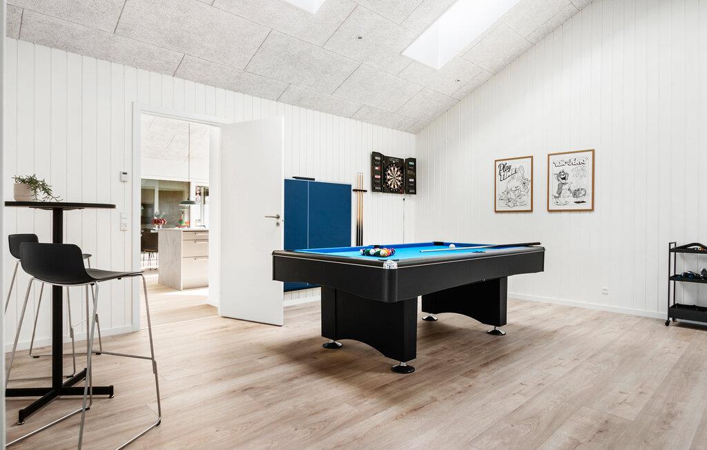 Dette feriehus er det optimale sted for en fantastisk ferie på den danske vestkyst. Beliggende i den charmerende kystby Løkken byder huset på en familieferie fyldt med spændende aktiviteter. Det rummelige hus byder på plads til flere familier. Det stilfuldt designede køkken er ideelt til at lave mad sammen, mens opholdsstuen med kærlige detaljer skaber en hyggelig og indbydende atmosfære. Find jer godt til rette i den komfortable sofa, spil brætspil eller nyd afslappede filmaftener. Eller organiser familieturneringer i billard, bordtennis eller dart. På terrassen kan I slappe af på liggestolene, mens børnene morer sig på gyngen. Spabadet på terrassen samt den indendørs pool og sauna giver ekstra afslapning. På grund af feriehusets bekvemme beliggenhed er udflugter i området let mulige. Løkken Strand lægger op til en forfriskende svømmetur i Vesterhavet. I vil også finde adskillige caféer, restauranter og butikker der. Eventyrsøgende kan se frem til spændende aktiviteter som surfing og kitesurfing.