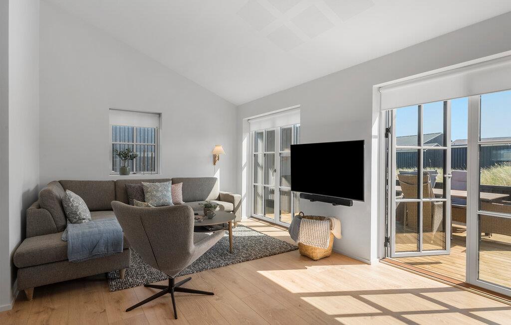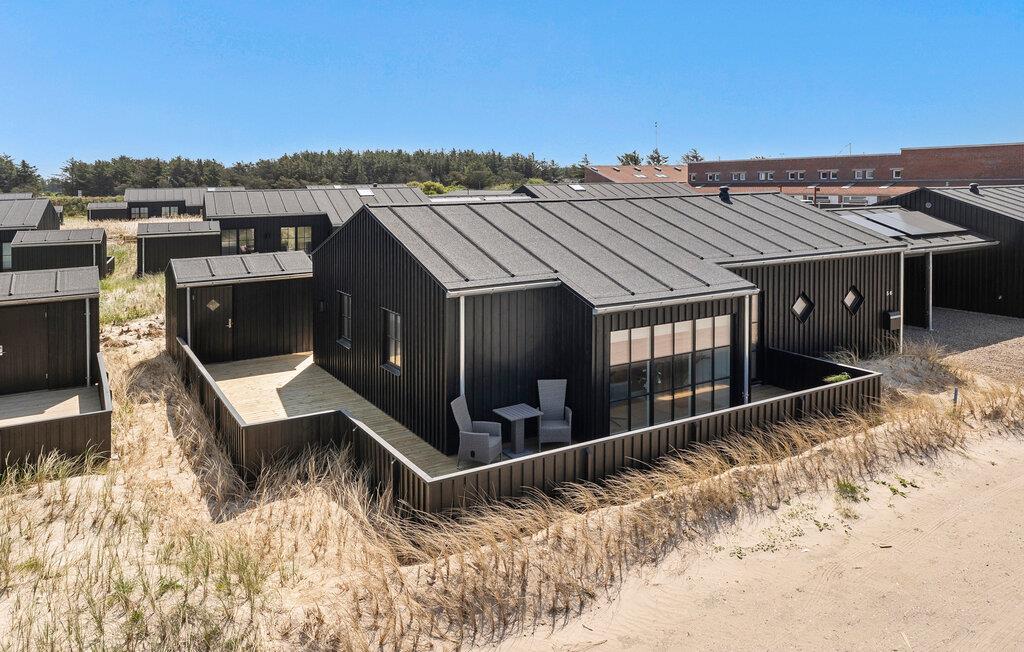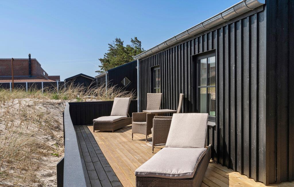 Moderne sommerhus med åben terrasse nær Løkkens sandstrand, perfekt til afslapning og aktiviteter i naturskønne omgivelser.