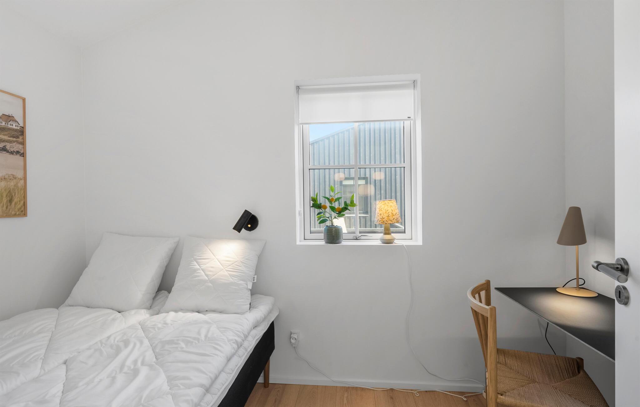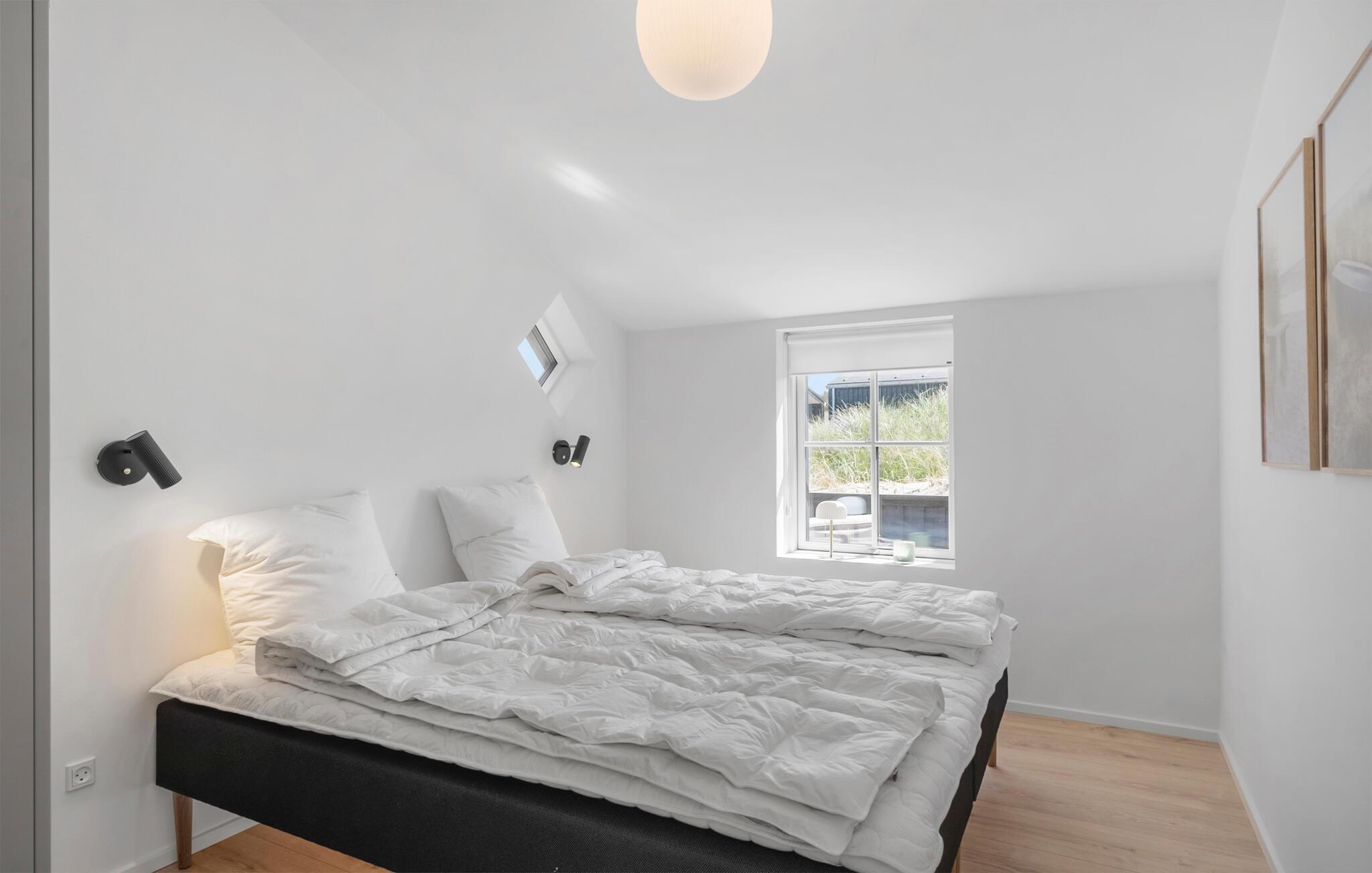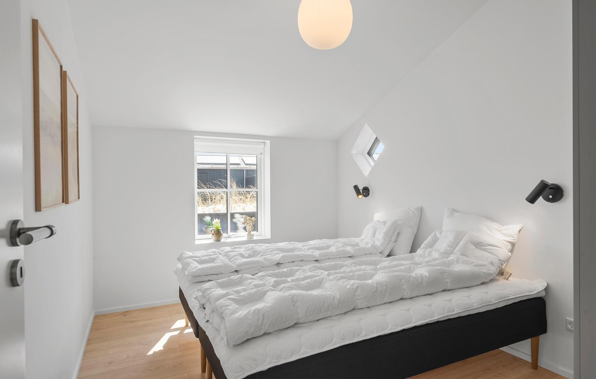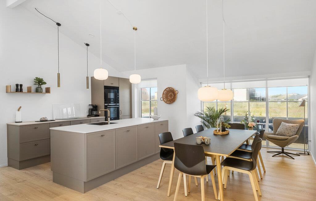 Dette komfortable sommerhus, ikke langt fra Løkkens sandstrand, byder jer velkommen med lyse, smagfulde værelser. Glæd jer til hyggelige madlavningsaftener i det åbne køkken og fælles måltider ved det stilfuldt oplyste spisebord. Efter en lang dag i den friske havluft inviterer den komfortable sofa jer til at nyde harmoniske spilleaftener eller afslappende læsetimer.