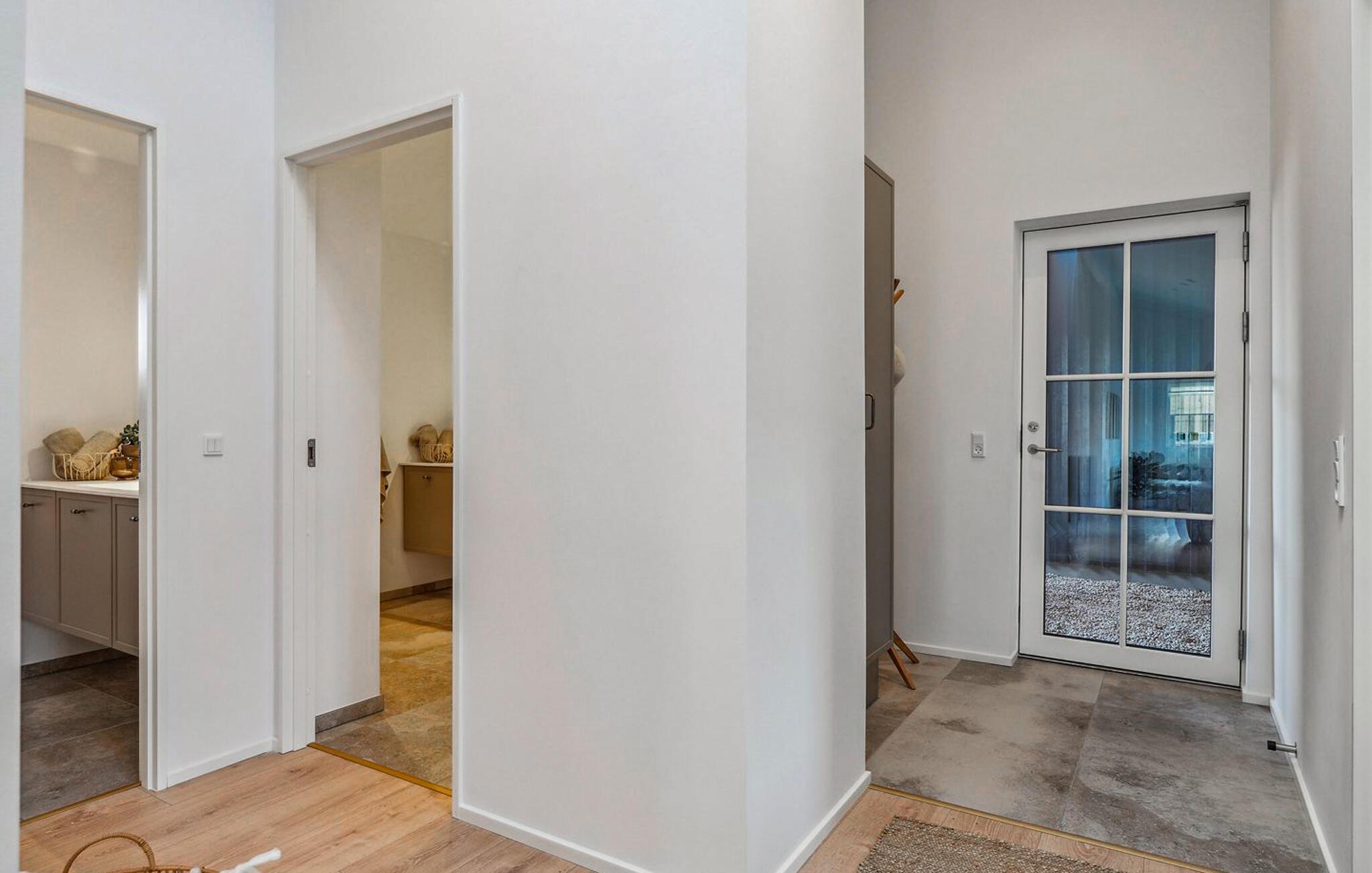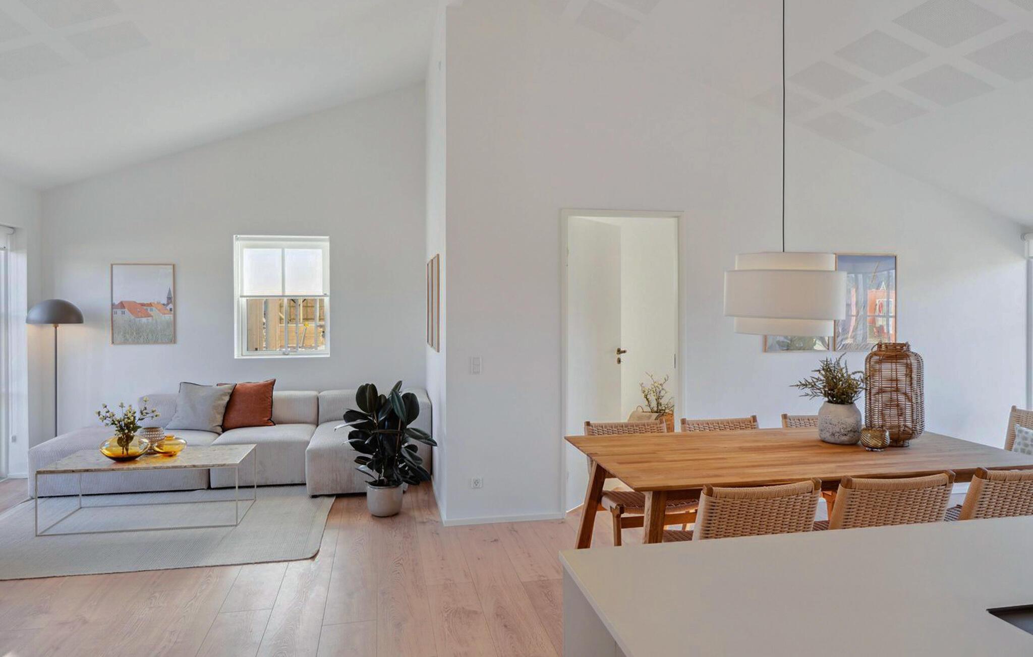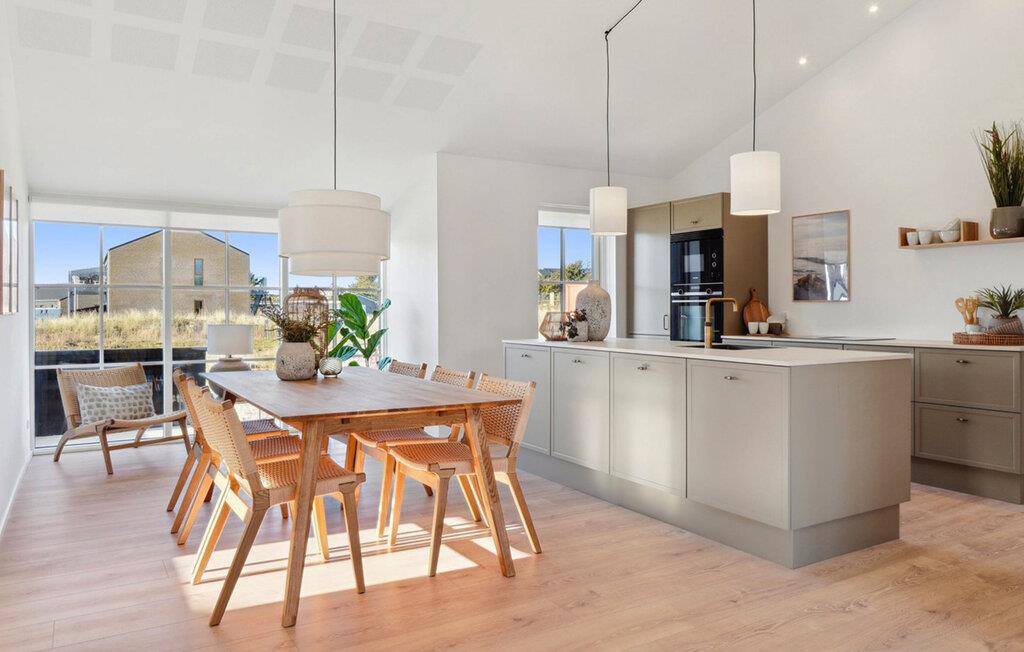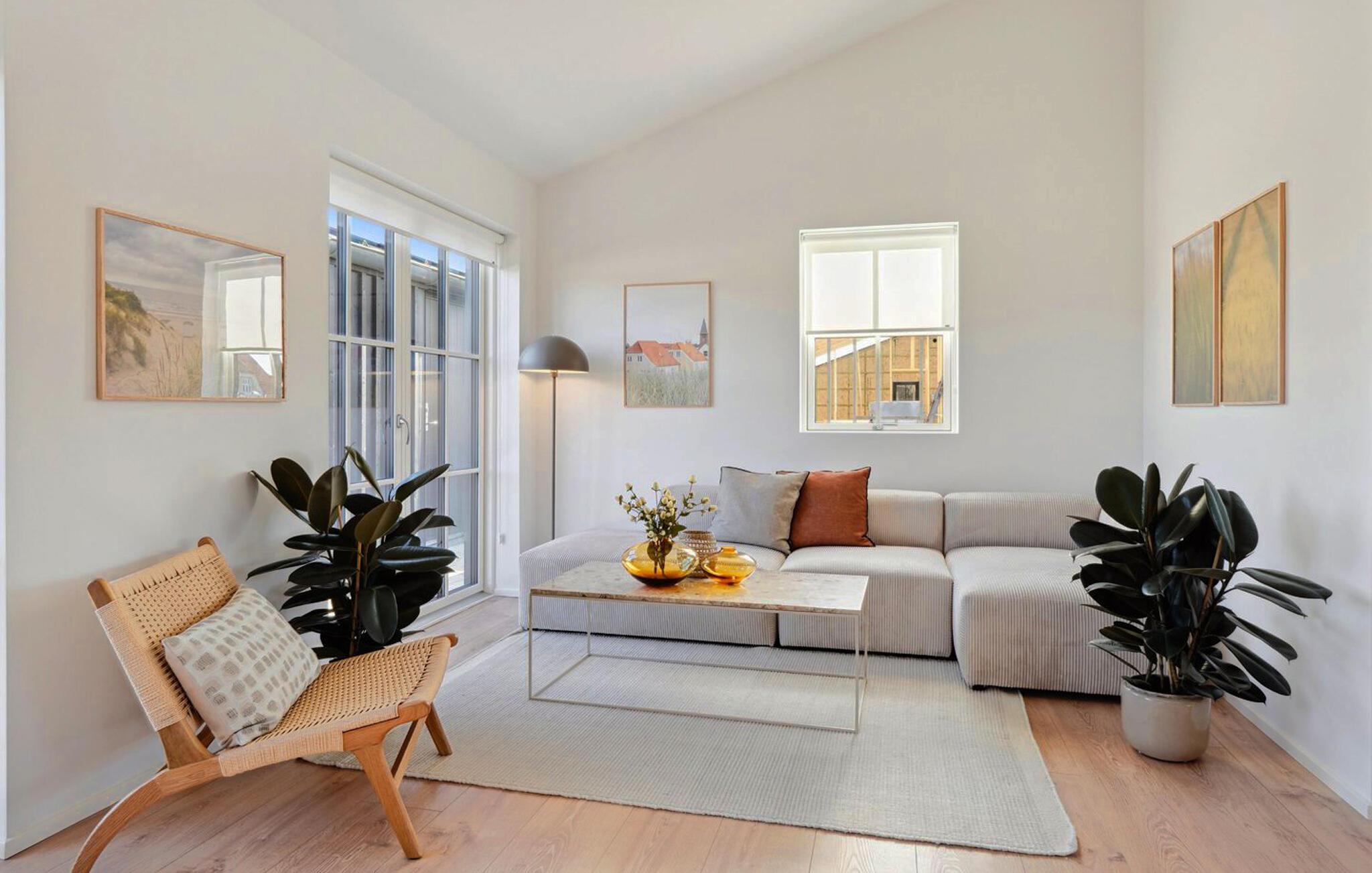 Velkommen til den lyse og venlige indretning i dette dejlige hus. De store vinduer lukker masser af naturligt lys ind og giver jer dejlig udsigt til haven. Tilbring en hyggelig filmaften på sofaen, lyt til god musik eller lav lækre måltider sammen i køkkenet.
