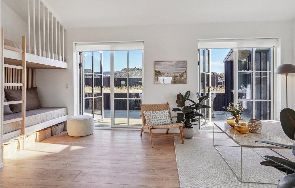 Nyd en lys og hyggelig ferie i dette træhus tæt på strand og by i Løkken.