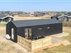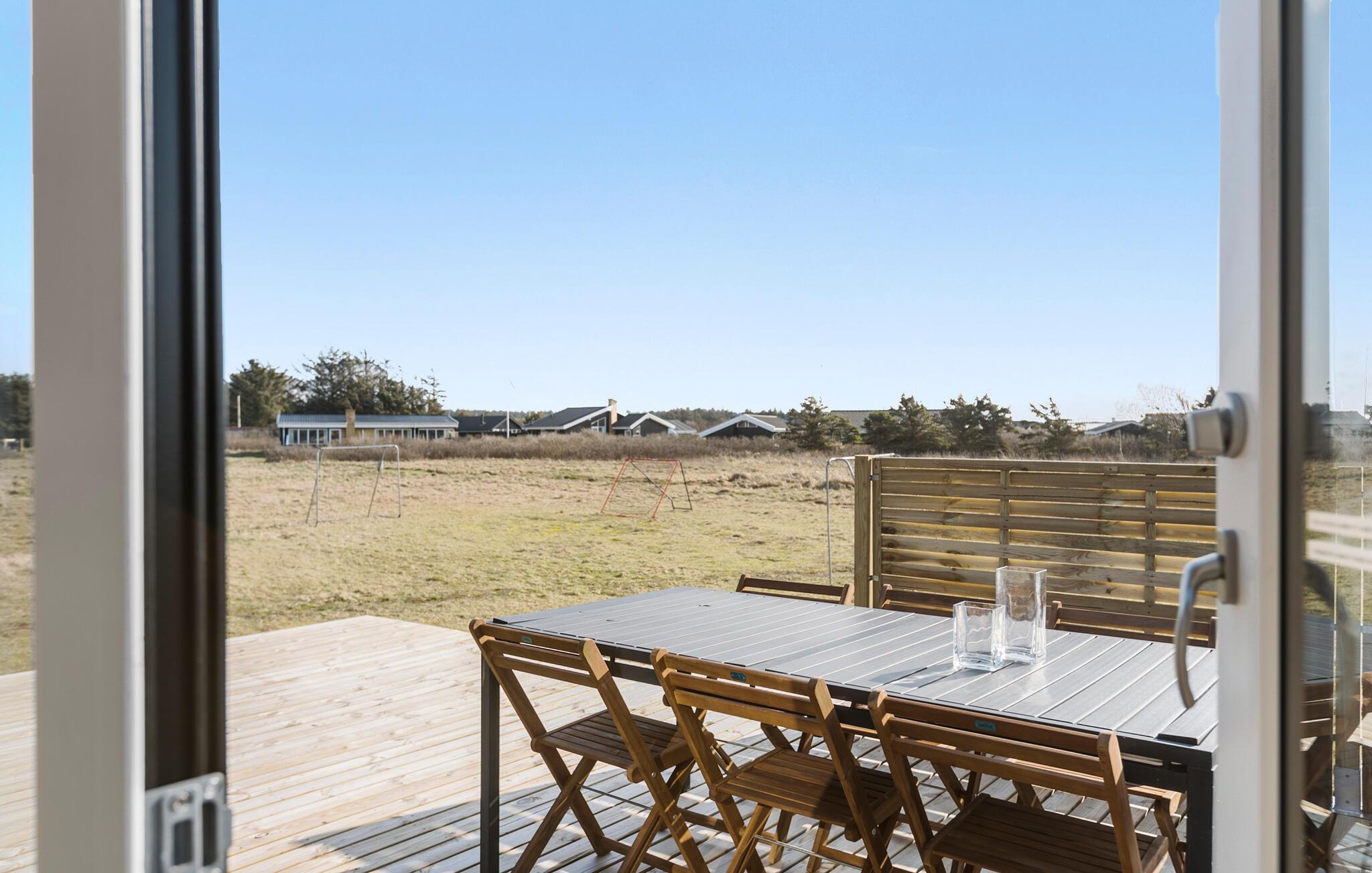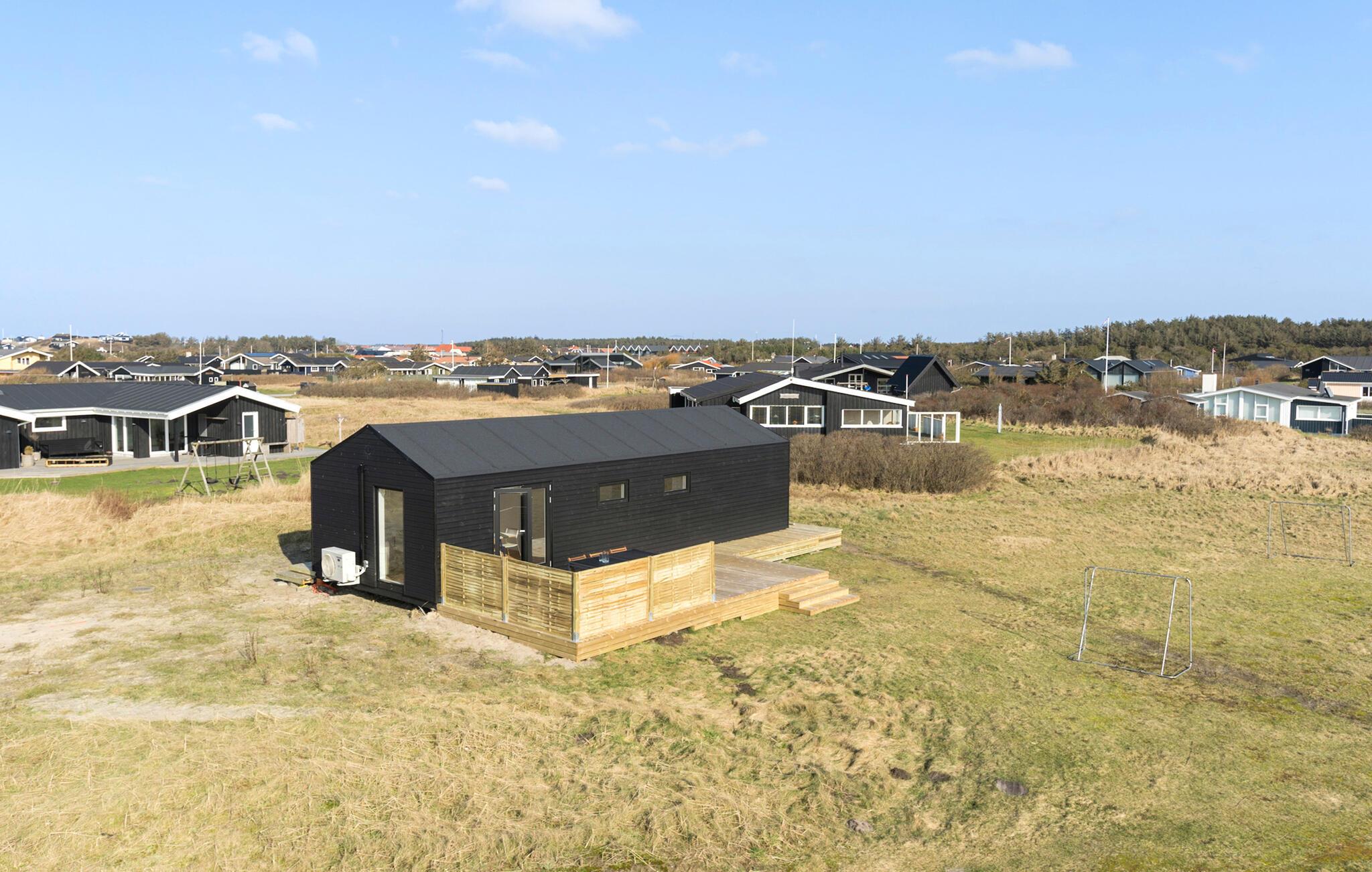Hyggeligt og moderne træhus nær stranden i Løkken med stor terrasse og trampolin til børnene.