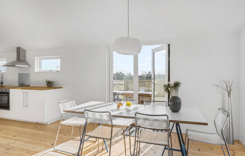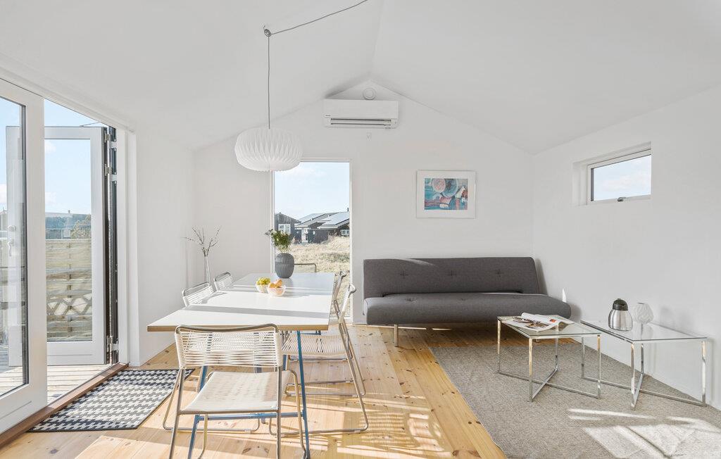 Løkken er en af Danmarks mest populære feriebyer, og her er der lagt op til et vidunderligt ophold i dette indbydende træhus. Indretningen fremtræder lyst og moderne med en åben planløsning, der lægger op til klassisk feriehygge med familien. Lad nogen stå for maden i det veludstyrede køkken, mens andre spiller kort eller daser i sofaen med en skøn udsigt til omgivelserne.