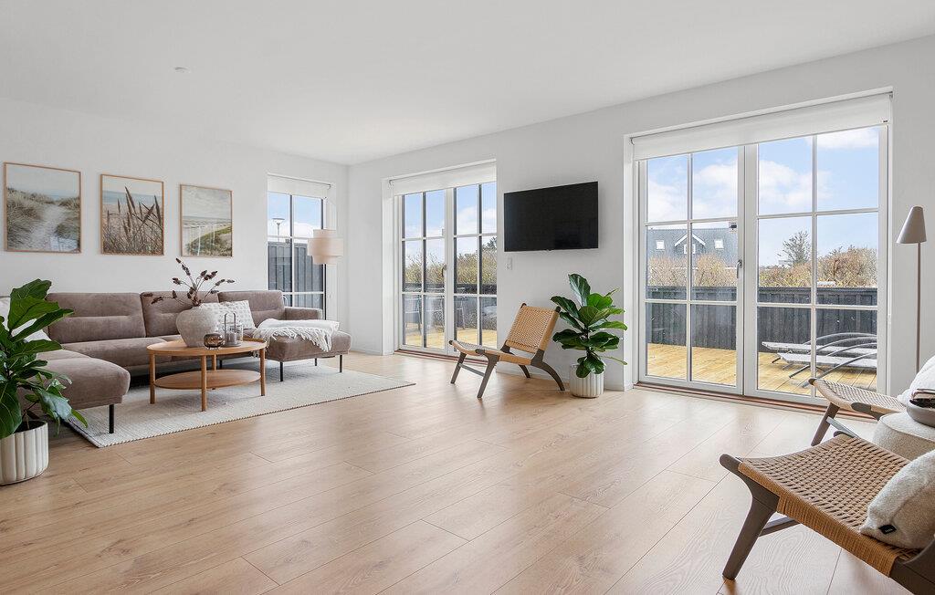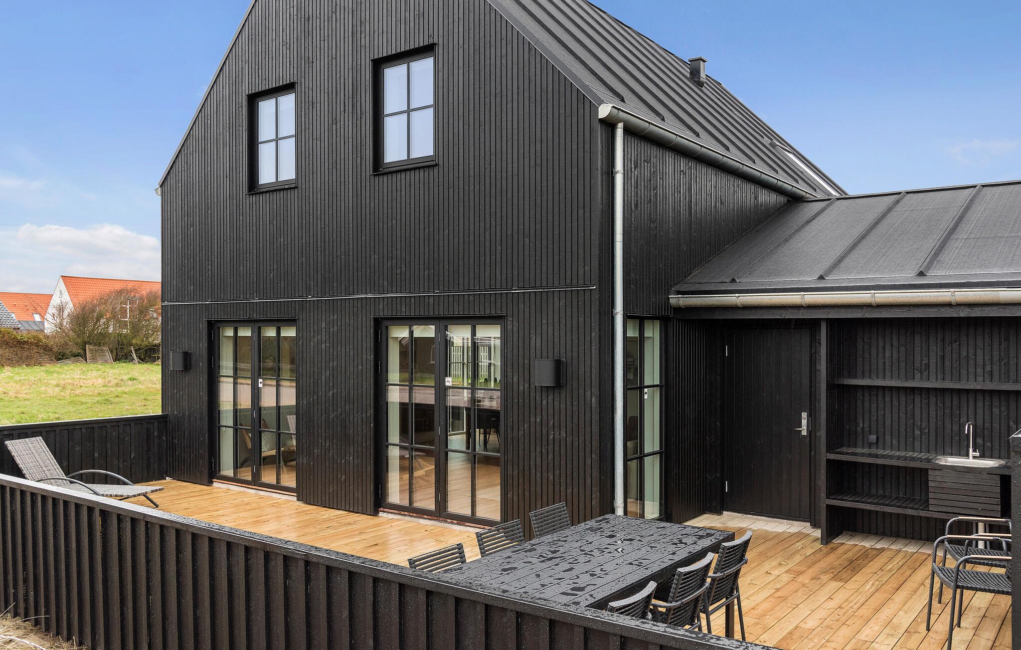 Moderne og energivenligt træhus nær Løkken strand med dejlig terrasse og udekøkken for afslappende ferie.