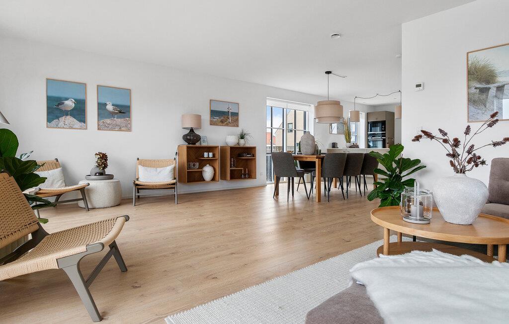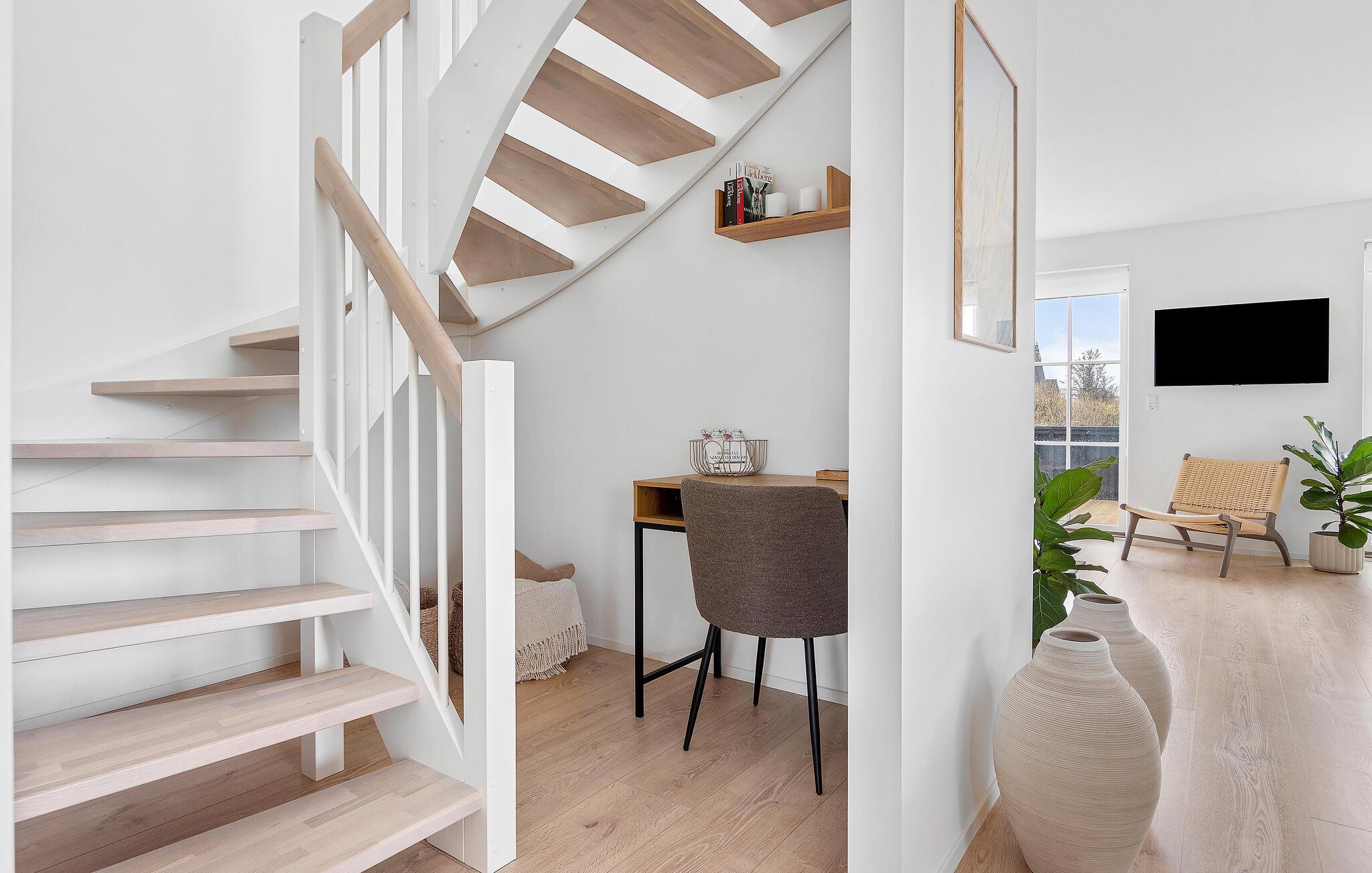 På de varme dage kan I trække ud på de skønne terrasser, der ligger dejligt beskyttet mod syn udefra. Nyd solen i mange timer her og lad børnene løbe rundt og lege på grunden, mens de voksne tager den lidt med ro med en god bog og en kop kaffe eller drink i løbet af dagen. Til huset hører et lækkert udekøkken, hvor I kan tilberede familiens livretter, inden dagen rundes af med et godt glas vin under den lune aftensol.
