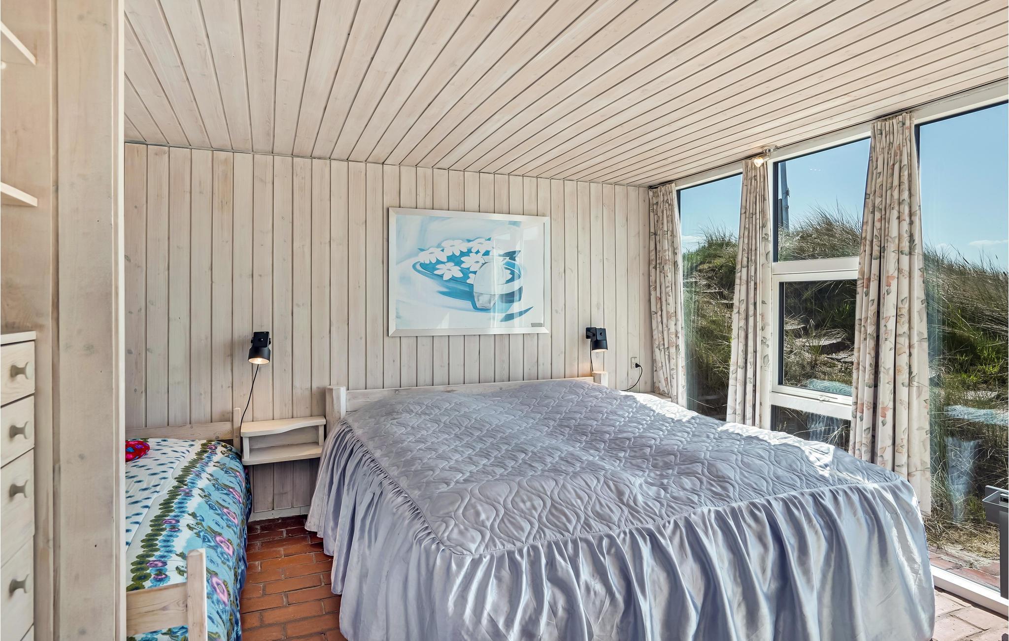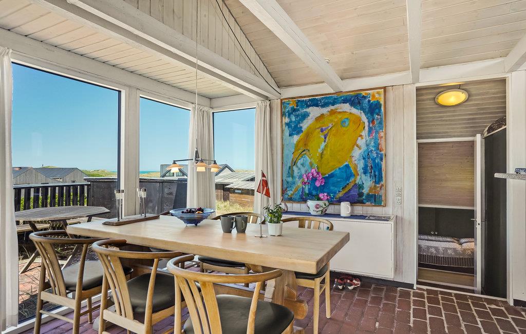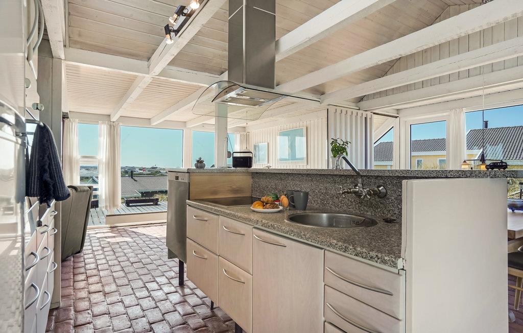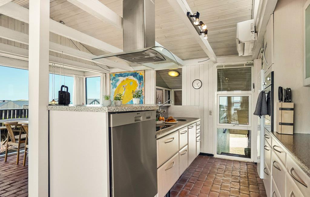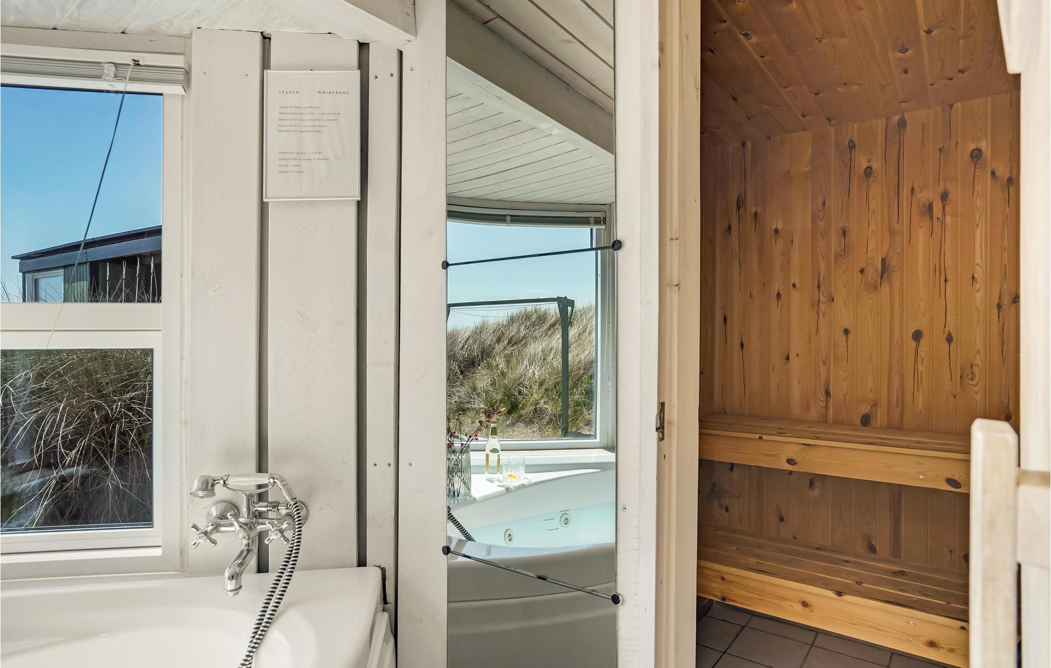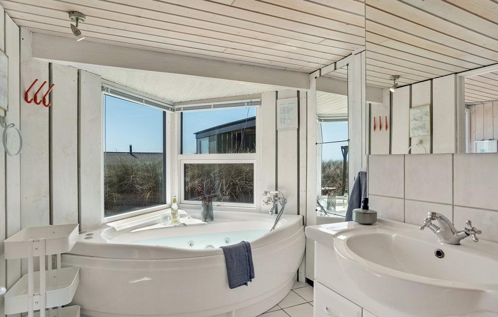 Nu er det tid til nærvær og kvalitetstid i dette veludstyrede feriehus! Dagslyset strømmer ind gennem panoramavinduerne og sammen med husets hvide farve, vil I opleve en følelse af lethed, åbenhed og albuerum. Glæd jer til wellness i saunaen. Om aftenen kan mor og far nyde en romantisk aften i boblebadet med en flot udsigt. Slik sol på den åbne terrasse og nyd lidt lækkert fra kuglegrillen på den overdækkede terrasse. Om morgenen kan I gå de få skridt til sandstranden. Den brede 20 km lange strand med sit fine sand og de dejlige klitter er et paradis for både store og små. Slå parasollen op og spring ud i Vesterhavets friske bølger.