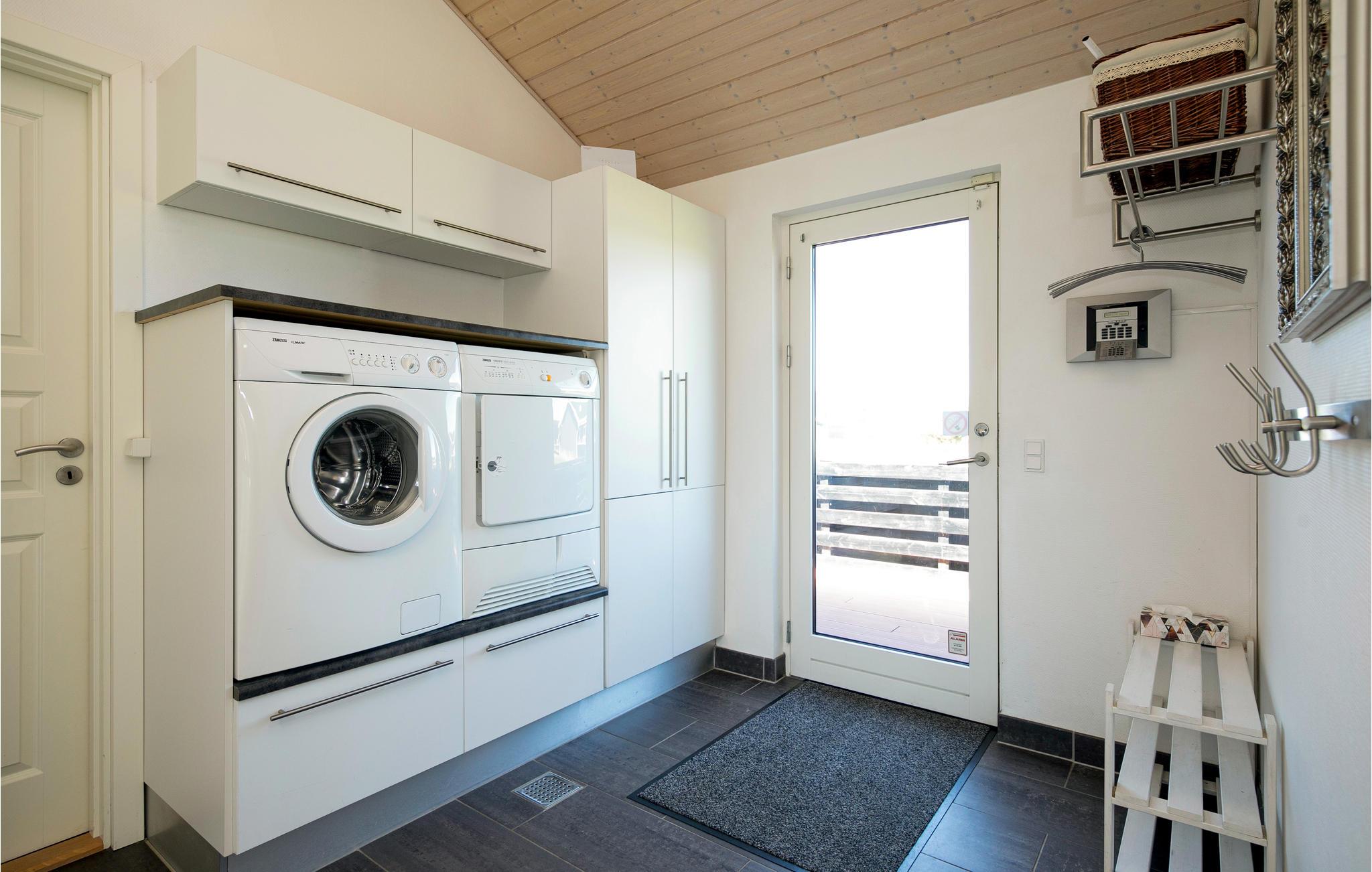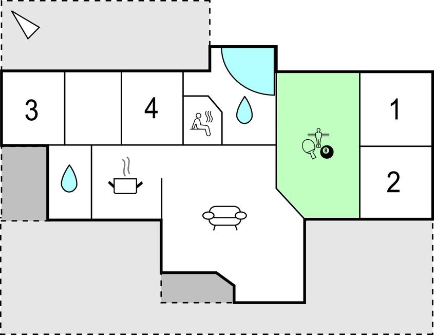 Det er et utrolig flot hus med dejlige terrasser, hvor både morgen- og aftensol kan nydes. Der er et stort bryggers med vaskearrangement. Fra bryggerset går man ind i et lækkert kvalitetskøkken med alle hårde hvidevarer, og derfra er der en utrolig smagfuld og lys stue med behagelige møbler. I huset findes en separat afdeling, hvor der er et aktivitetesrum med billiard og bordtennisbord. Her ligger også to af husets værelser og det største af de i alt to badeværelser i huset.