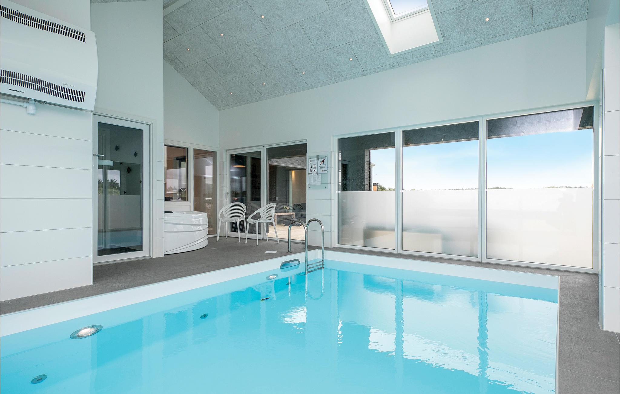 Ikke langt fra badebyen Løkkens hyggelige centrum og gågademiljø, med dens mange butikker og restauranter, og ikke langt fra den hyggelig mole, ligger dette lækre swimmingpoolhus bygget i 2018. Det er oplagt valg til en dejlig ferie året rundt uanset vejret på grund af de mange indendørs aktiviteter. Huset er dejligt indrettet med fem gode soveværelser - alle med enkelt- eller dobbeltsenge samt en hems med madrasser. Det utroligt flotte poolrum indeholder foruden poolen et spabad samt adgang til et badeværelse og saunaen. Den dejlige spiseafdeling ligger i tæt tilknytning til det lyse køkken og har desuden indgang til aktivitetsrummet, hvor I kan dyste omkring billard-/poolbordet. Ved huset er der skønne terrasser, hvor I kan nyde jeres feriedage i fulde drag. Et virkelig lækkert sommerhus for familien der gerne vil have masser af plads - og ikke mindst god kvalitet.
