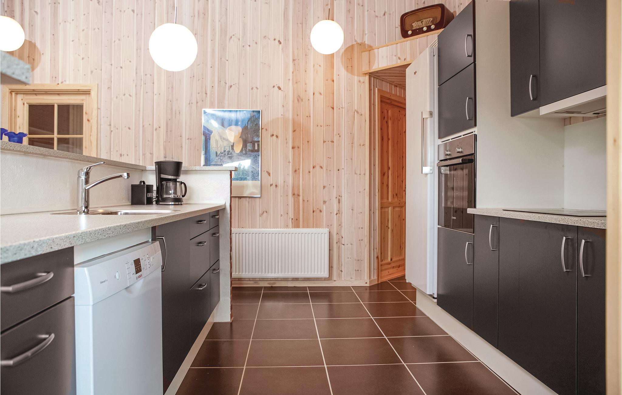 På en stor åben naturgrund i gåafstand til det skønne Vesterhav og dens brede sandstrand samt Løkken by med dens store udvalg af butikker, restauranter og det hyggelig torv, ligger dette gennemførte sommerhus med to flotte badeværelser, hvoraf det ene rummer et spabad og det andet sauanen. I hver ende af huset er der to soveværelser med gode senge og trægulve. Midt i huset ligger det flotte, lyse køkken med tilhørende stue med loft til kip, en hyggelig møblering og klinkegulve. Fra stuen er der udgang til en indhegnet terrasse, som er ideel til familier med børn, da man ikke kan komme derfra og ud på grunden. Grunden har i øvrigt god plads til leg for hele familien. Blokhus var tidligere et fiskerleje - nu centrum i et charmerende, internationalt ferieparadis. Her finder I kilometerlange brede, hvide sandstrande, blandt kendere regnet som Nordeuropas bedste, fint hvidt sand, lune klitter og frisk, blåt hav. Takket være strandens bredde og beskaffenhed kan I køre i bil til det sted, der passer jer bedst. Baglandet giver med sin fantastiske skønne natur, utallige muligheder for traveture i skov og mose. I området er der afmærkede cykel- og vandreruter, hvor I kan nyde naturen i fred og ro.