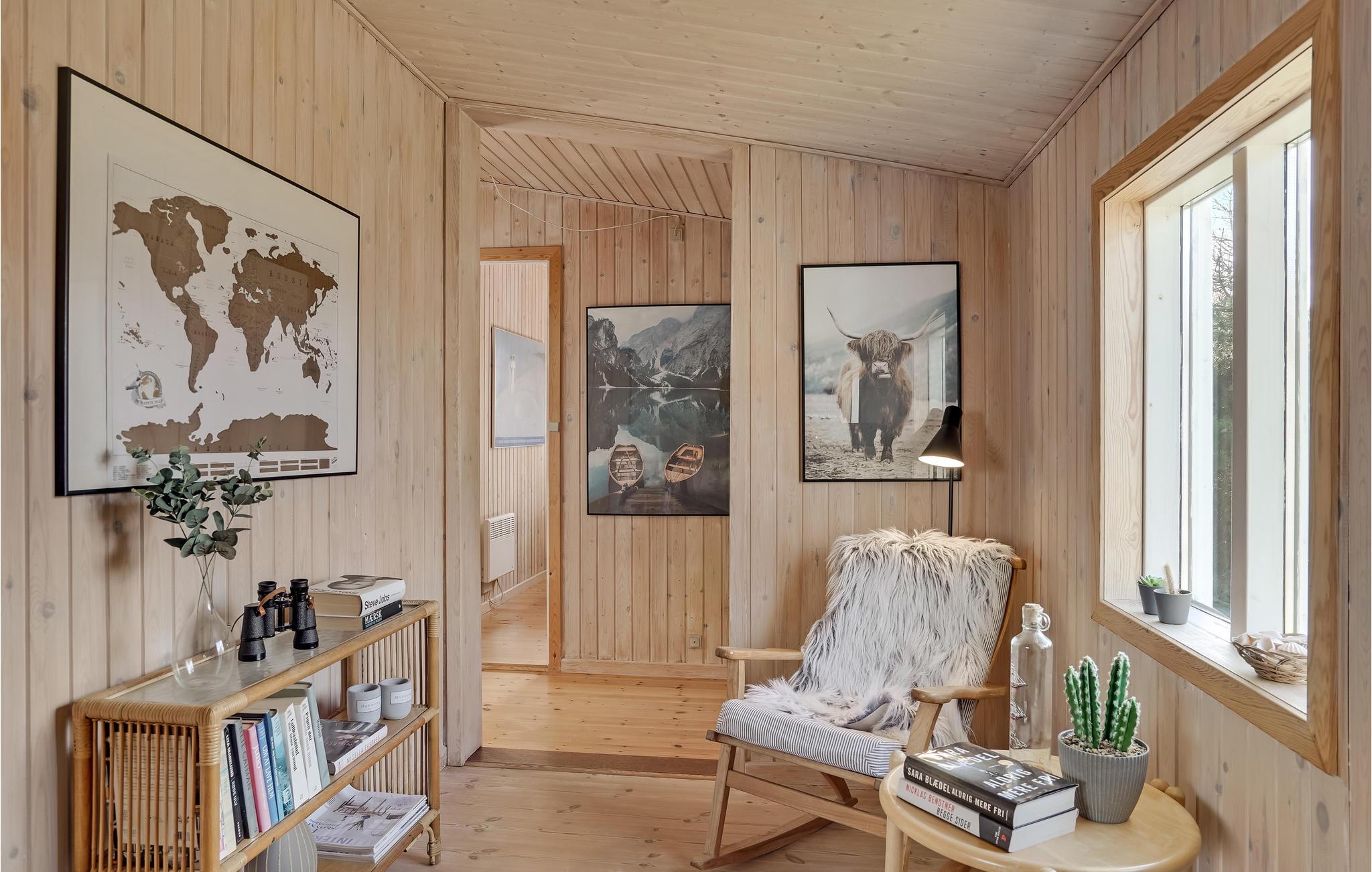 Huset ligger på en åben grund, som er omkranset af træer. Boligen præsenterer sig lyst og indbydende med klassisk sommerhuscharme og behagelige lysindfald. Sæt jer med dagens måltider og nyd udsigten til omgivelserne. Efter en lang dag på farten, hvor I suget solen til jer på stranden og været aktive, er det skønt at vende hjem til denne lille oase.