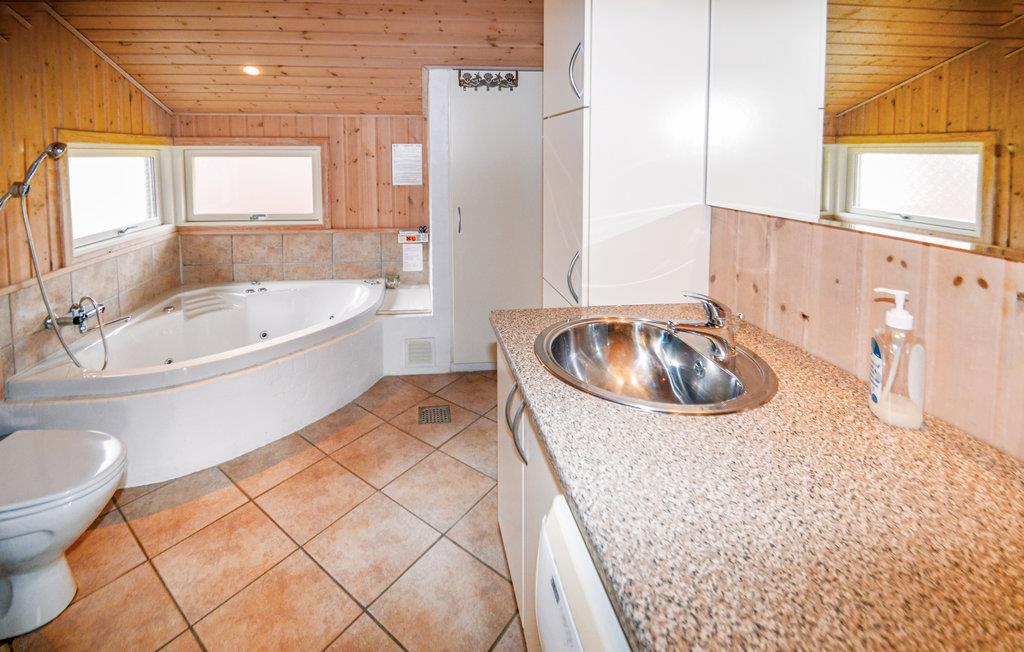 Flot luksushus på en stor naturgrund, i gåafstand til Løkkens dejlige badestrand. Der er tale om et rigtigt kvalitetshus, opført i gedigne materialer. Indvendigt er vægge og loft til kip beklædt med lyst træ. Huset er indrettet med et stort opholdsareal bestående af køkken, spiseafdeling og stue med brændeovn. Der er rigtigt kælet for detaljerne og i køkken/alrum, vinkelstuen og på badeværelserne er der gulvvarme. Overalt er huset flot og stilfuldt indrettet i en moderne lys, skandinavisk stil. De store vinduespartier giver et flot lysindfald i stuen, og giver jer mulighed for at opleve naturen på meget tæt hold, selv om vejret kun er til indendørs hygge. I kan ofte opleve, at rådyr og harer går igennem haven, bl.a. for at spise af planterne på grunden. De store terrasser med gode læmuligheder indbyder til udendørs hygge og solbadning. Området ved Løkken er et spændende bekendtskab året rundt - hver årstid sin charme. Efter en god efterårsstorm kan I være heldige at finde rav i det våde sand. Der findes også utal af smukke natursten, som kan bearbejdes til de flotteste smykker. Området byder ligeledes på et hav af aktiviteter for hele familien. Her findes bowlingbaner, legeland for børn, subtropiske badelande, golfbaner, fiskeparker, ridecentre, sportshaller m.m. Supermarked og restauranter er åbent hele året. Besøg også Fårup Sommerland med mere end 60 forlystelser. Spabadet er typen uden varmelegeme.