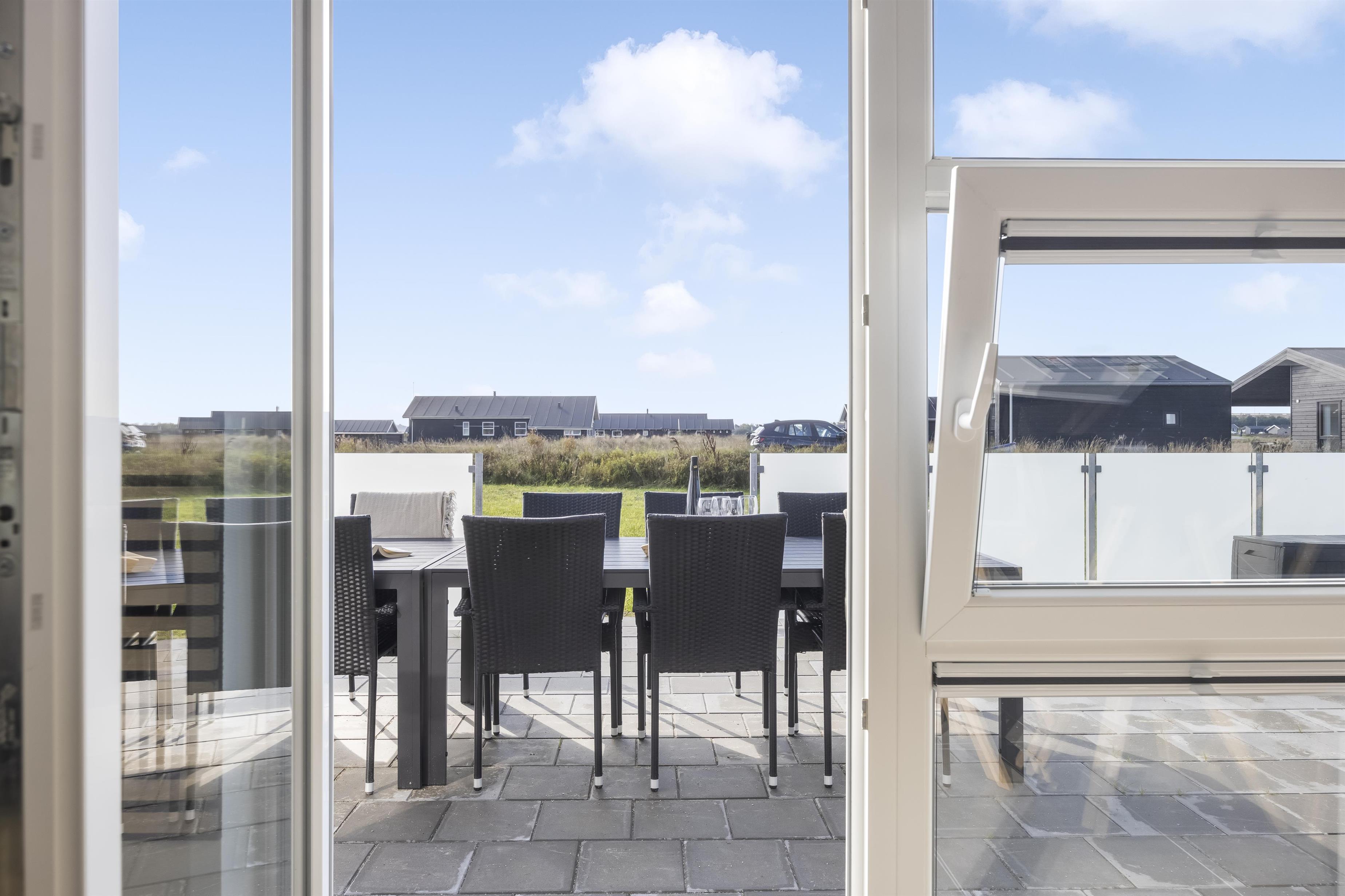 Rundt om huset venter flere solrige terrasser med læ, havemøbler og solsenge, hvor du kan nyde både ro og fælles middage i det fri. Haven byder på en stor plæne til boldspil og leg samt spil til udendørsaktiviteter. Sommerhuset er energivenligt med varmepumpe og har egen elbillader – en praktisk og grøn løsning til ferien.