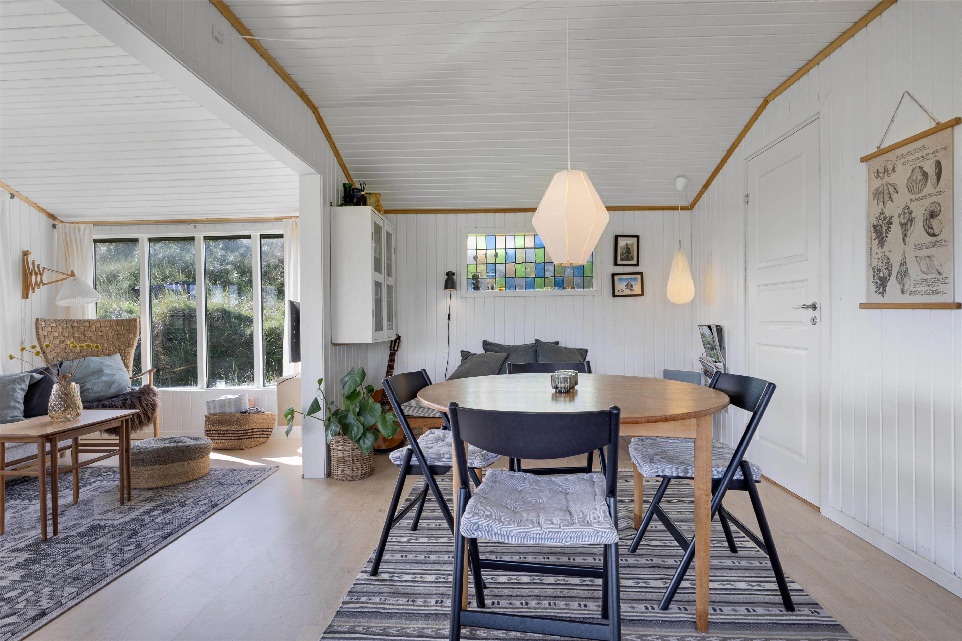 Dette sommerhus har plads til 5 personer fordelt på disse skønne kvadratmeter. Huset er traditionelt indrettet med 2 soveværelser, 1 badeværelse, en dejlig stue i åben forbindelse med køkkenet, og en overdækket terrasse, der gør det muligt at nyde de naturskønne omgivelser. Der er rig mulighed for at hygge sig ved brændeovnen eller tage en kort tur ned til stranden via stien, der går langs huset. Du kan parkere ved huset, der ligger for enden af en stille, blind vej. Stilen i huset byder på klassisk dansk sommerhushygge med masser af muligheder for at nyde ferien både ude og inde.