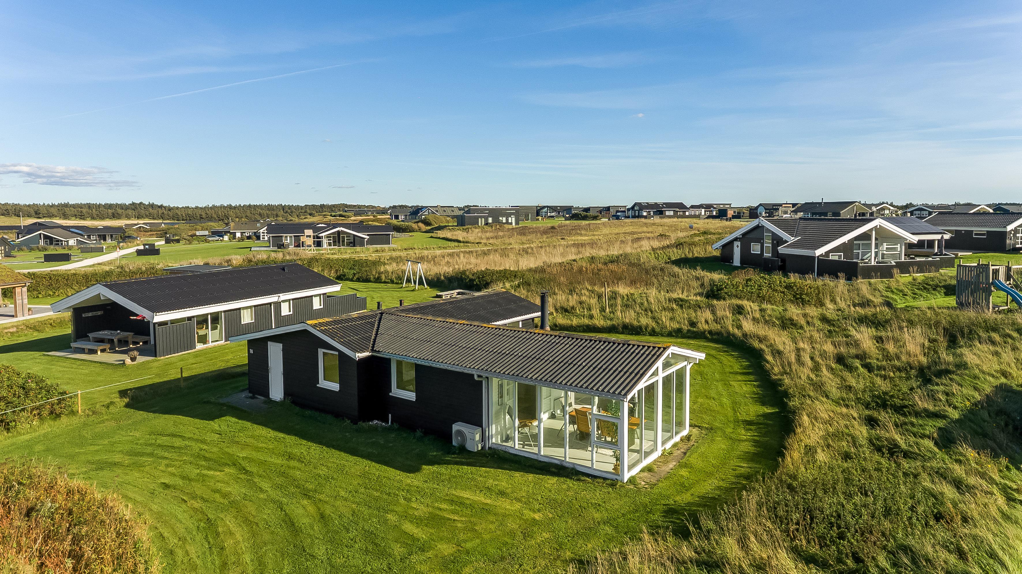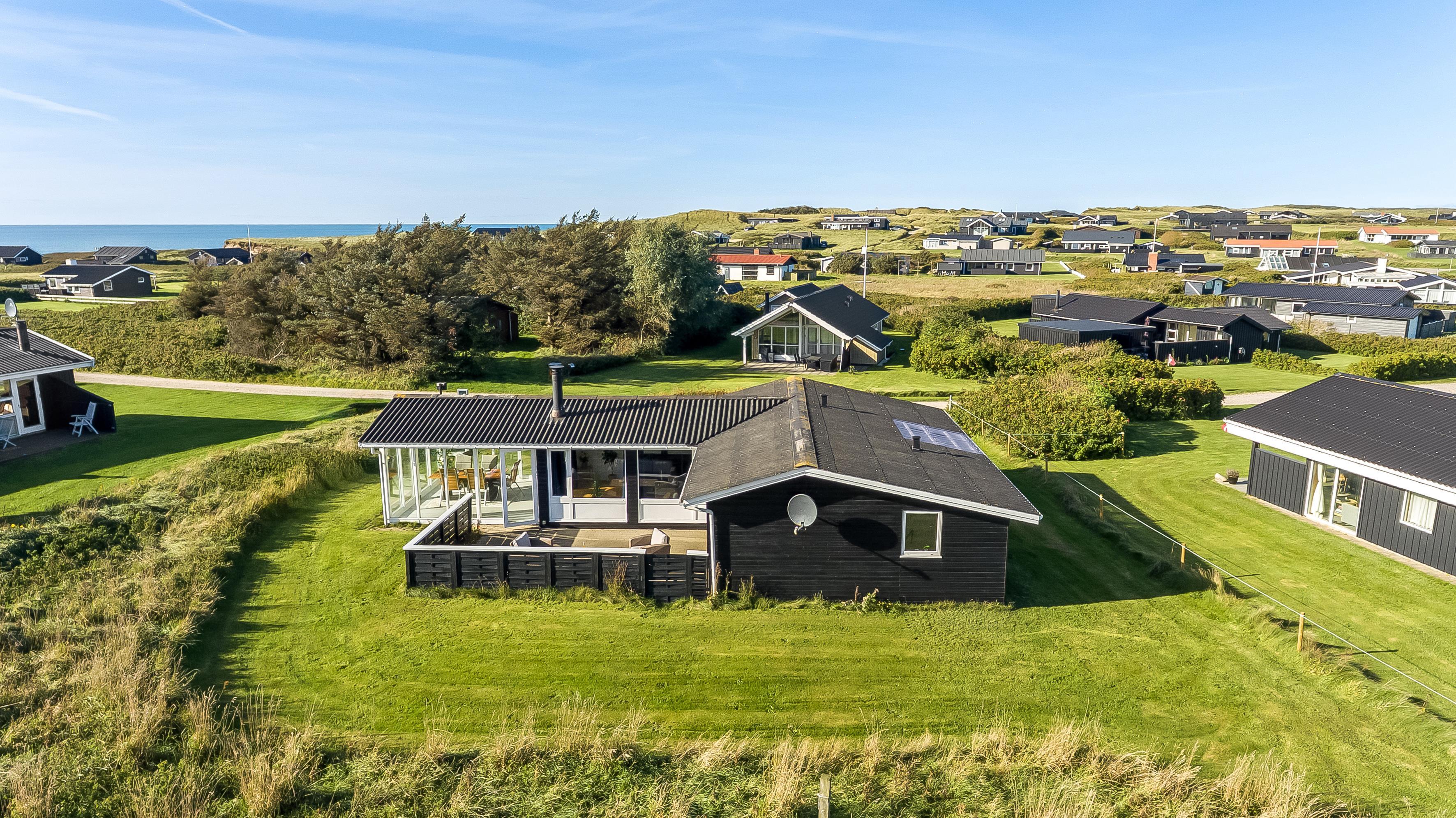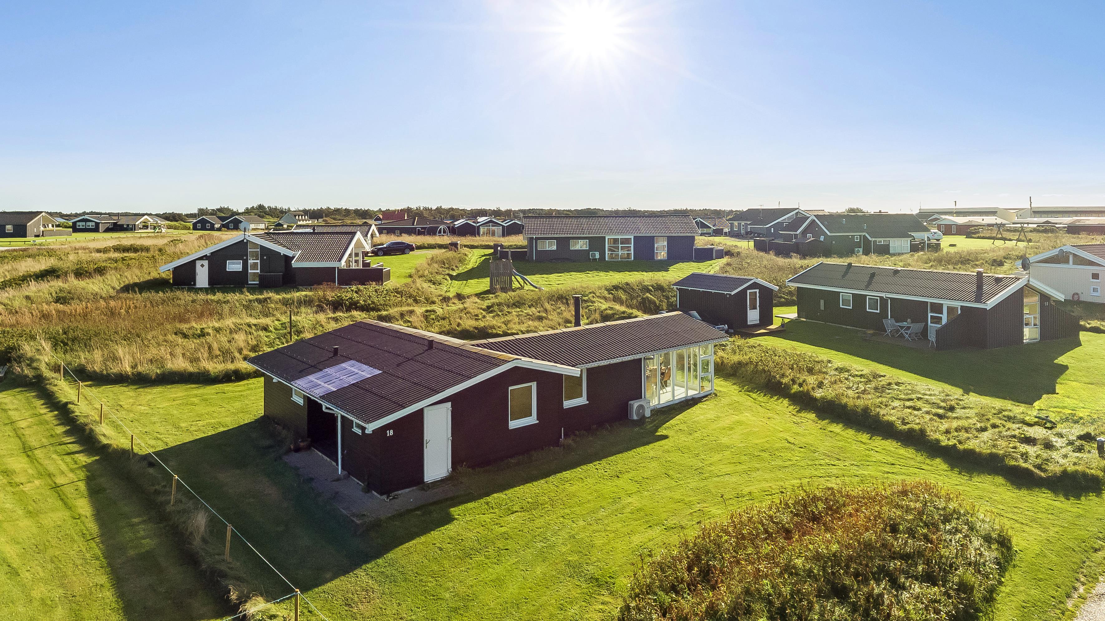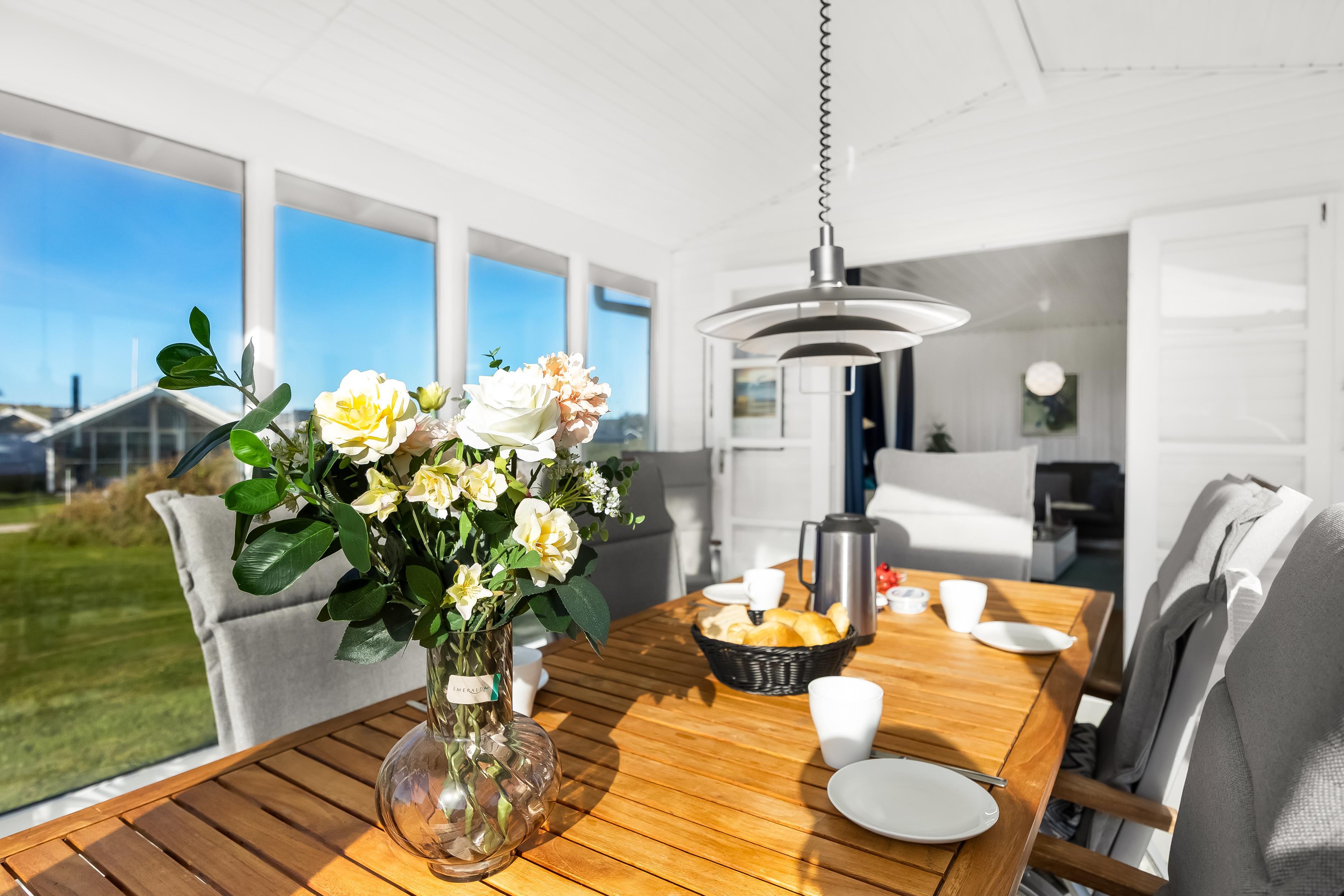 Udenfor finder du en dejlig afskærmet terrasse, som inviterer til ro, sol og nærvær. Her kan du nyde dagens måltider i det fri, læse en bog i liggestolen eller bare nyde stilheden, mens du lytter til naturen omkring dig. Den omkringliggende grund giver dig god plads og en følelse af privatliv – alt sammen tæt på kysten og med kort afstand til både Løkken og Nr. Lyngby.