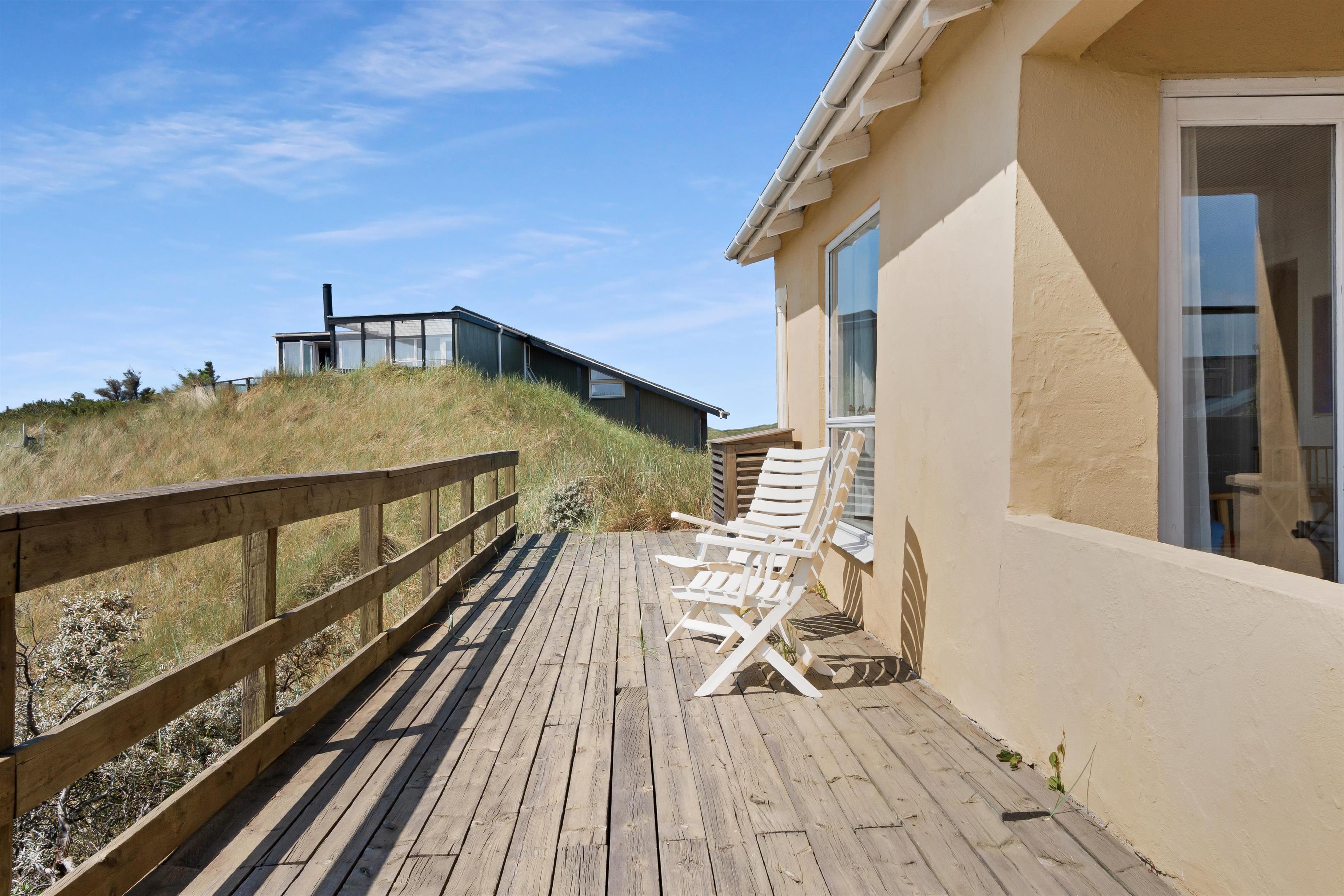 Et hyggeligt lille hus fra 1958. Der er blevet installeret en varmepumpe, så det er varmt og behageligt at opholde sig i huset, selv om vinteren. Her finder du alt, hvad du behøver for at få en god ferie: komfortable senge, et veludstyret køkken og en hyggelig og lys stue med fantastisk udsigt mod syd over området og havet mod vest. Der er udendørs møbler og en solrig terrasse mod øst og syd. Når du er i huset, kan du nyde den fantastiske panoramaudsigt over himlens skyer, der konstant skifter form og farve.