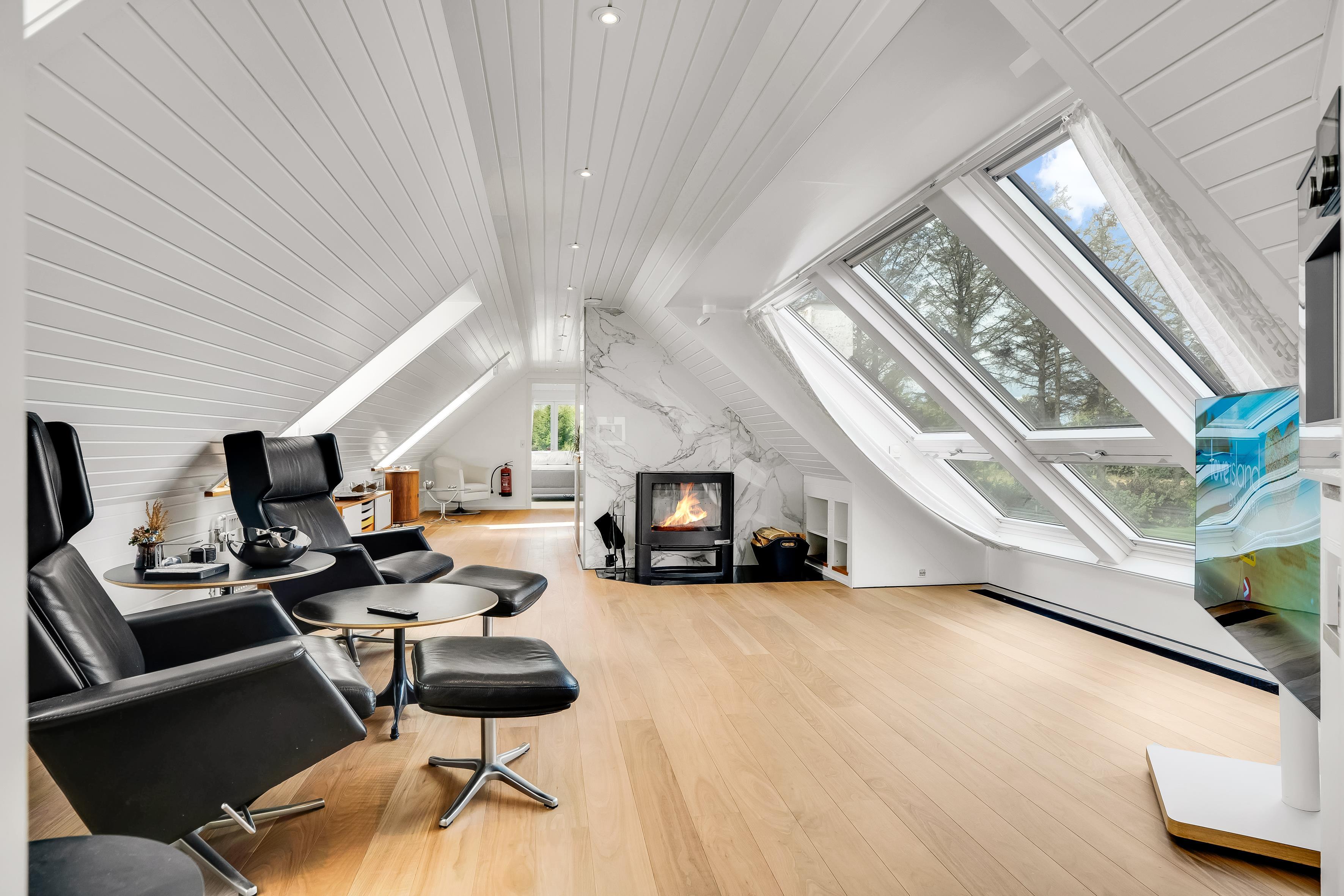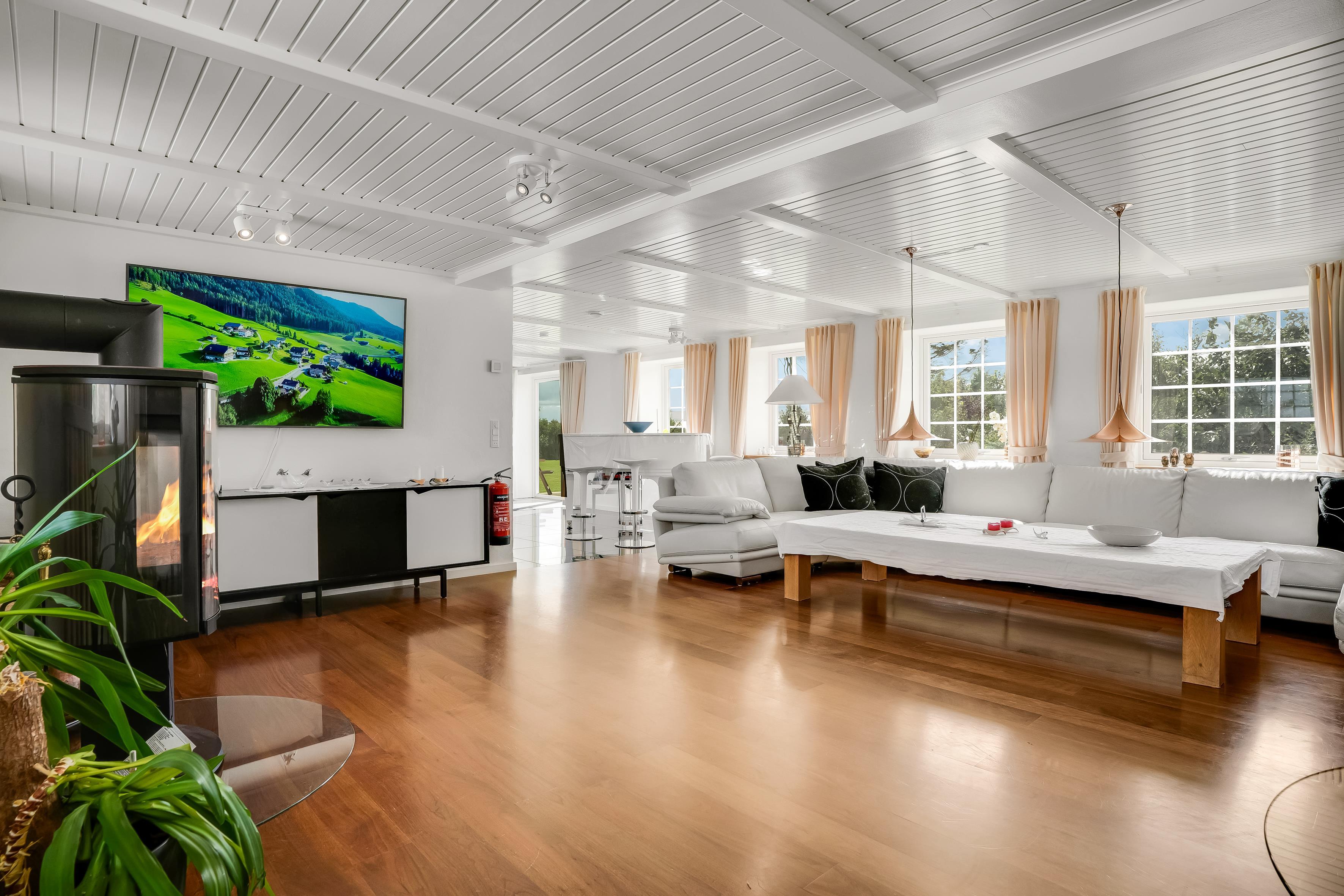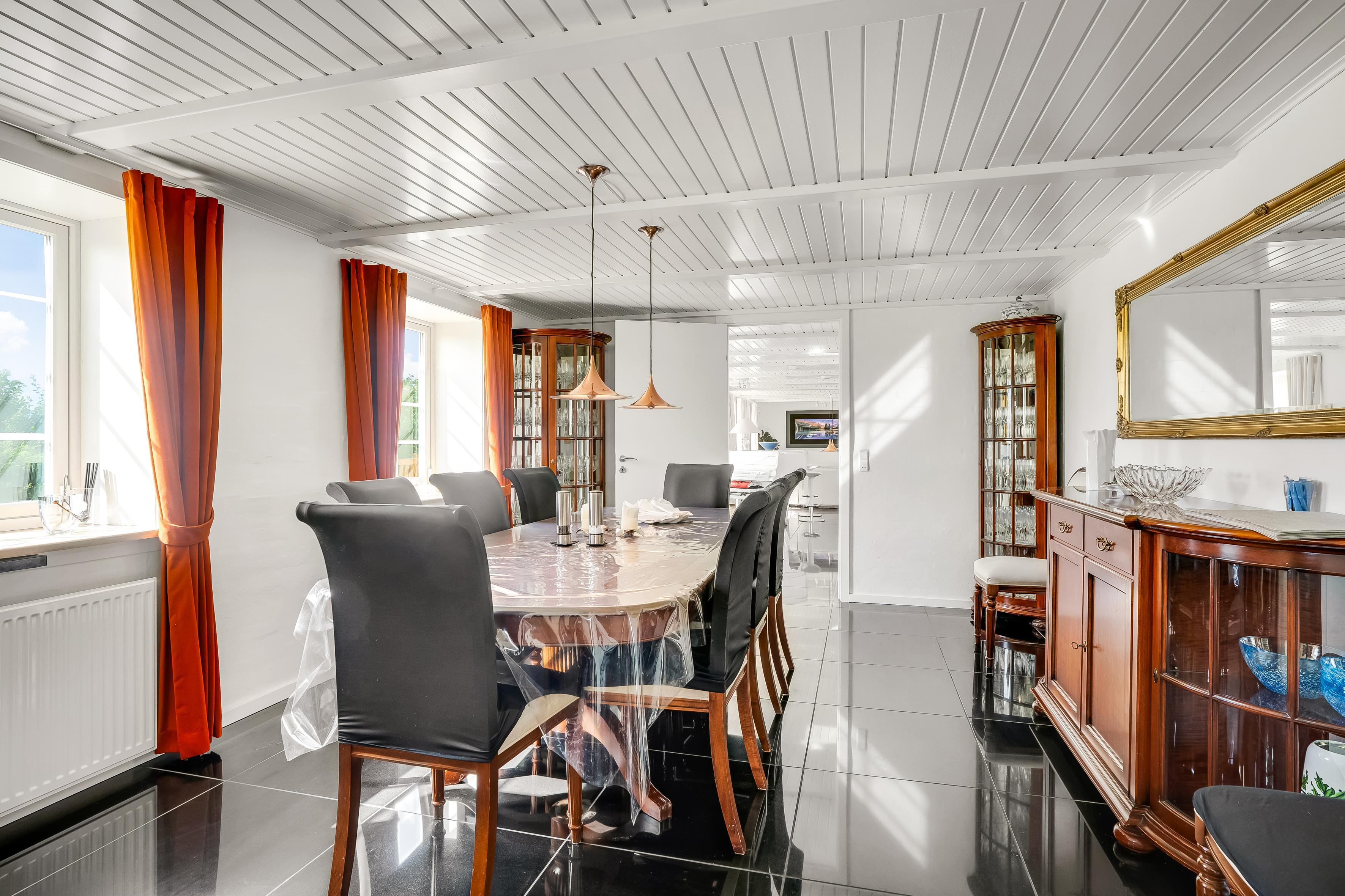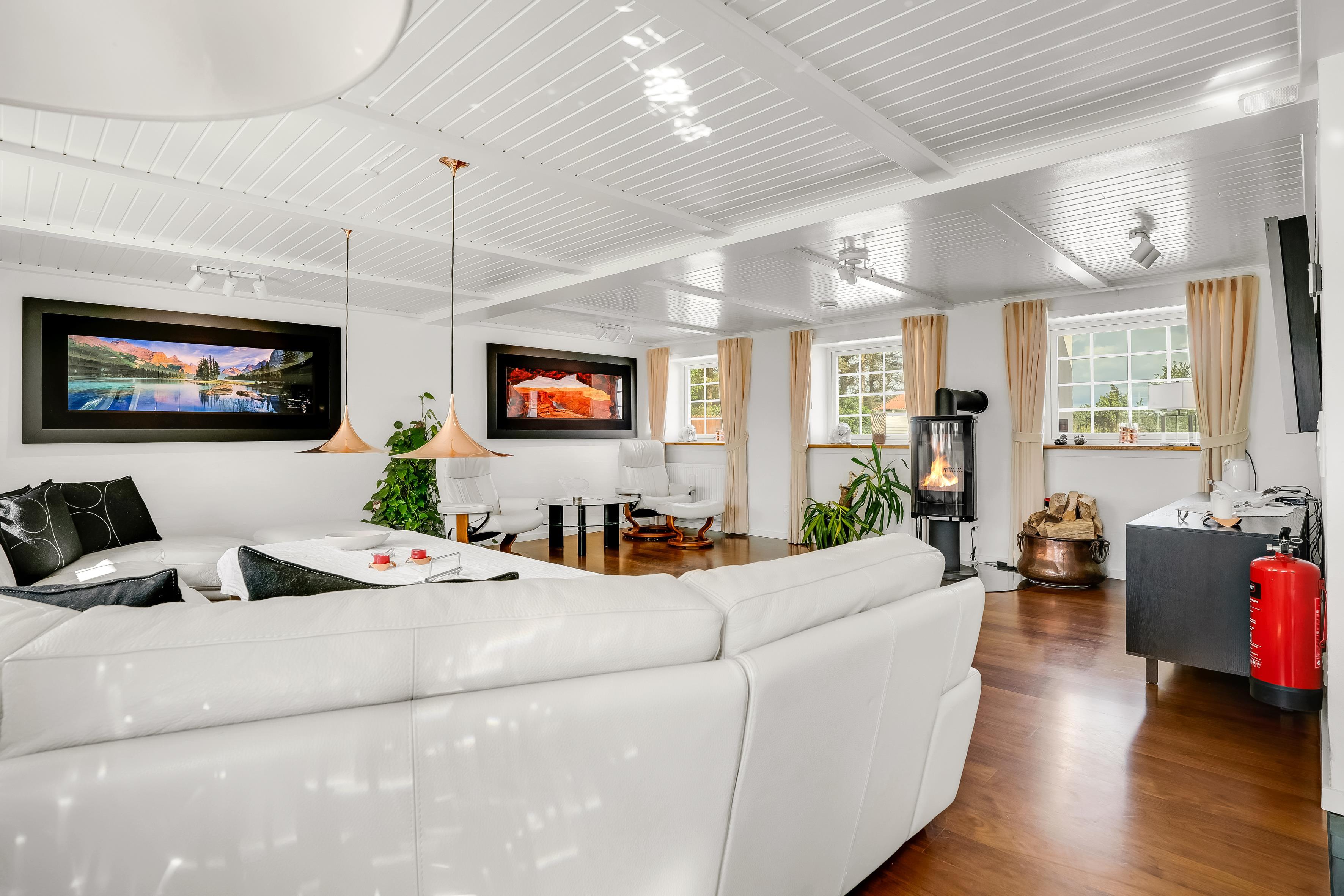 I hele huset er der gulvvarme, og indeklimaet holdes behageligt med et moderne genveksanlæg, der sikrer varme uden træk. Stue og spisestue rummer både spiseplads, stole og indbygget TV. Dagligstuen har store glaspartier, som giver et smukt lysindfald og direkte adgang til terrassen. Derudover findes der i alt tre brændeovne, seks TV samt et opholdsrum med spiseplads til op til 40 personer – ideelt til større selskaber.