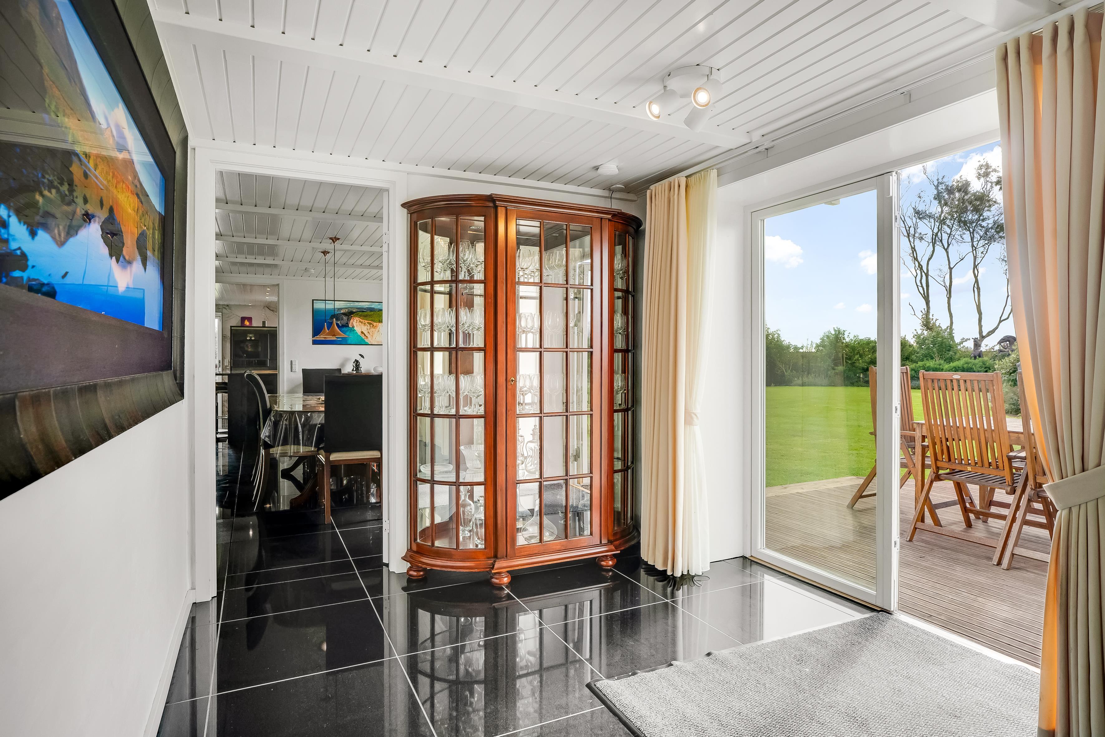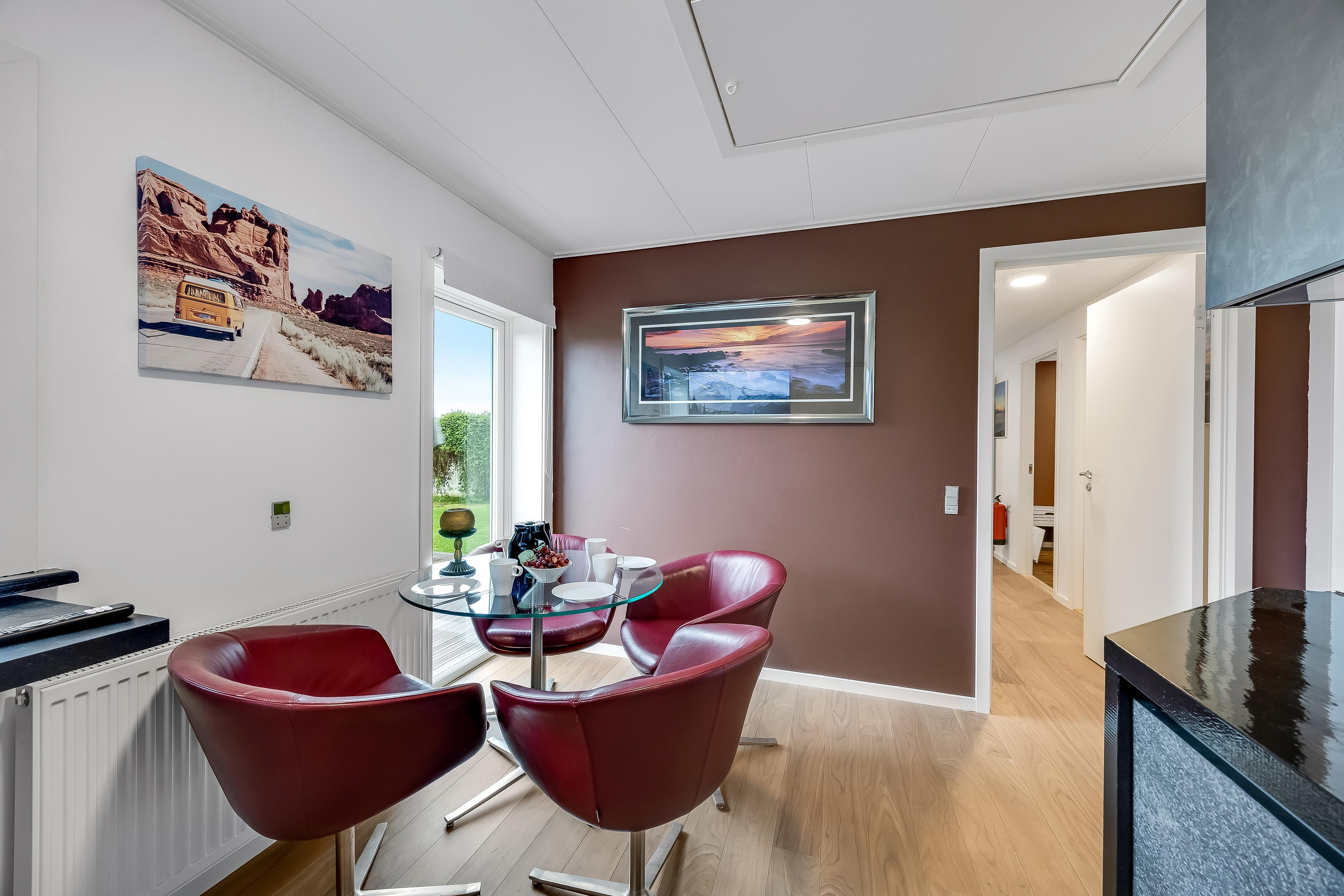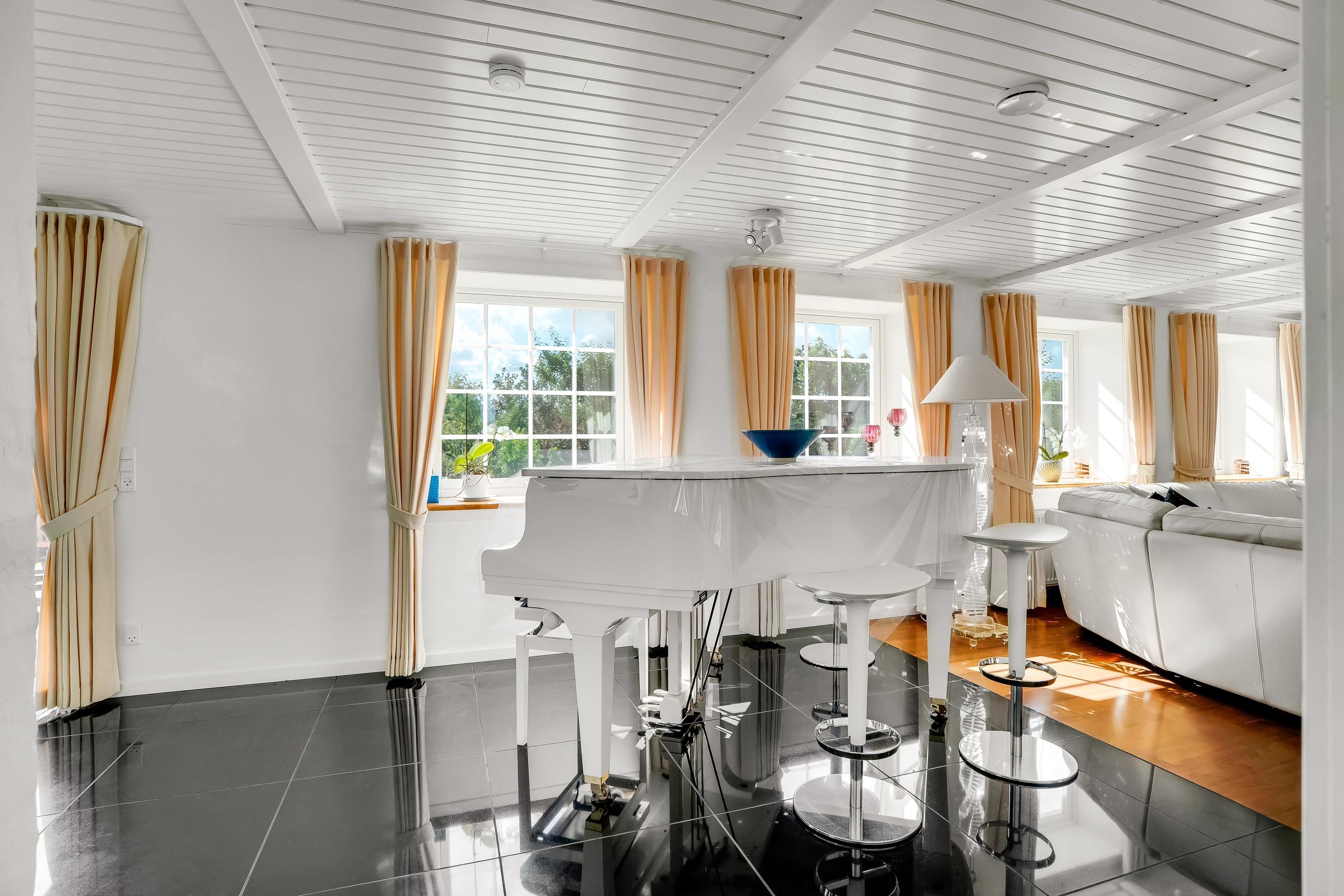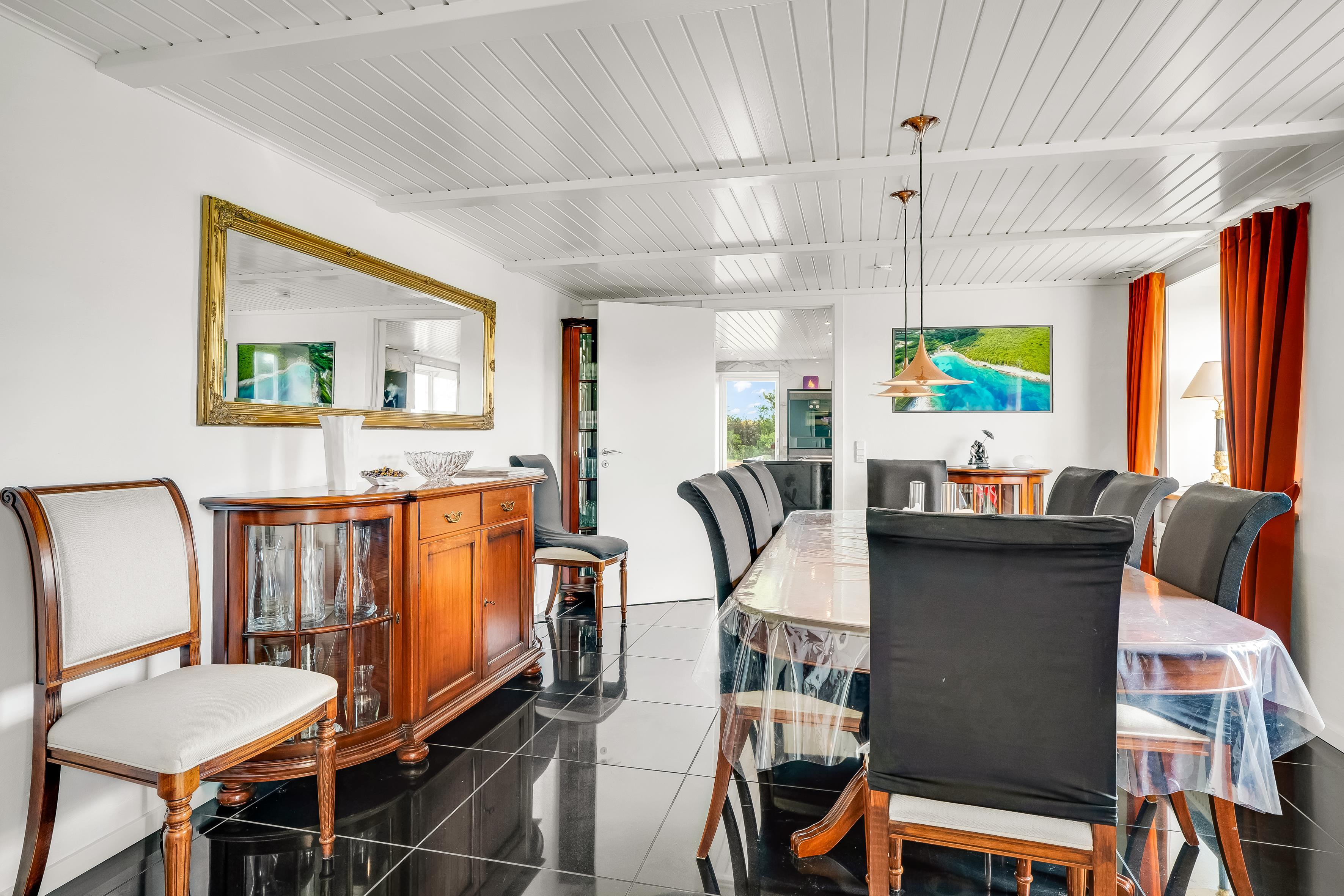 I hele huset er der gulvvarme, og indeklimaet holdes behageligt med et moderne genveksanlæg, der sikrer varme uden træk. Stue og spisestue rummer både spiseplads, stole og indbygget TV. Dagligstuen har store glaspartier, som giver et smukt lysindfald og direkte adgang til terrassen. Derudover findes der i alt tre brændeovne, seks TV samt et opholdsrum med spiseplads til op til 40 personer – ideelt til større selskaber.