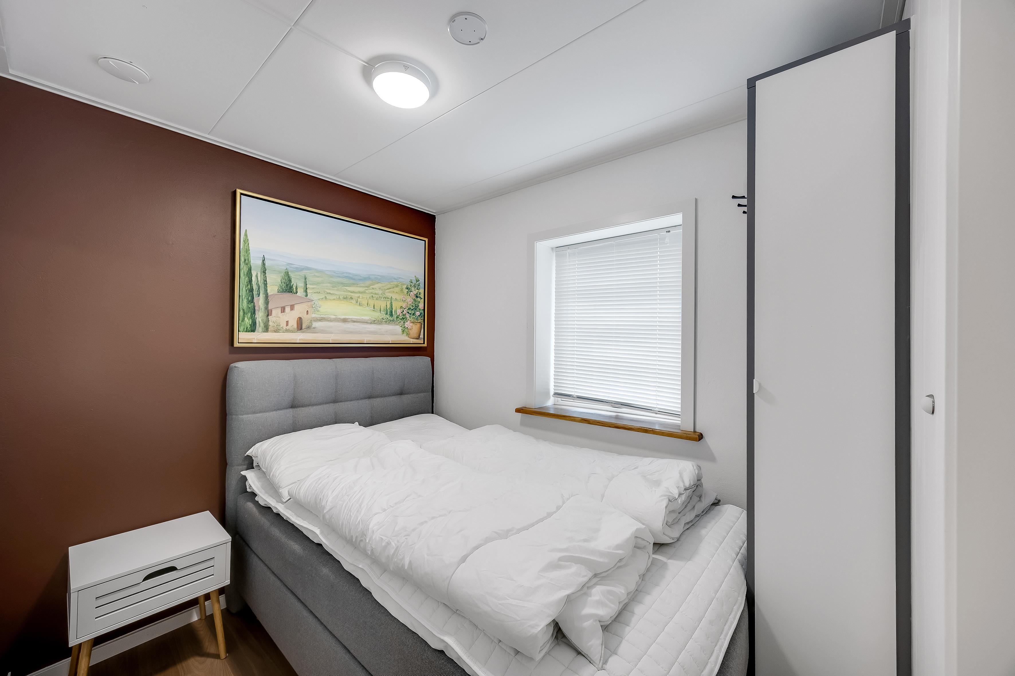 Hele herligheden udgøres af hovedhusets tilknyttede længe med terrassedør og egen indgang. De fire værelser har dejlige, nye dobbeltsenge fra Høie, og i tre af soverummene er der væghængt TV og det ene rum har terrassedør ud til gårdspladsen. Værelserne har alle vinduer med udsigt til det dejlige udeområde og størrelserne på sengene er: 2*180 cm, 150 cm og 120 cm foruden køjesengen. Værelserne har en god og funktionel størrelse, og fællesfaciliteterne udgør hele 120 kvm. Så hele længden er godt 160 kvm.