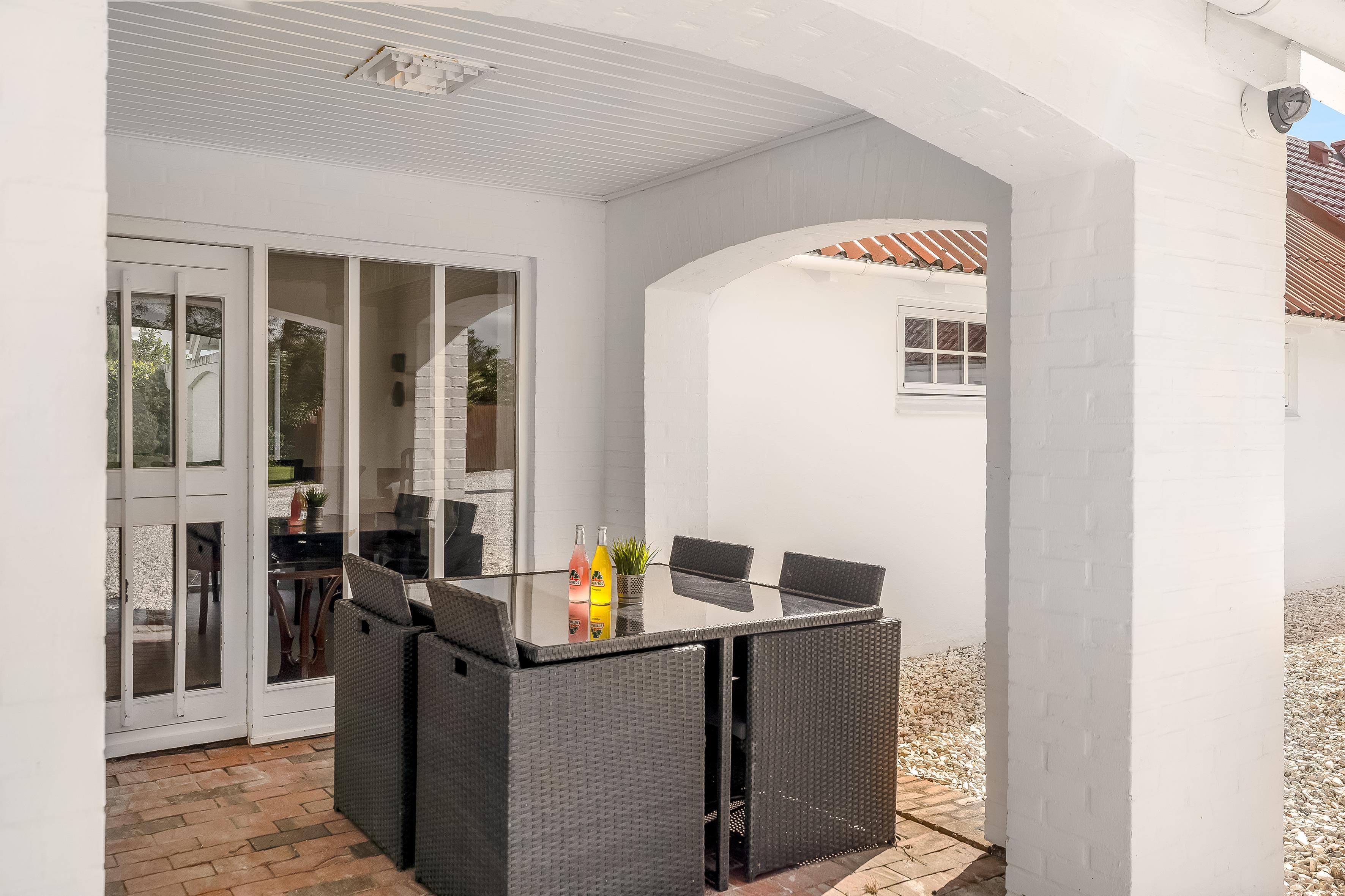 Fornøjelserne er heller ikke til at overse udendørs, hvor haven omkranses af et rækværk af træ. Rundt i haven findes velplacerede udendørslamper, som skaber et smukt syn ved aftentid.