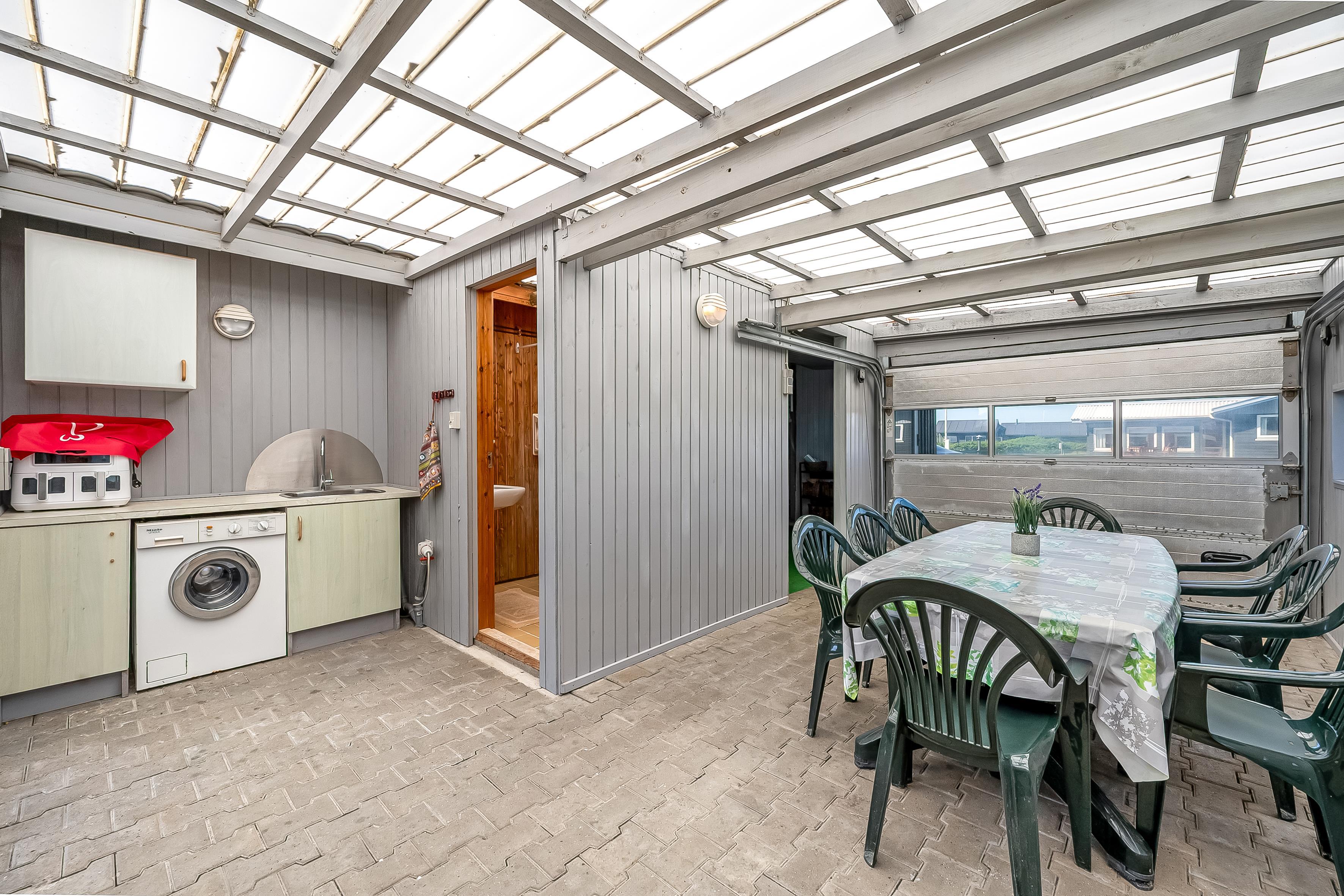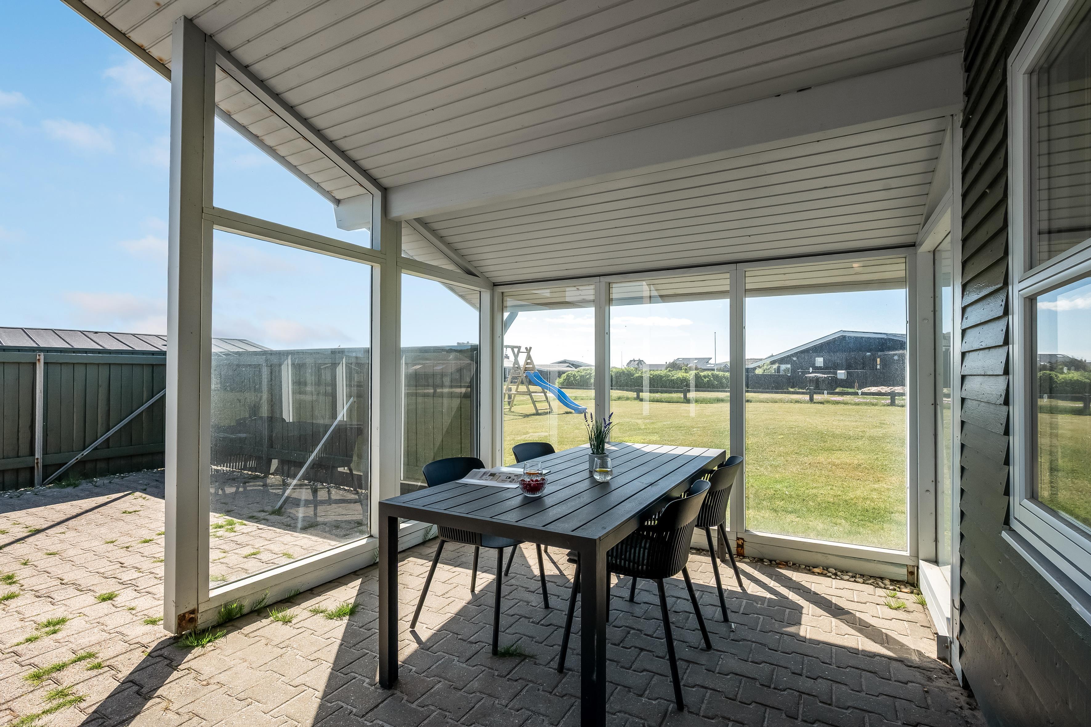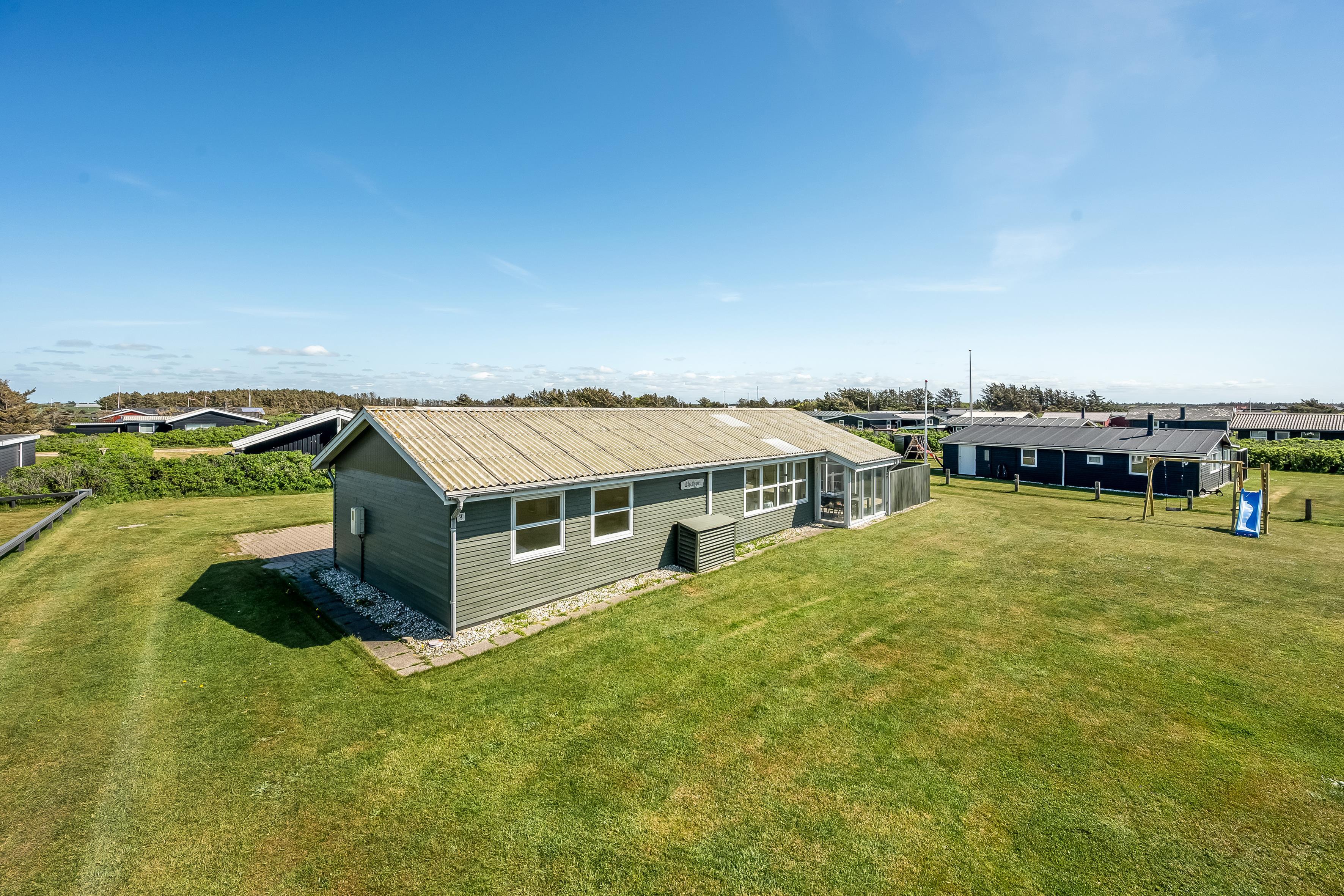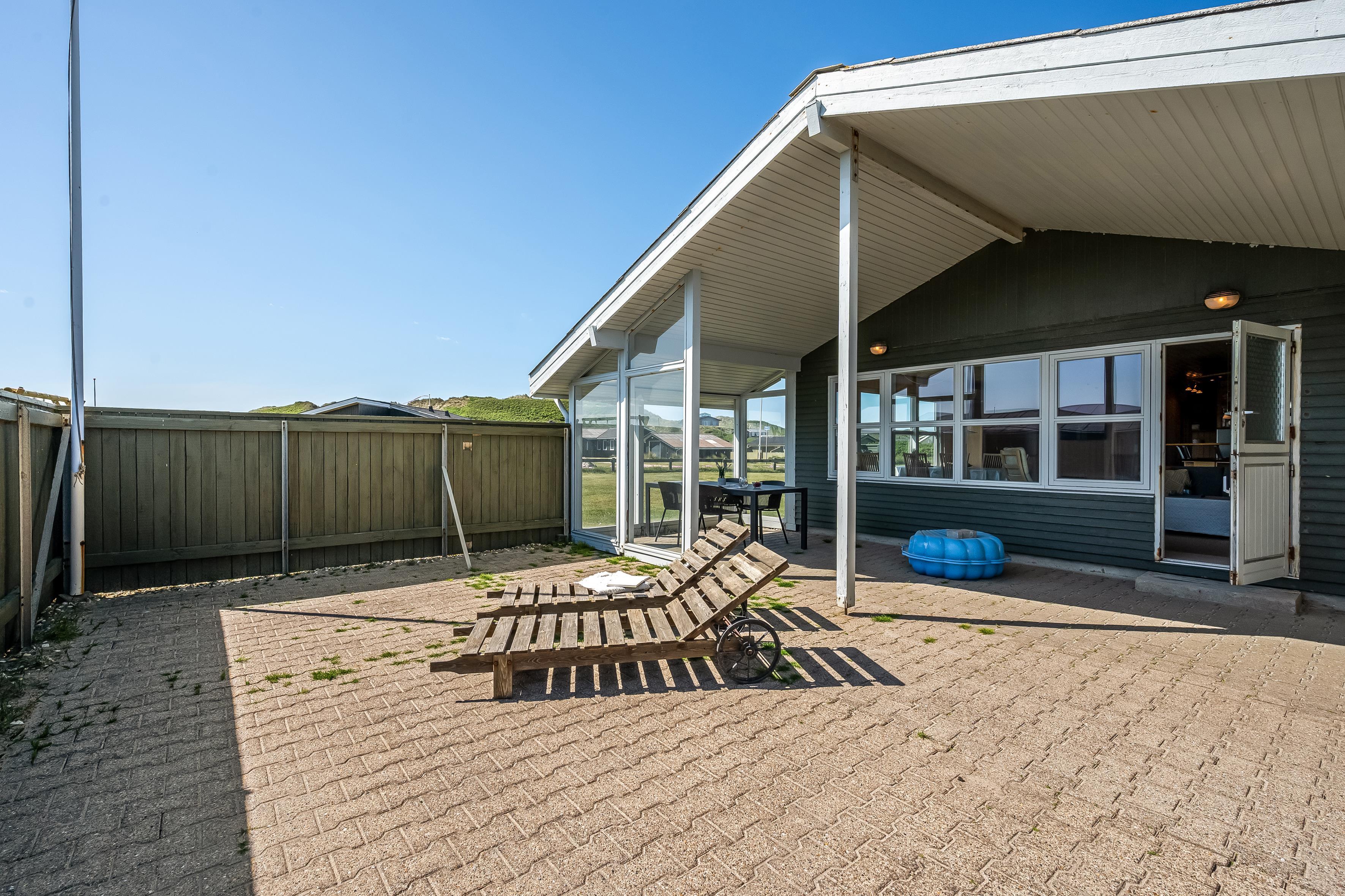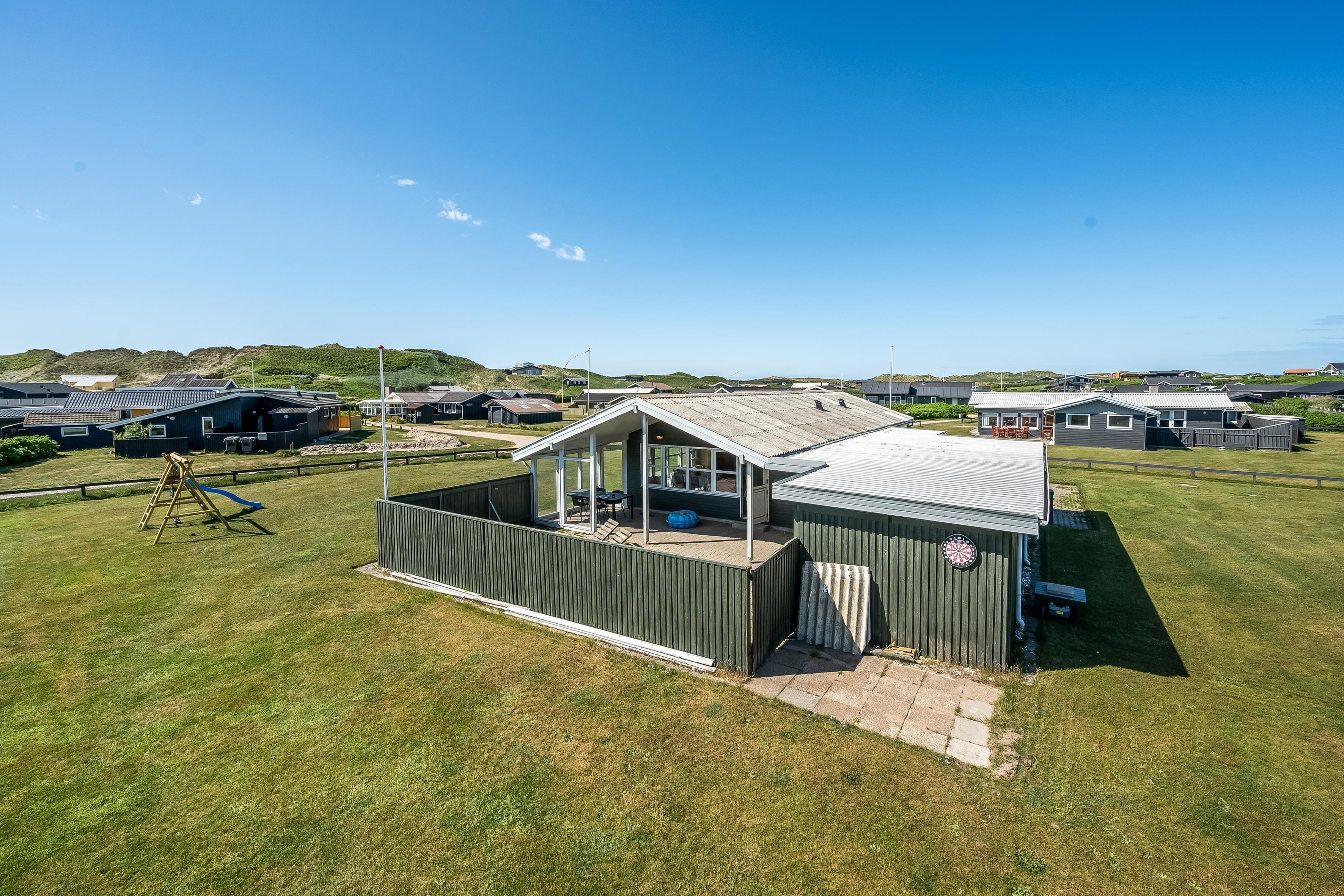 Haven rummer rigeligt med plads til leg og udendørsliv, og for de yngste gæster er der både gyngestativ og rutsjebane. Derudover har huset en stor, solrig terrasse med god læ, hvor du kan nyde både morgenkaffen og lange sommeraftener under åben himmel.