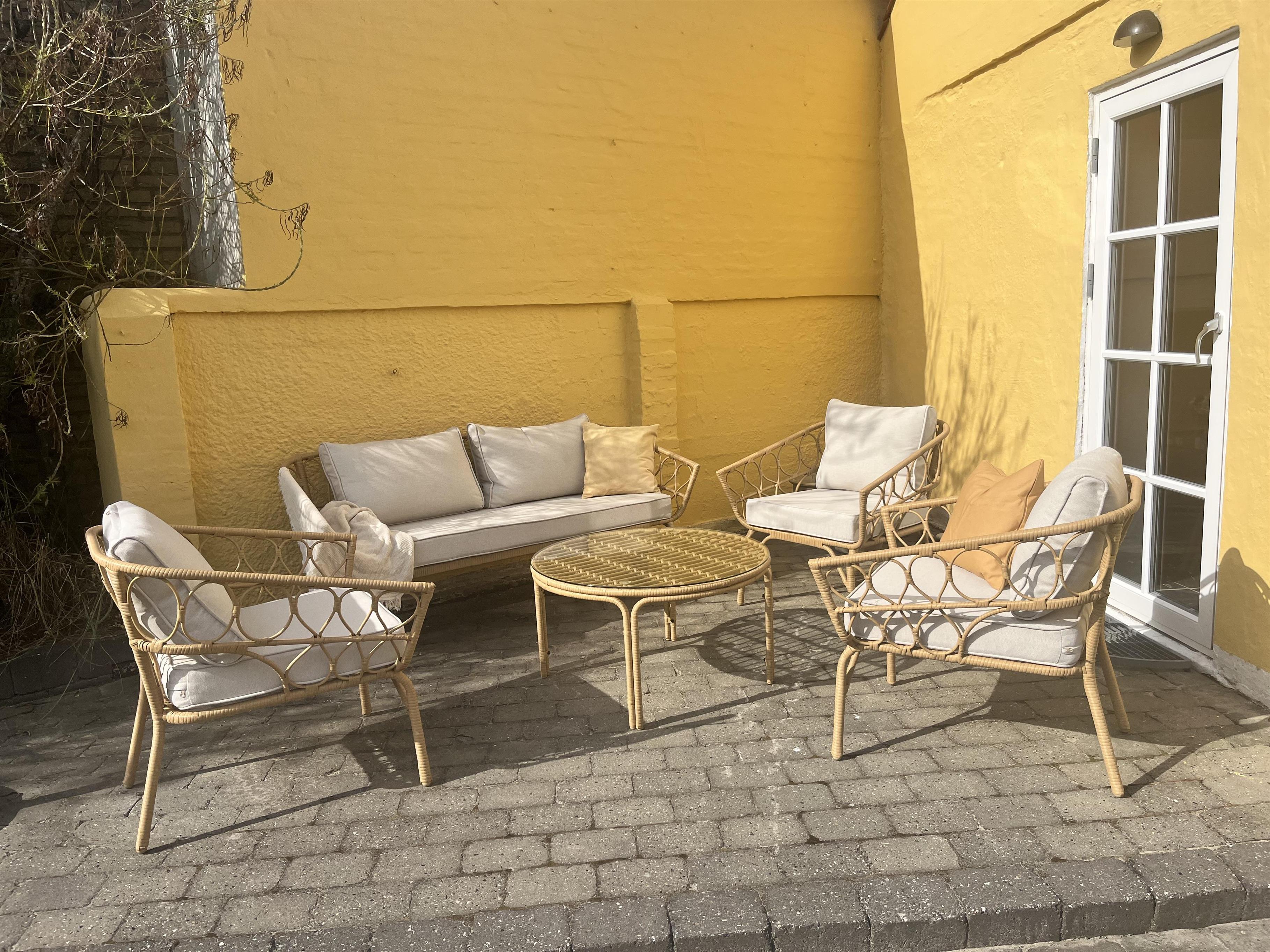 Gårdhaven indbefatter spise- og loungeområde samt græsplæne. Haven er lukket og ugeneret og ideel til afslapning, leg og solbadning. Med siddepladser til 6 personer i både lounge- og spiseområdet kan du nyde udendørslivet til fulde. Haven har desuden en stor gasgrill og en forfriskende udendørsbruser til efter en dag på stranden, der blot er 200 meter væk.