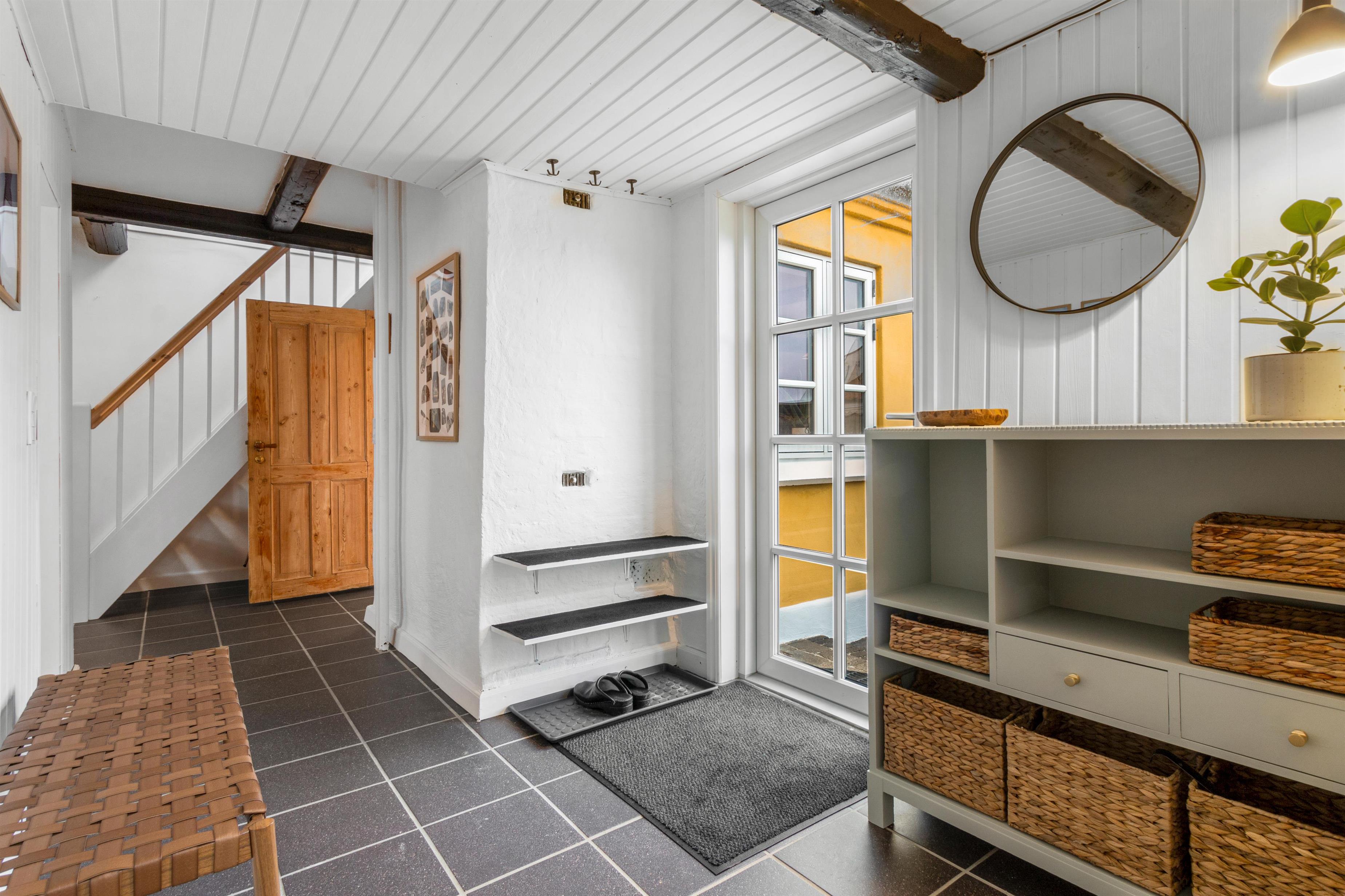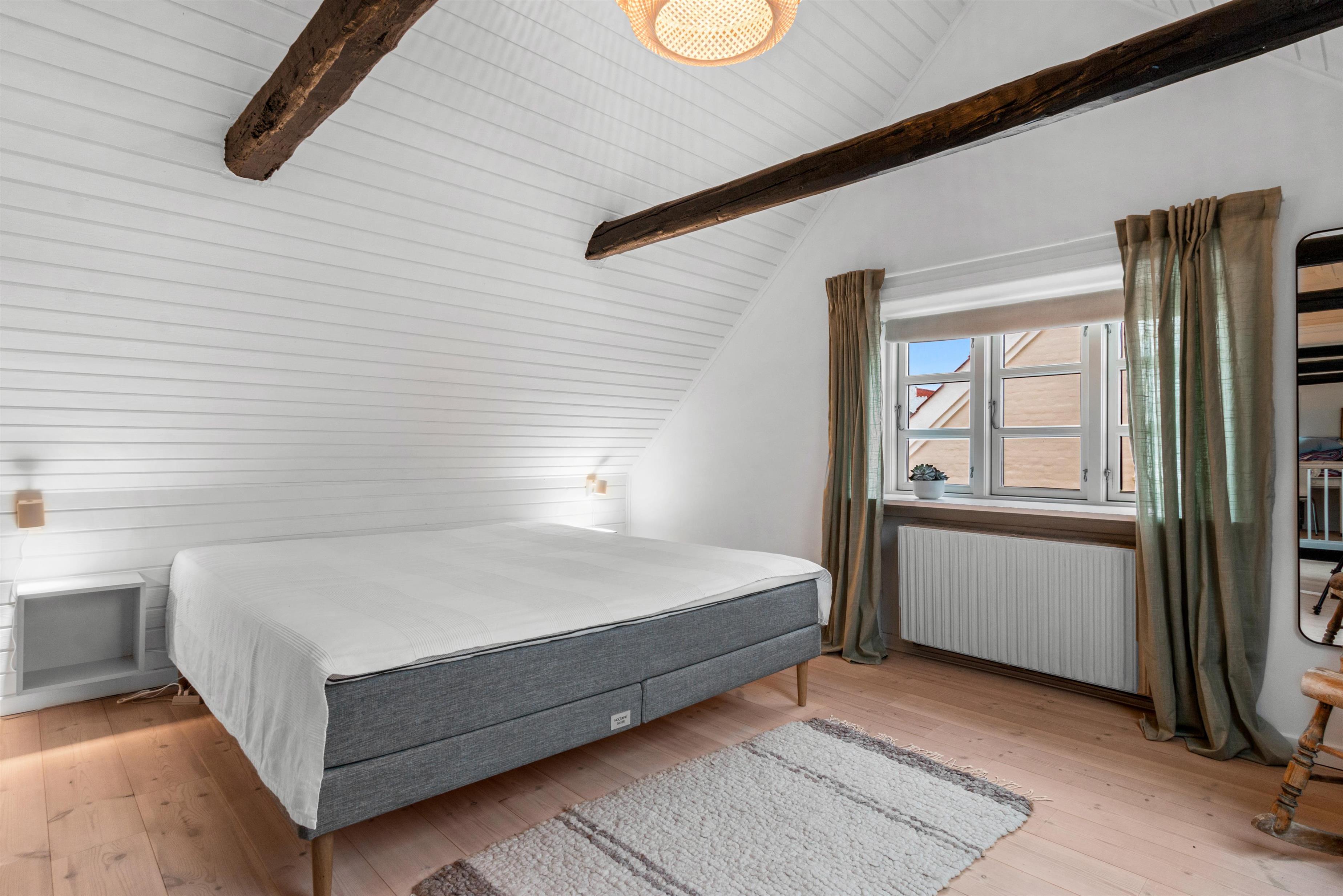 På venstre side af huset finder du indgangen til haven, terrassen og huset bag den private parkeringsplads. Kirkegade er super centralt beliggende, kun et stenkast væk fra byens centrum, hvilket gør det let at udforske Løkkens charmerende gader og stræder. Der er desuden mulighed for at parkere på selve Kirkegade.