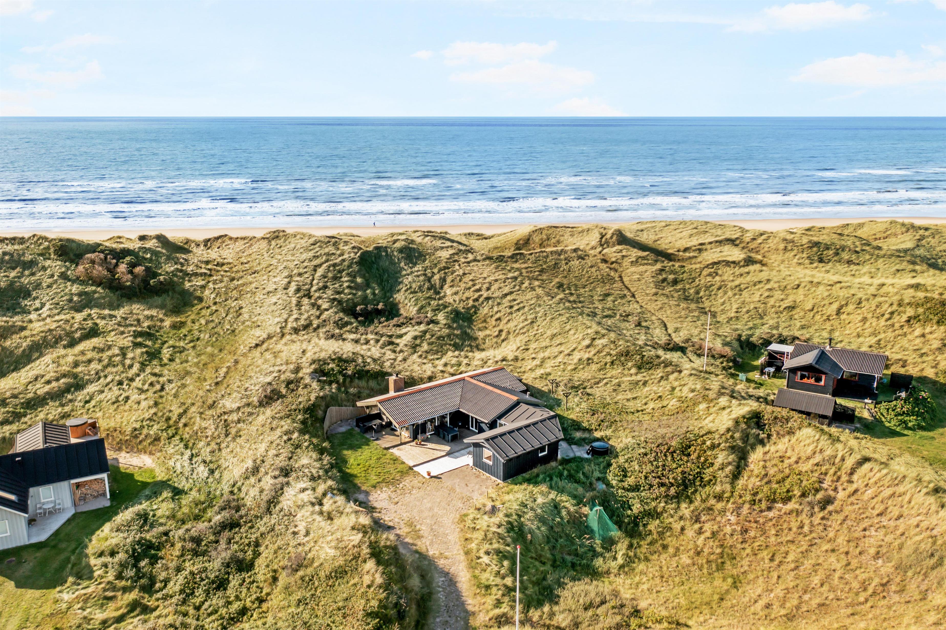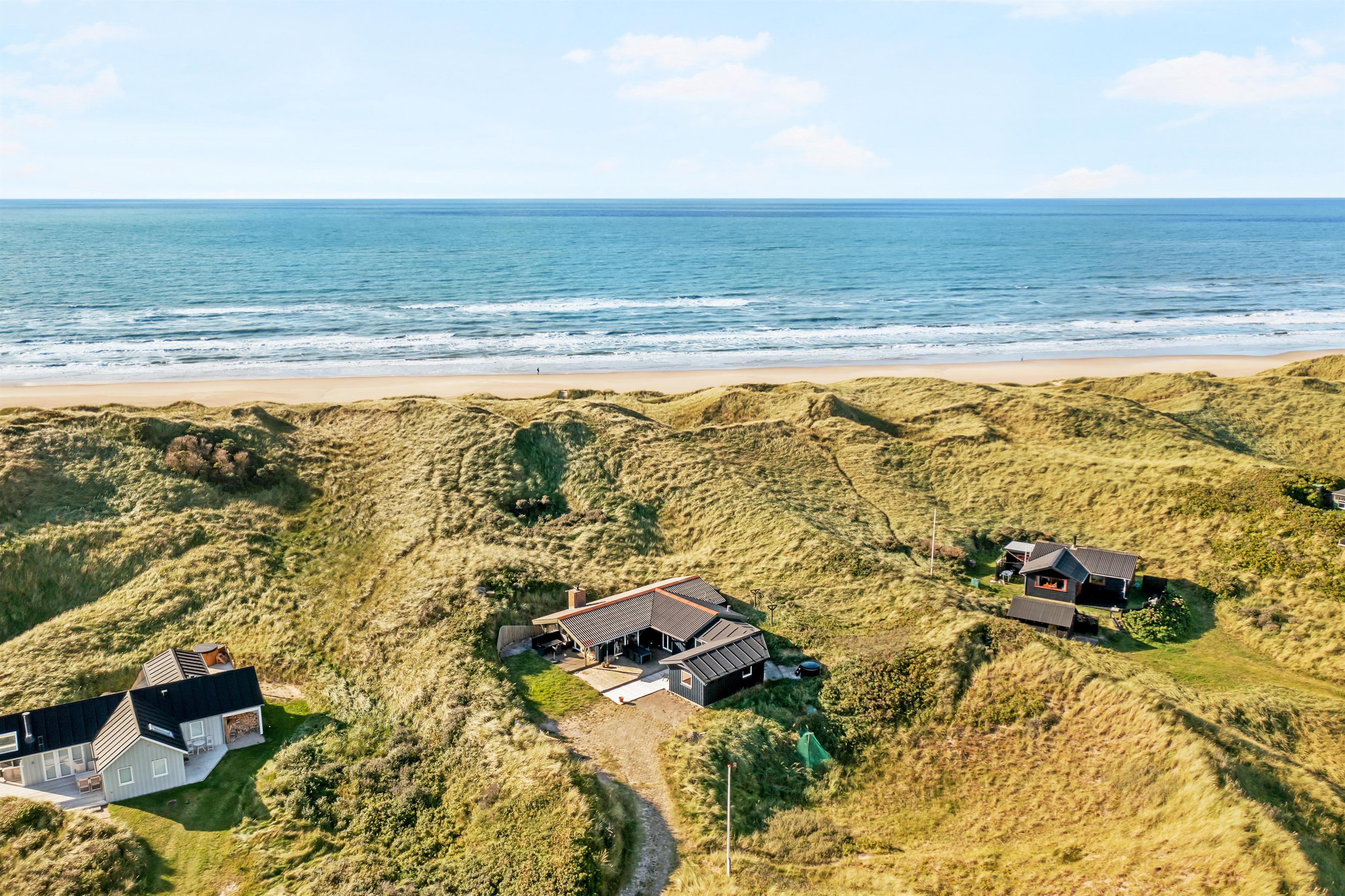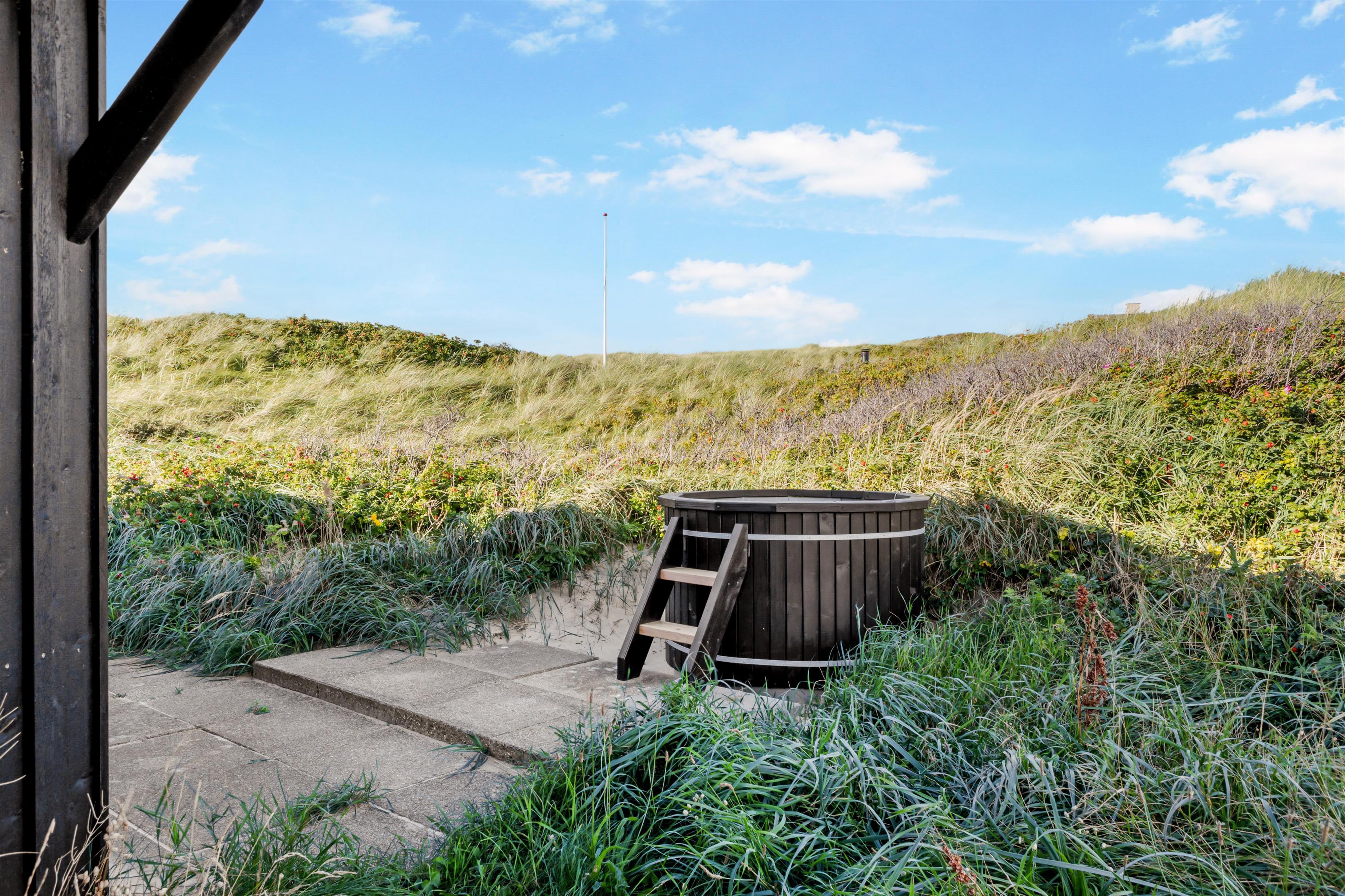 Udenfor sommerhuset er der rig mulighed for masser af naturskønne oplevelser. Huset ligger blot 50 meter fra stranden for enden af en blind vej i et sommerhusområde, der er tilpas afskærmet fra byens lebel, som du dog alligevel kan finde indenfor 5 minutters kørsel i bil. Det er ligeledes let at cykle ind til Løkken by, og det er tilladt at køre i bil ned på stranden, der er en af Danmarks bedste badestrande. I højsæsonen er der tilmed livreddere på visse strandstrækninger. Gå en tur i de smukke klitter, eller kør 15 minutter og brug en dag i en af Europas største forlystelsesparker, Fårup Sommerland. Her er rige muligheder for såvel afslapning som mere actionprægede oplevelser. Udenfor huset er der svensk bad og udebruser.