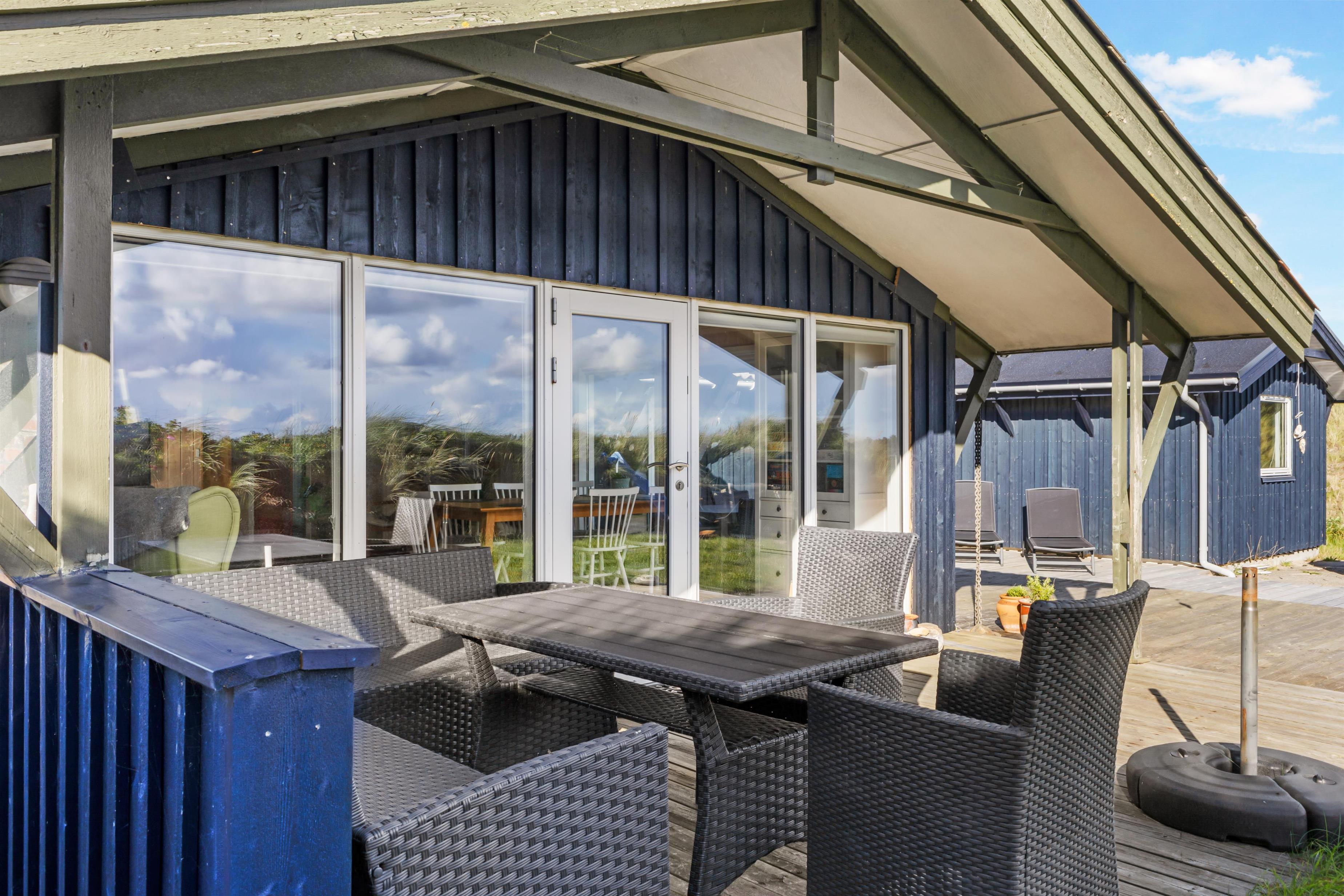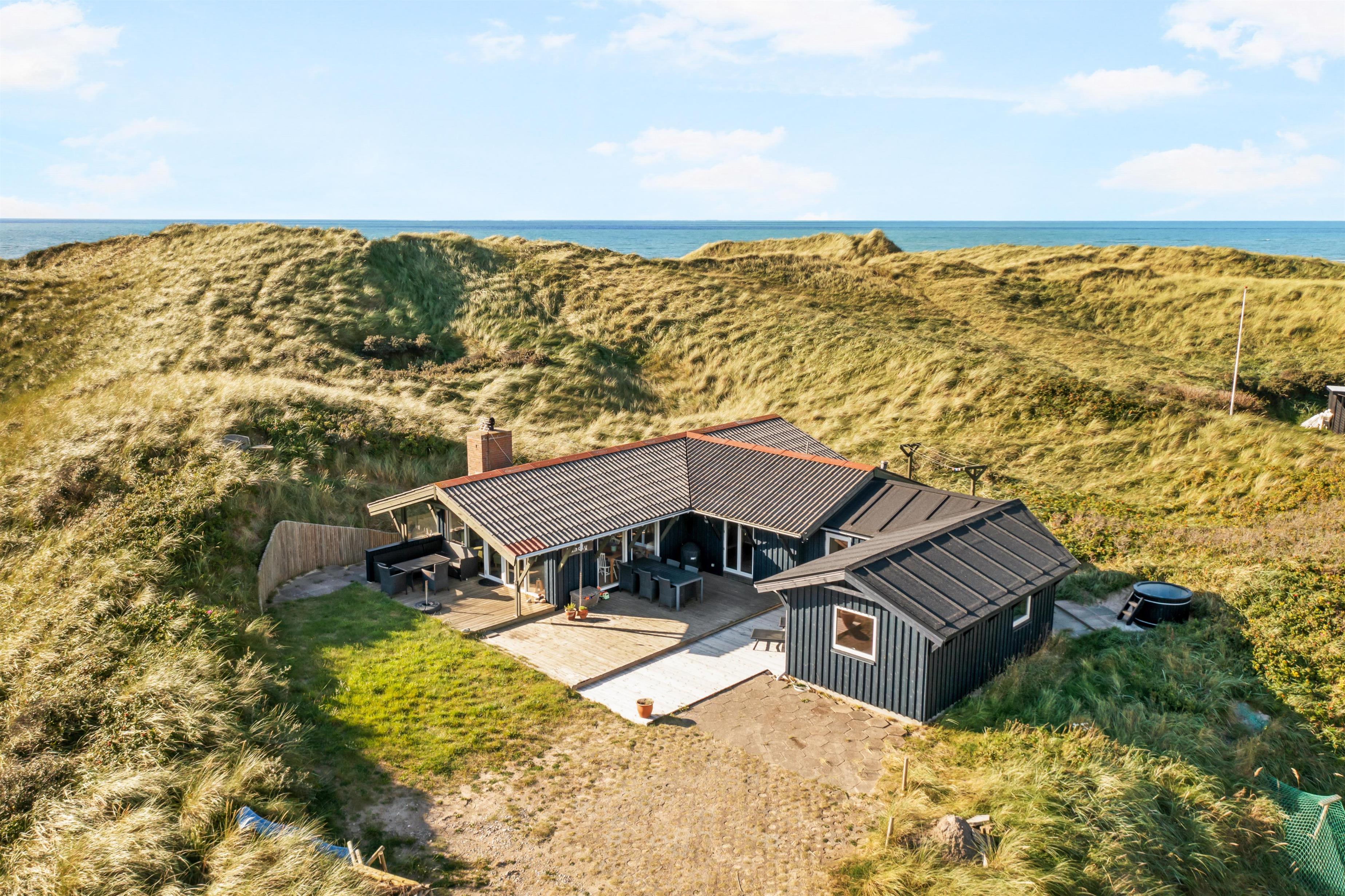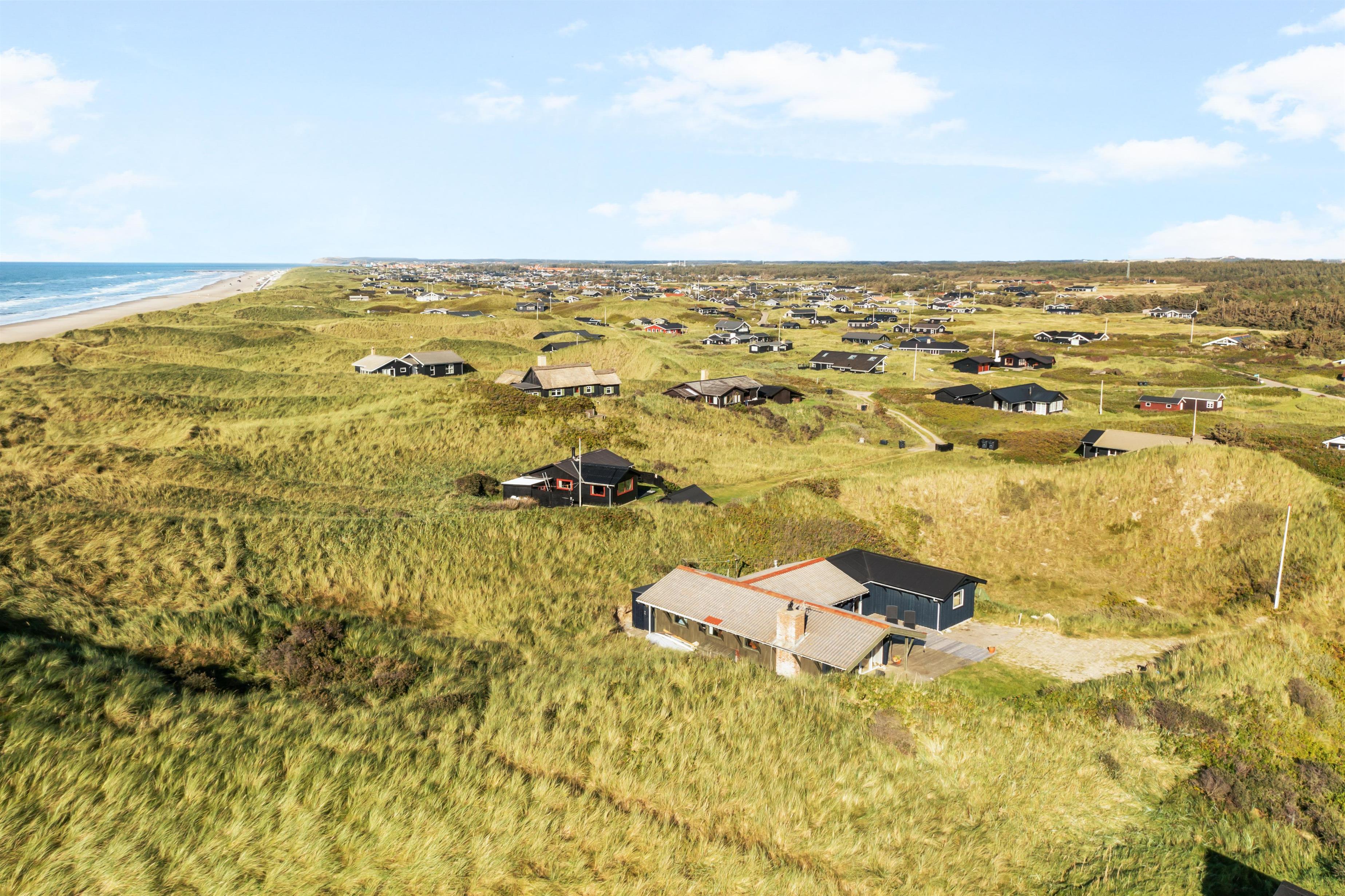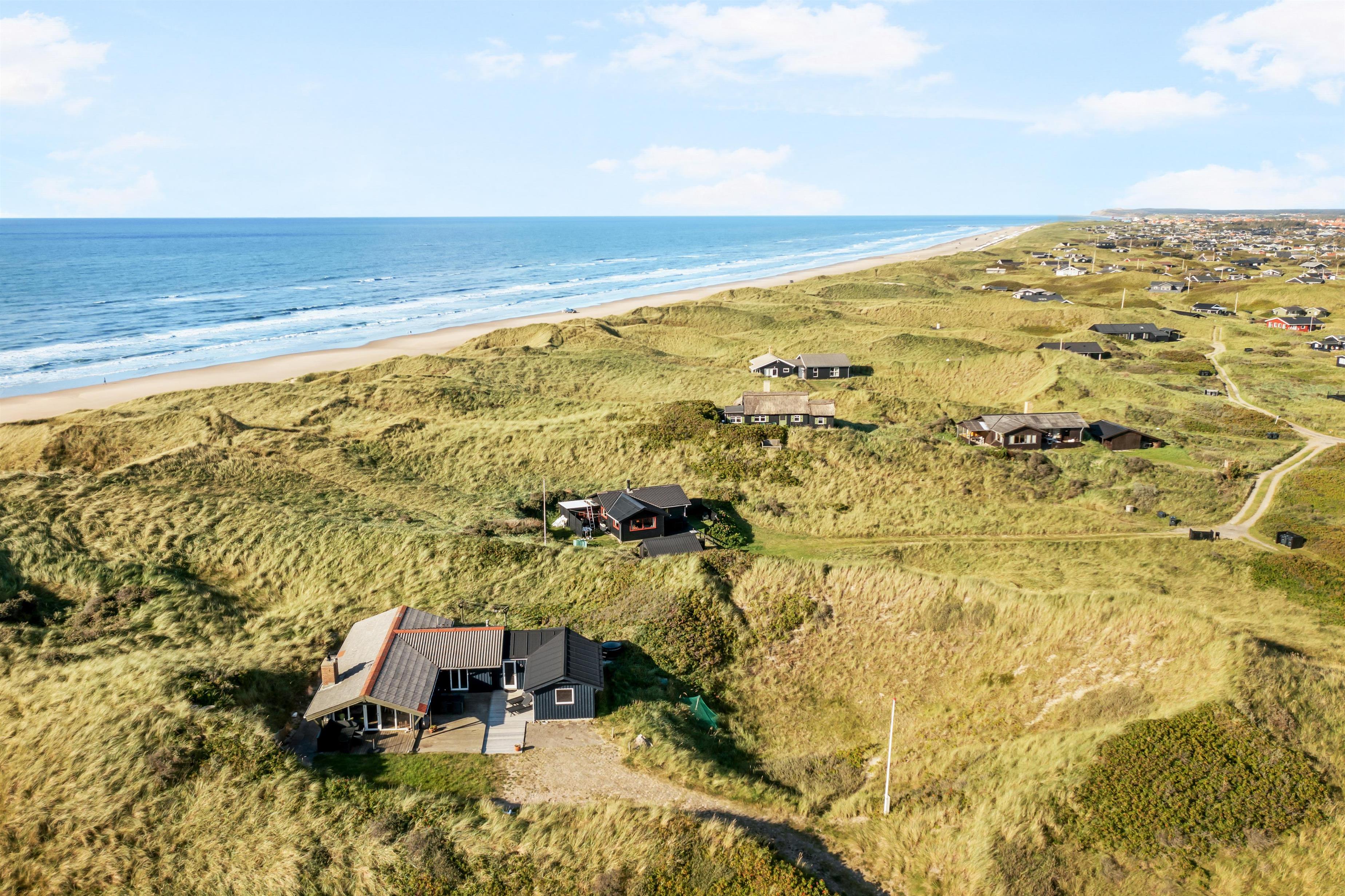 Udenfor sommerhuset er der rig mulighed for masser af naturskønne oplevelser. Huset ligger blot 50 meter fra stranden for enden af en blind vej i et sommerhusområde, der er tilpas afskærmet fra byens lebel, som du dog alligevel kan finde indenfor 5 minutters kørsel i bil. Det er ligeledes let at cykle ind til Løkken by, og det er tilladt at køre i bil ned på stranden, der er en af Danmarks bedste badestrande. I højsæsonen er der tilmed livreddere på visse strandstrækninger. Gå en tur i de smukke klitter, eller kør 15 minutter og brug en dag i en af Europas største forlystelsesparker, Fårup Sommerland. Her er rige muligheder for såvel afslapning som mere actionprægede oplevelser. Udenfor huset er der svensk bad og udebruser.