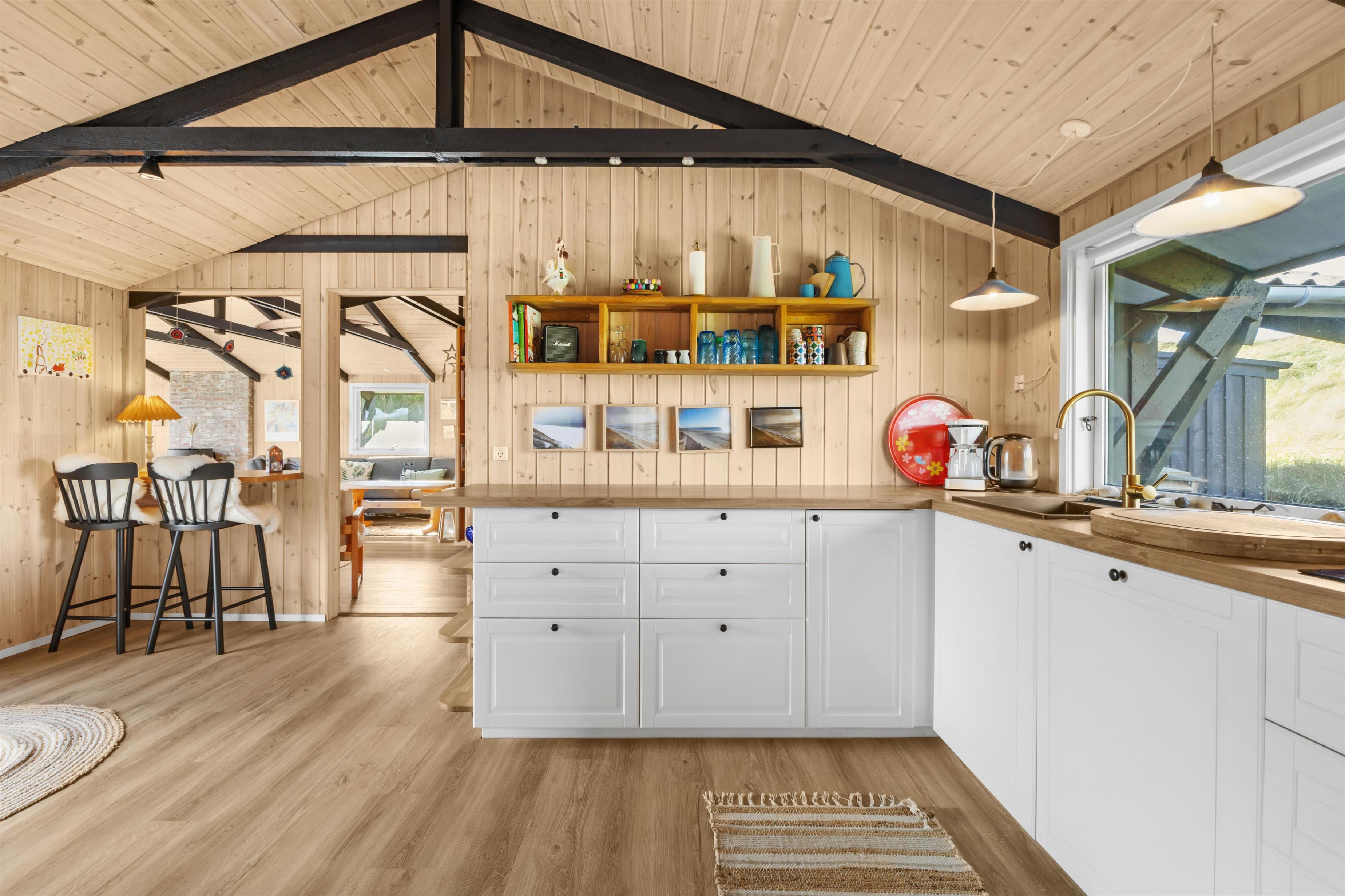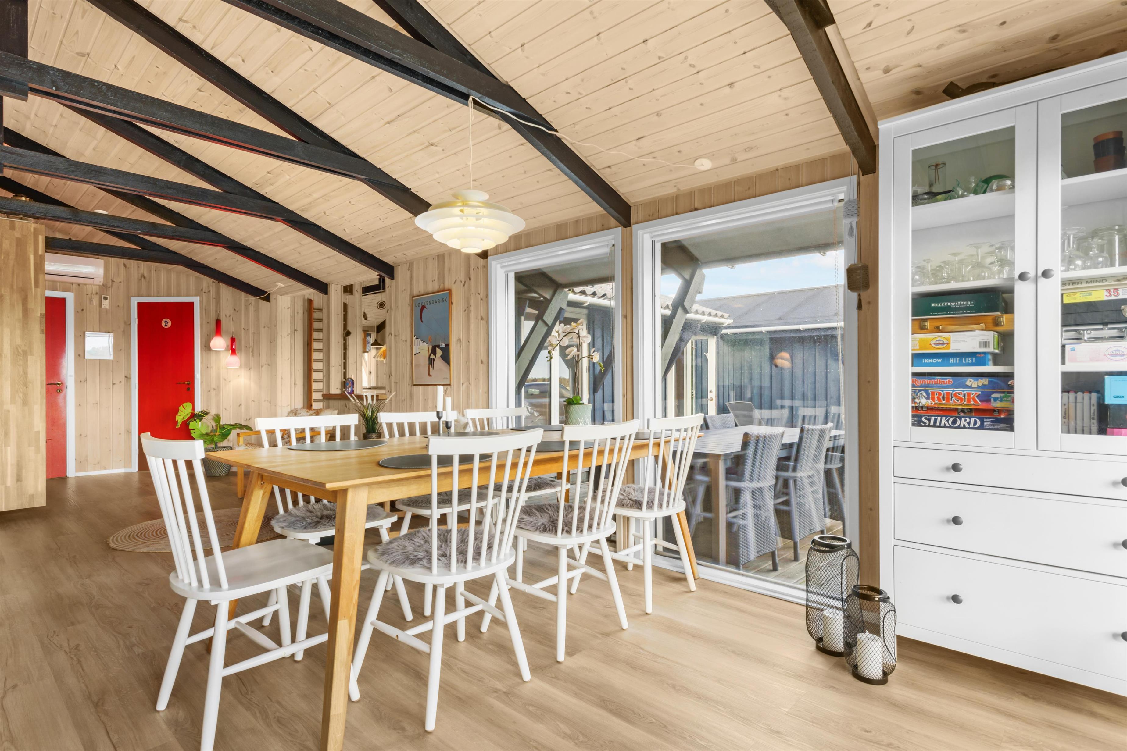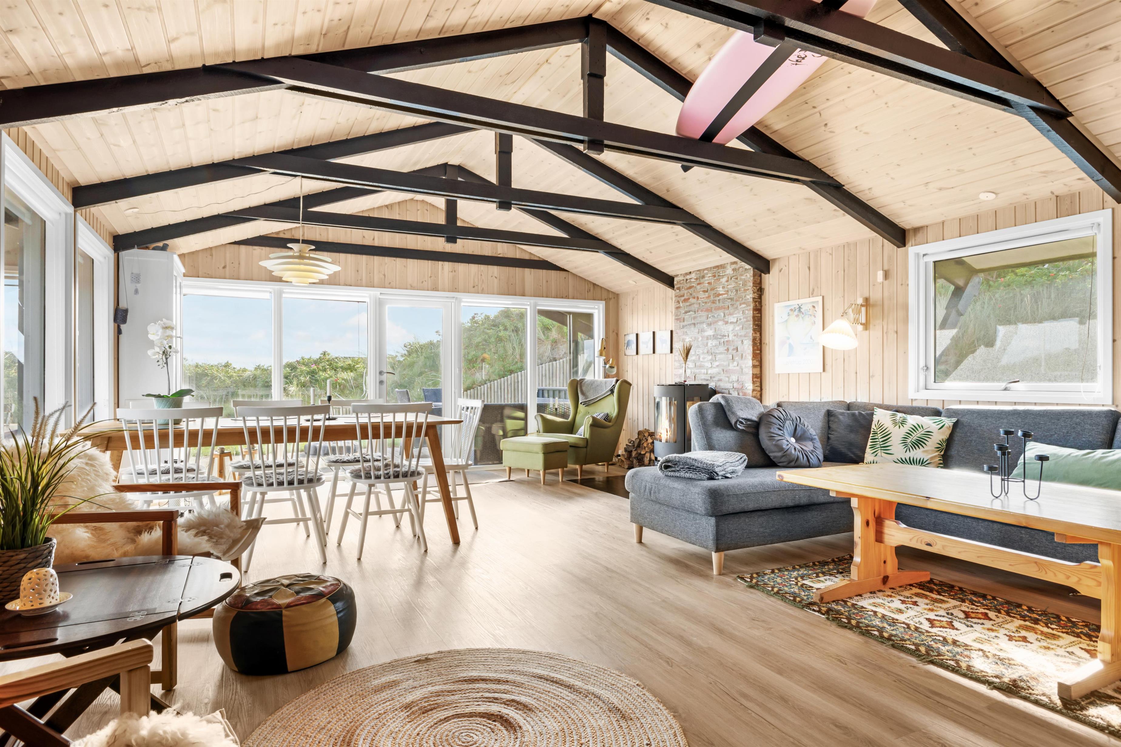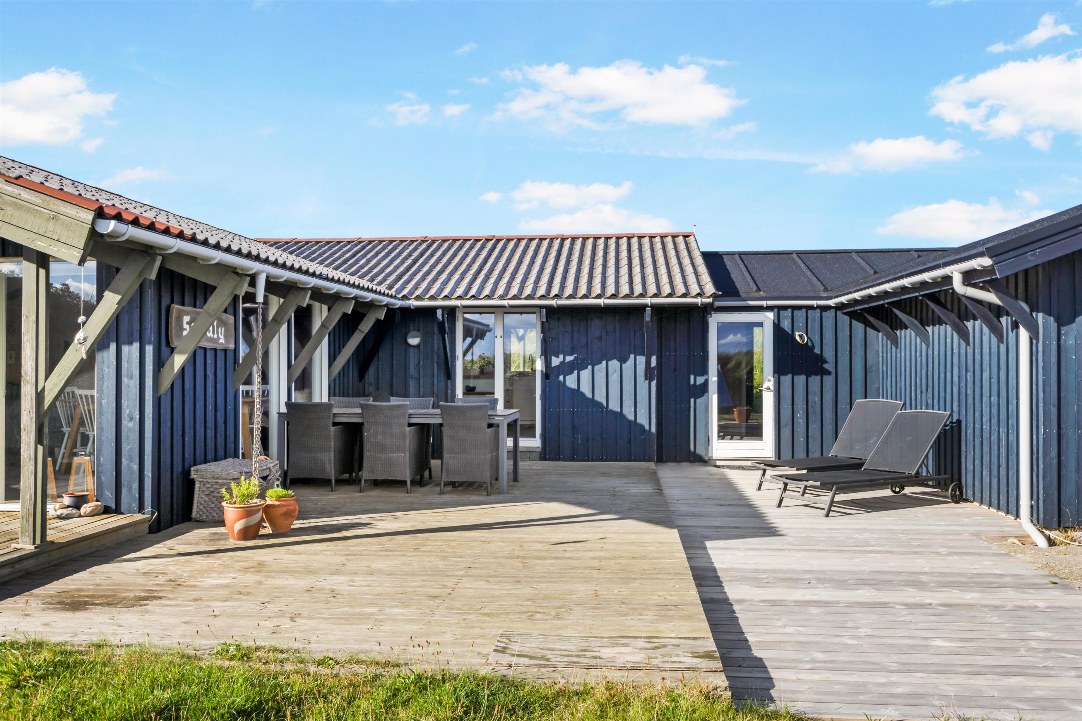 I dette sommerhus er der plads til hele 10 personer fordelt på 125 dejlige kvadratmeter, hvis de 3 er villige til at sove på ekstra opredninger. Huset er et traditionelt sommerhus og det indeholder 1 badeværelser, 2 toiletter, sauna samt svensk bad og udebruser. For dig, der følger med i bestemte serier, er der som ekstra luksus gratis Netflix og HBO, foruden Chrome Cast. Der er mulighed for at hygge sig ved brændeovnen, og ellers er der også varmeblæser. Det er let at parkere ved huset, der ligger for enden af en blind vej. Stilen er som nævnt traditionel, dansk sommerhushygge og her er masser af muligheder for at nyde ferien såvel ude på de dejlige terrasser som indenfor.