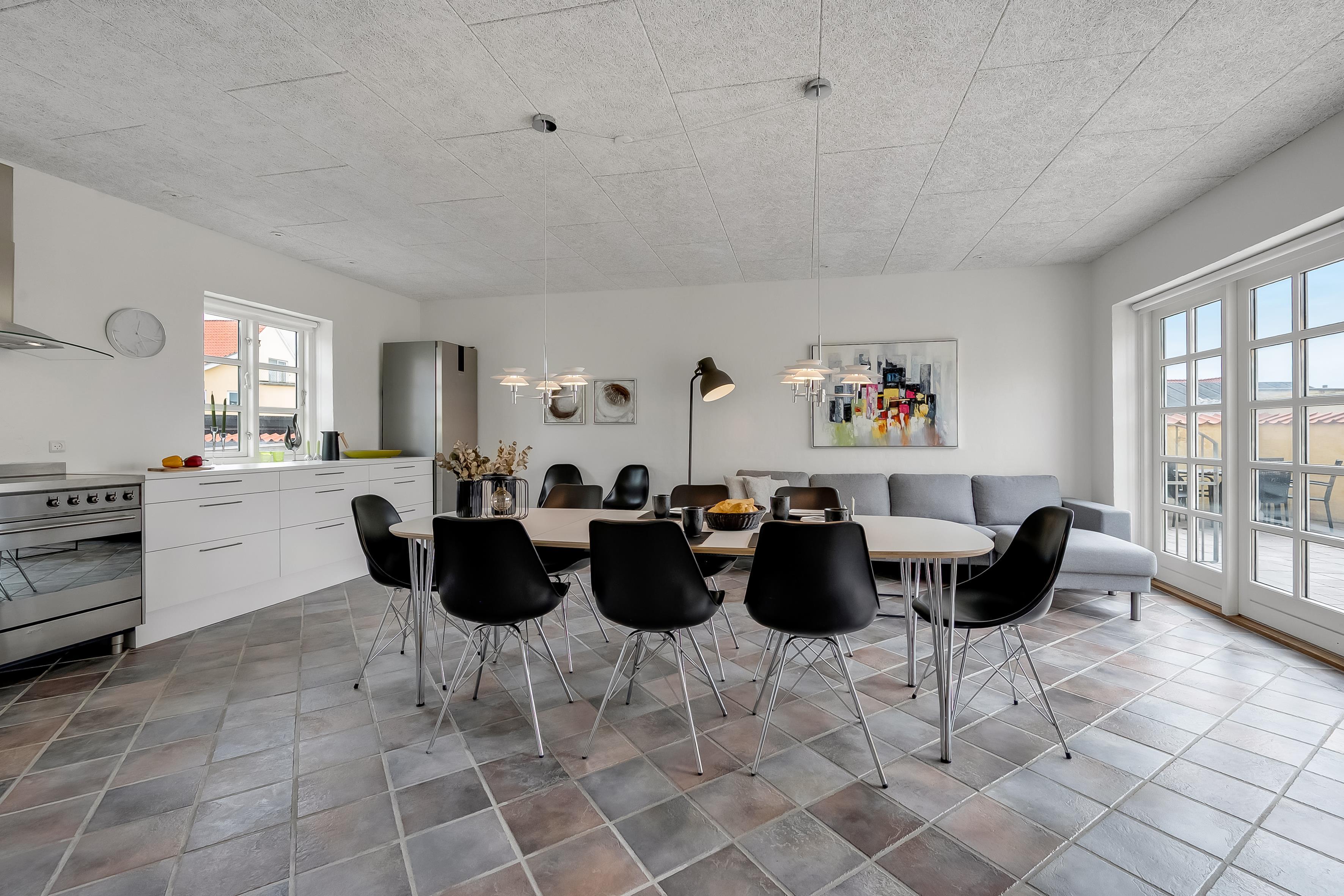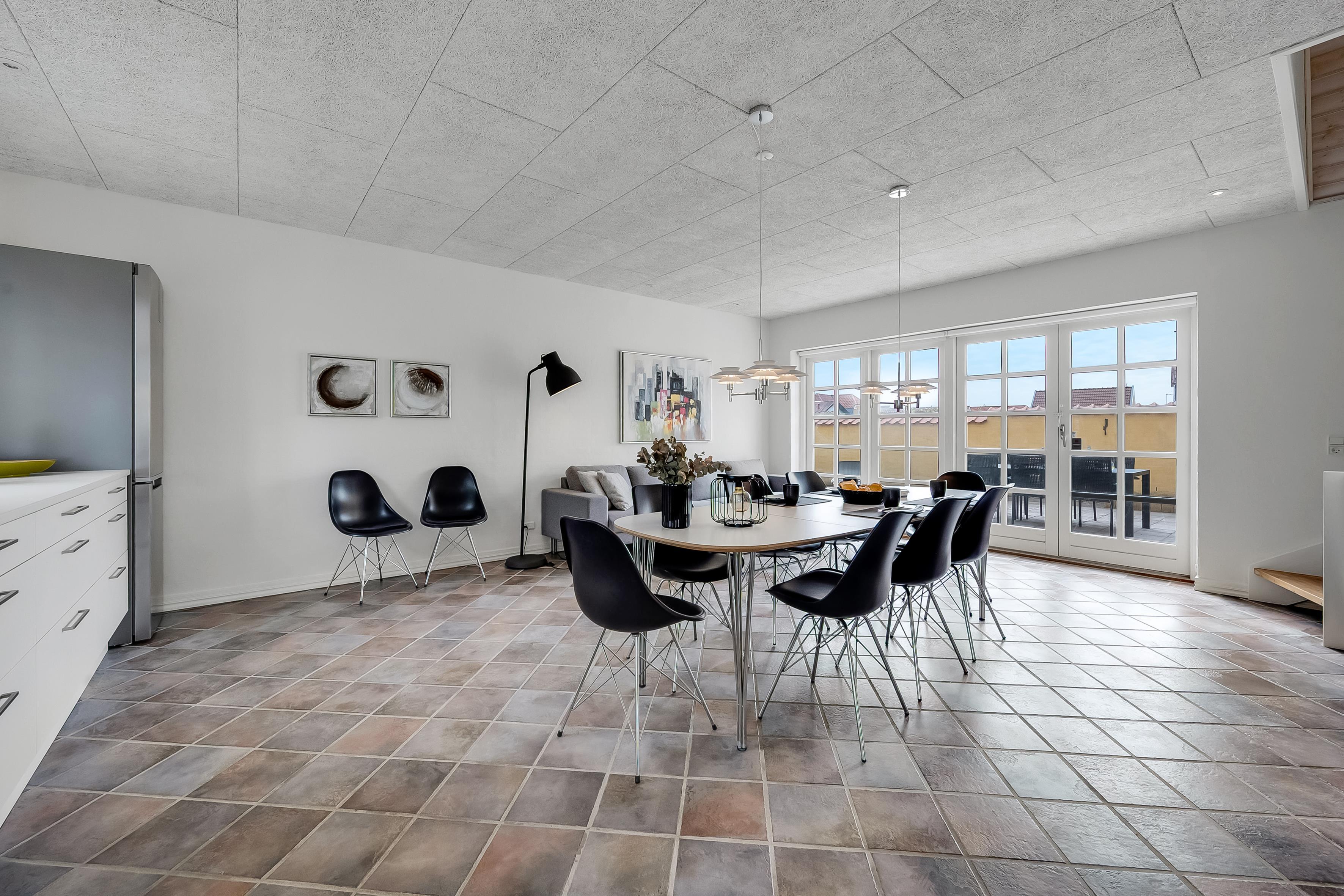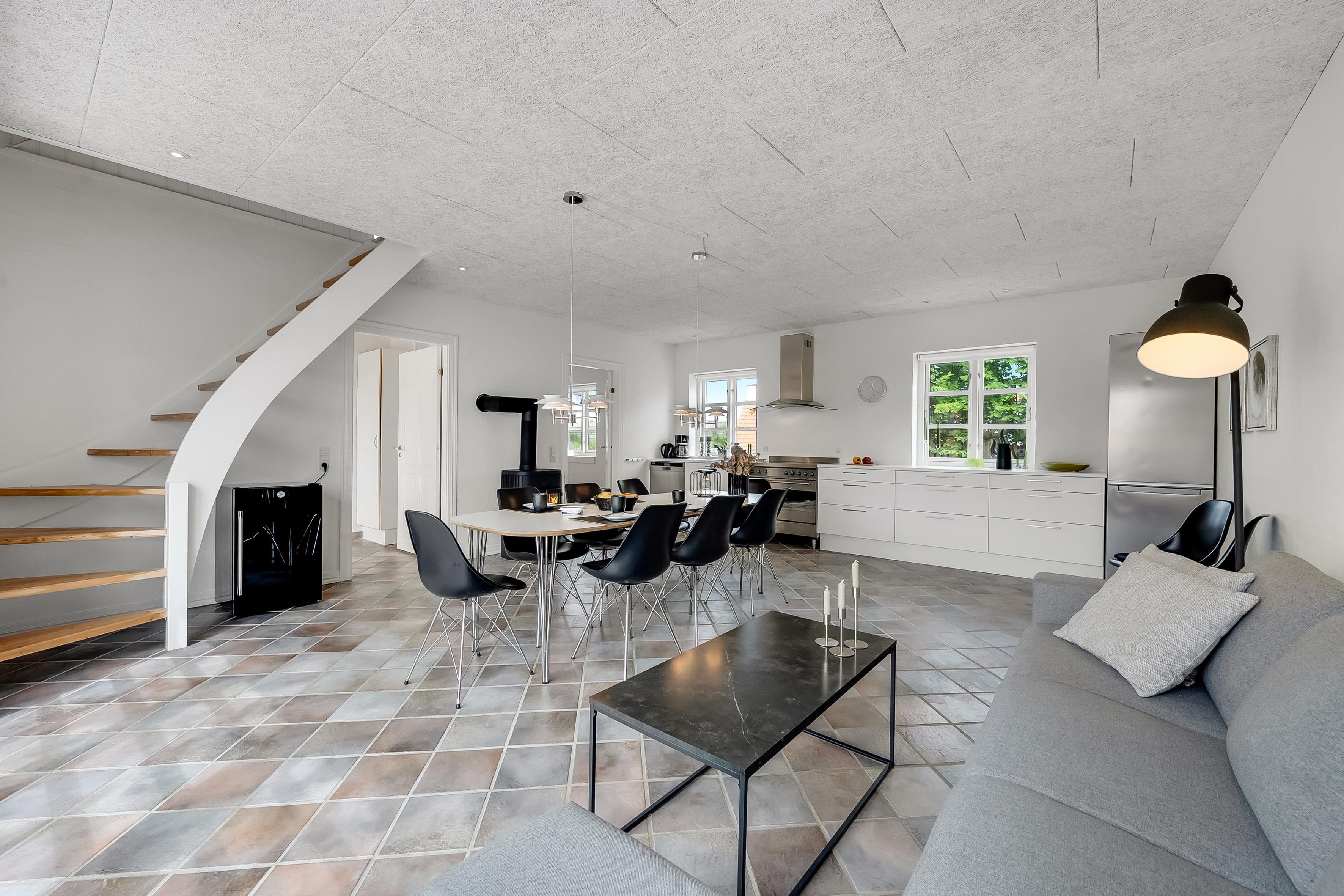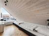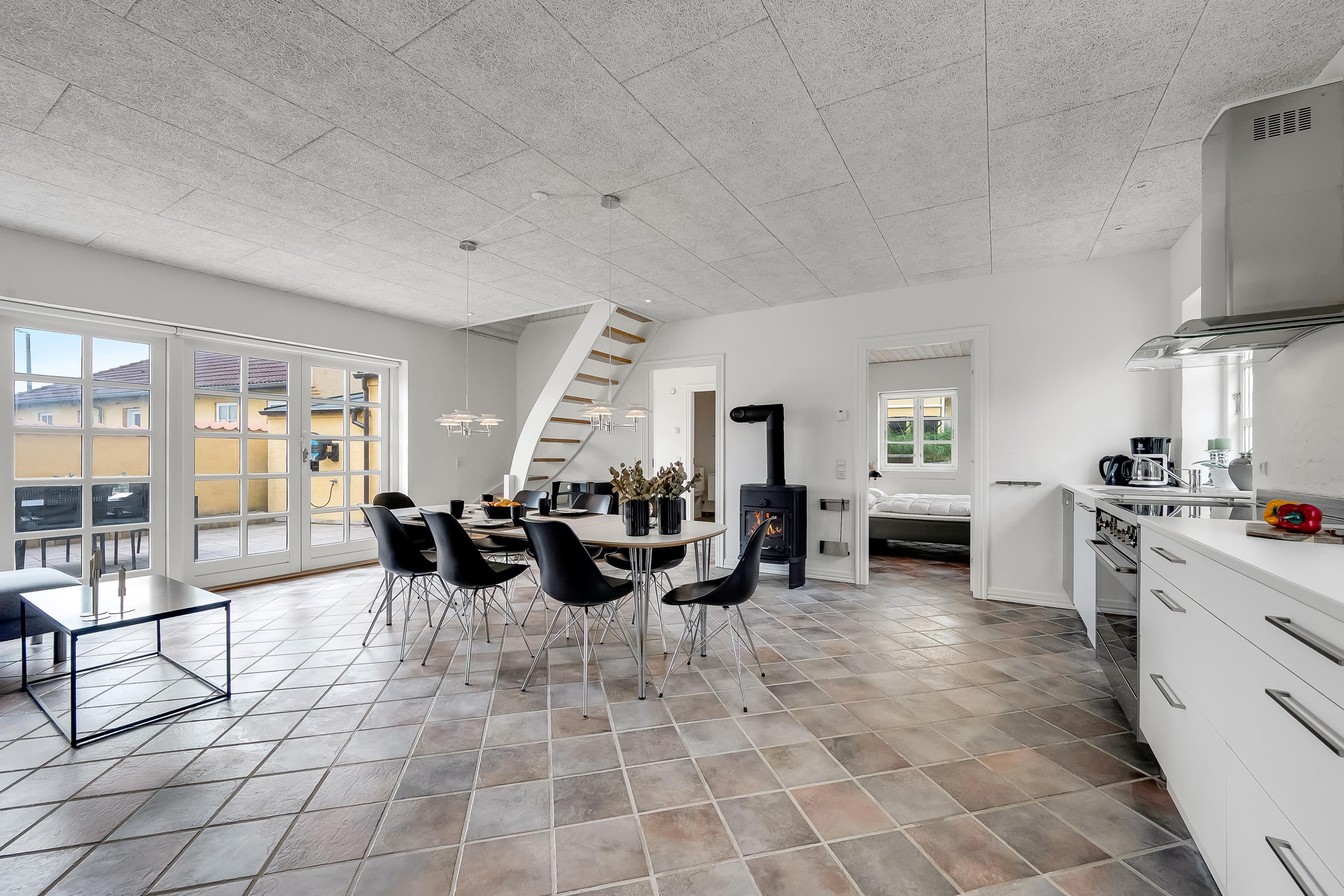 Hvad end du er til byens leben eller fred og ro på terrassen, finder du det i dette skønne sommerhus. Selve huset består af stueetage og første sal, der er opdelt i tre sektioner, hvilket gør det let at rejse flere familier eller par sammen. Den ene sektion finder du, når du kommer ind af hoveddøren og træder til venstre; her er stue, soveværelse med plads til to personer, hems med plads til to ekstra opredninger samt badeværelse. Den anden sektion er til højre, hvor husets store og lyse køkkenalrum samt andet badeværelse findes. Fra køkkenet kan du tilgå det andet soveværelse med plads til to personer, samt husets første etage, hvor der er to soverum.