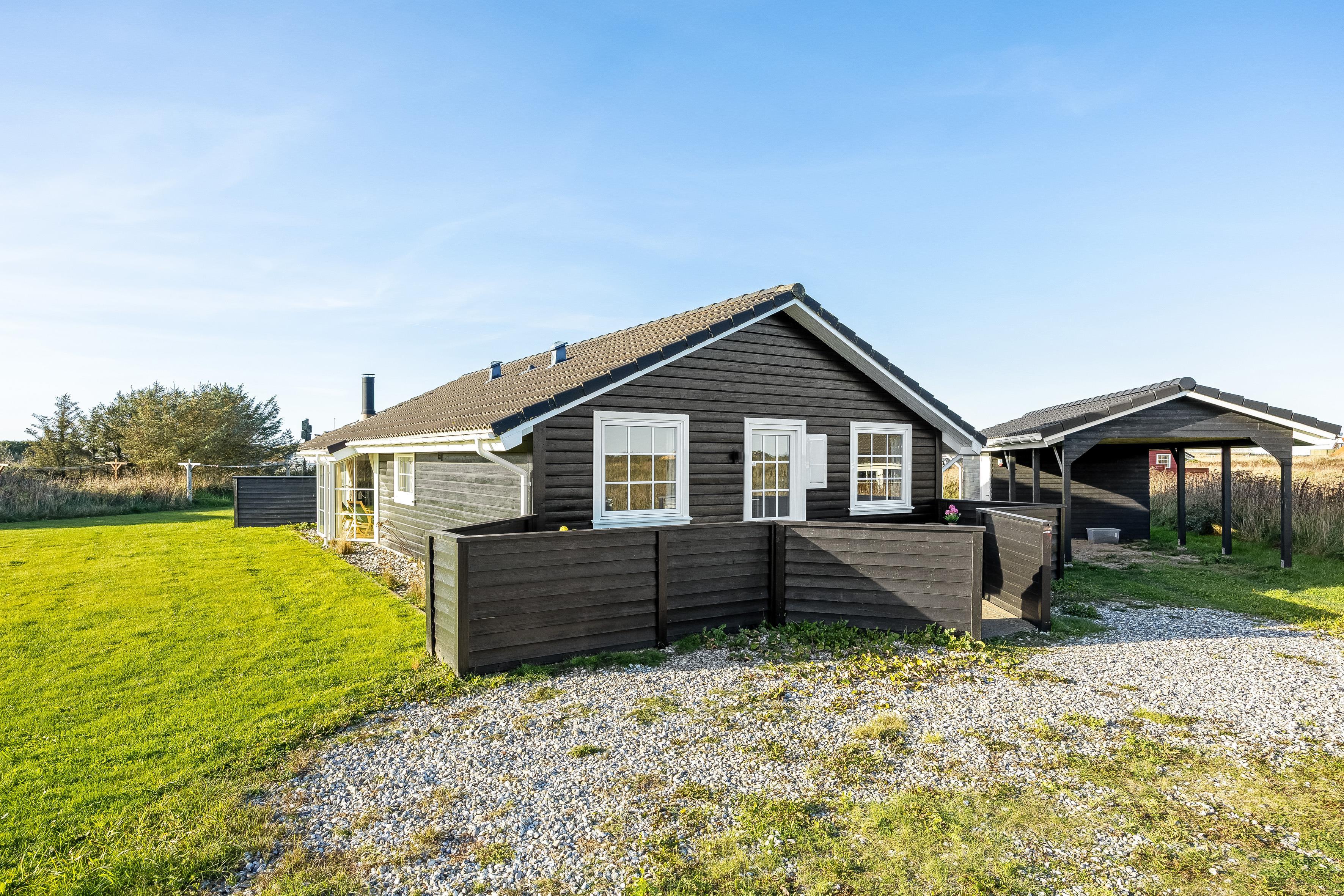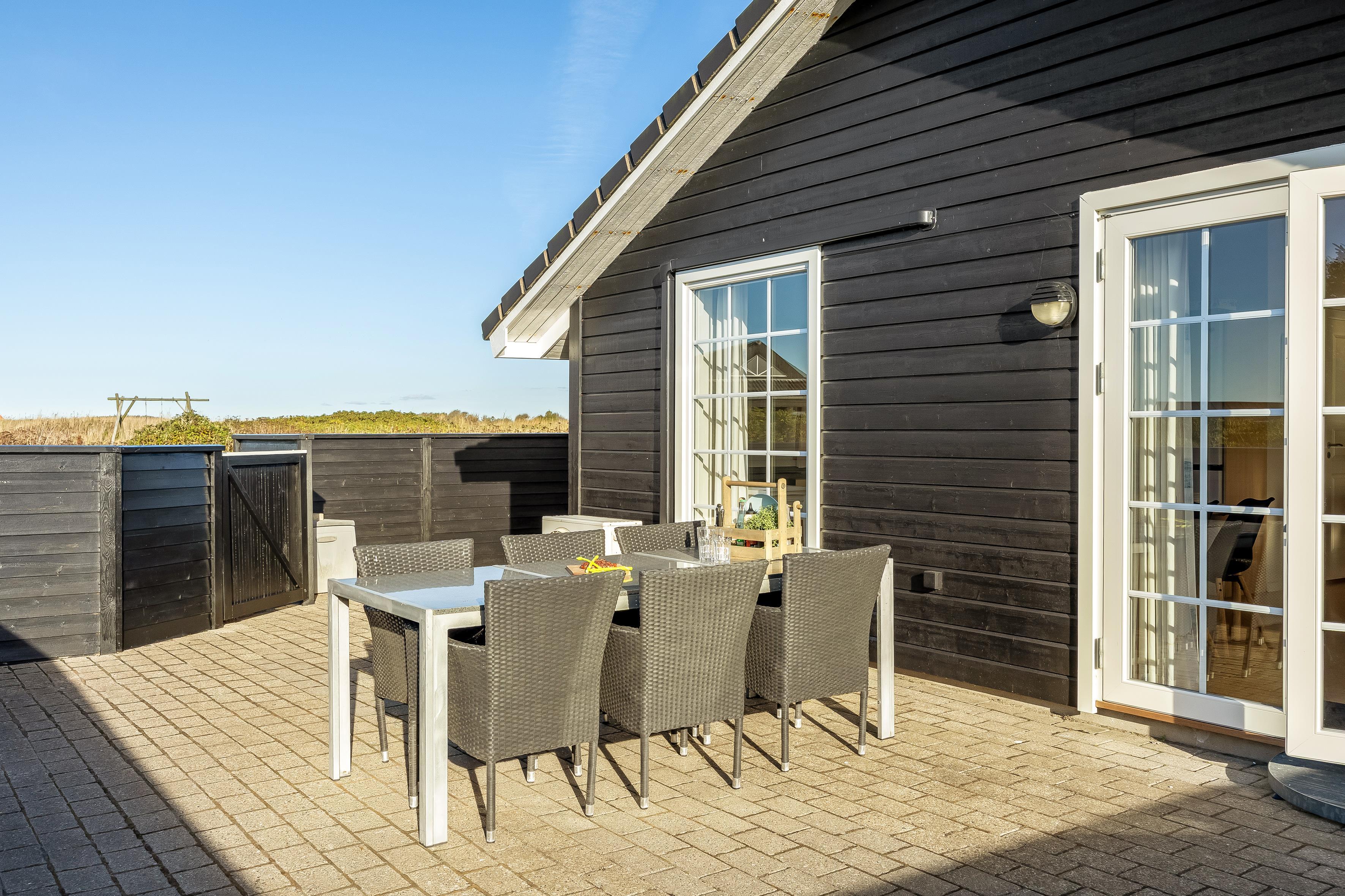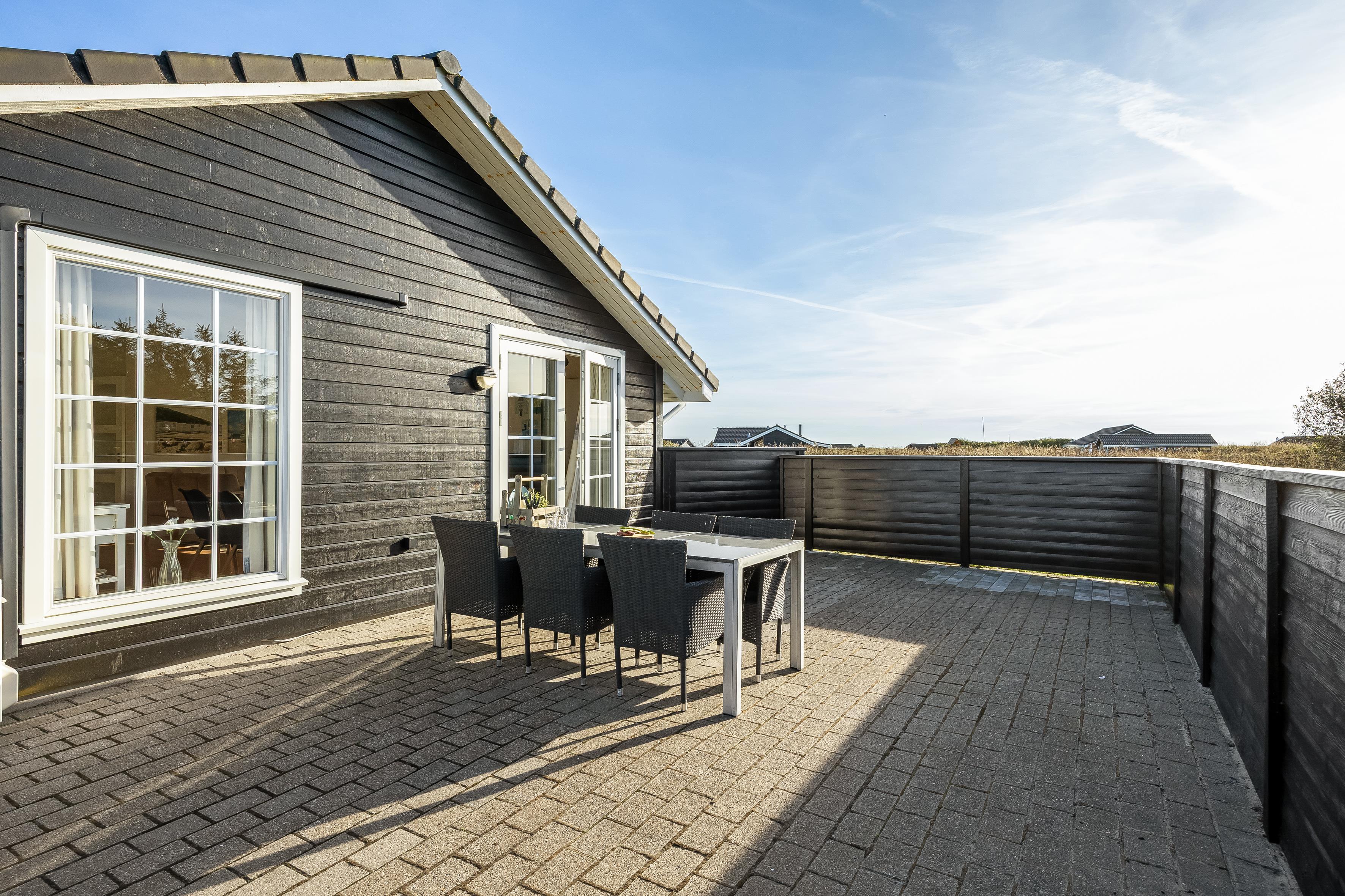 Moderne sommerhus nær Vesterhavet med spa, lukket terrasse og plads til hunde.