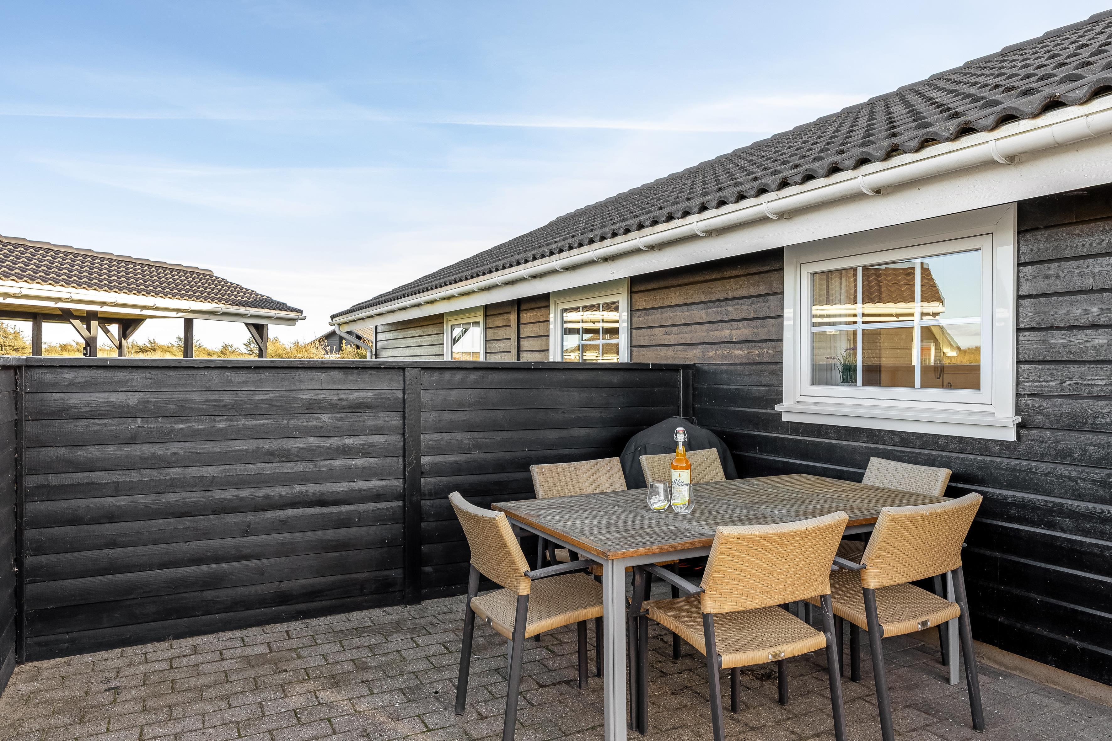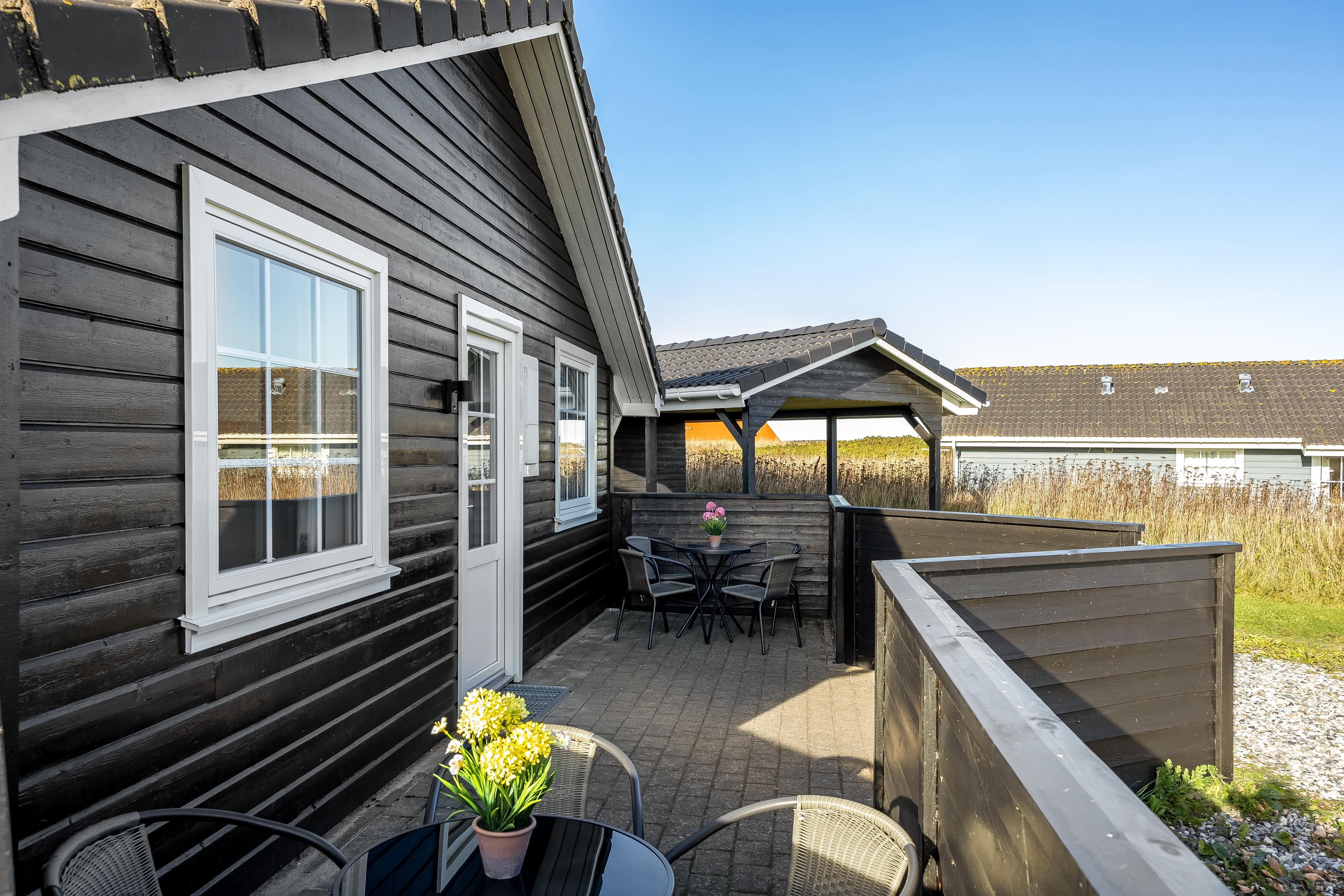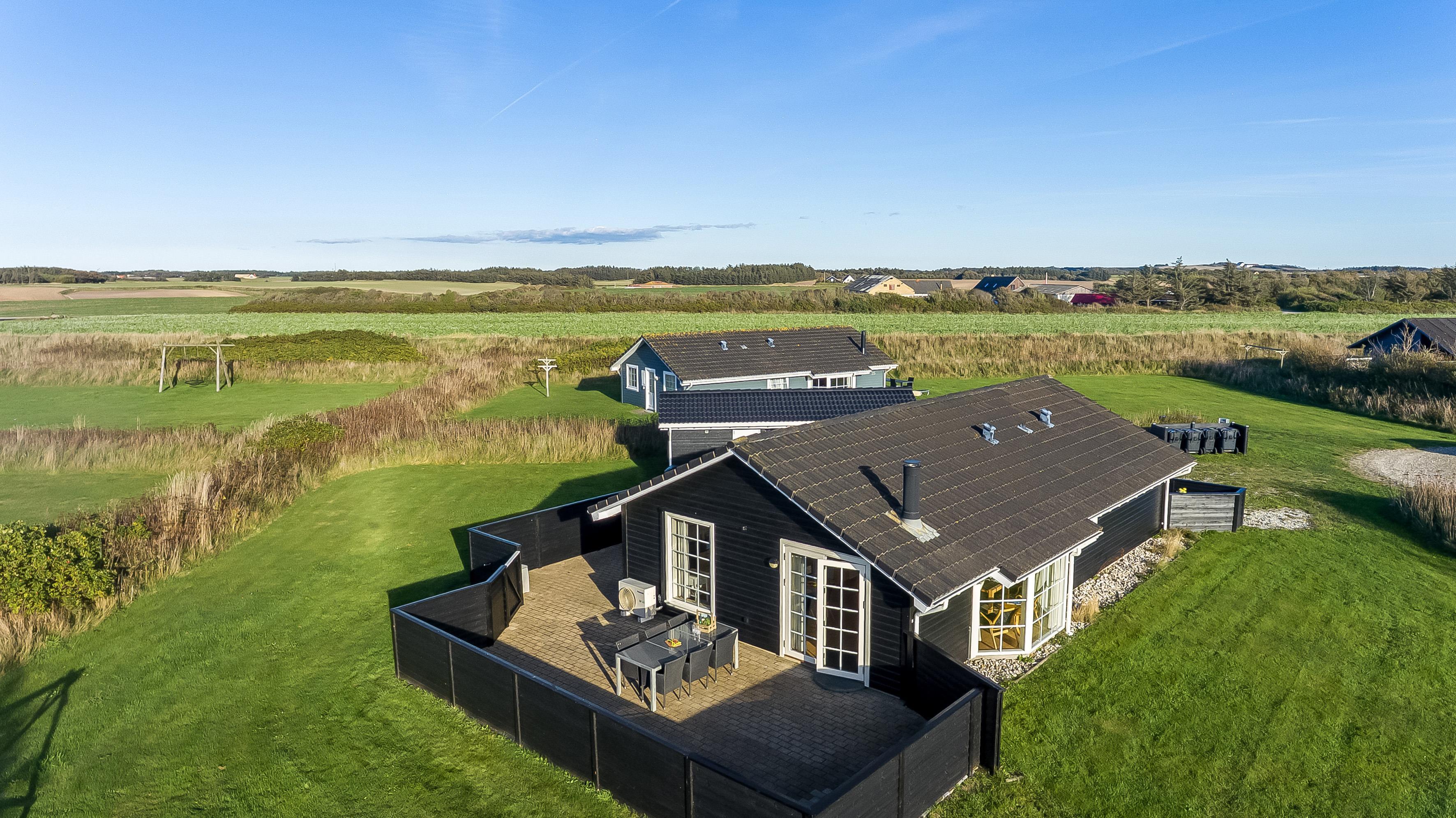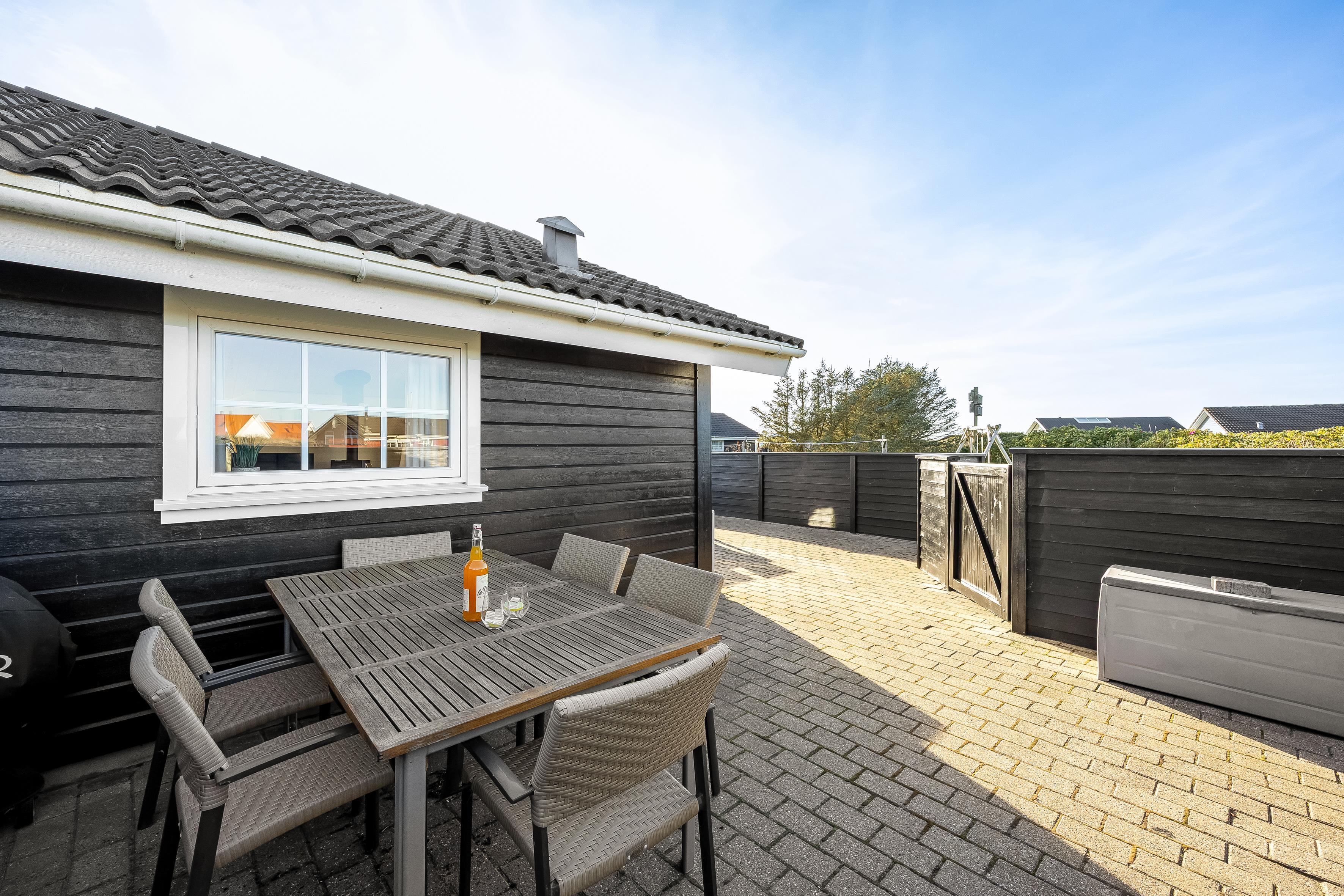 Moderne sommerhus nær Vesterhavet med spa, lukket terrasse og plads til hunde.