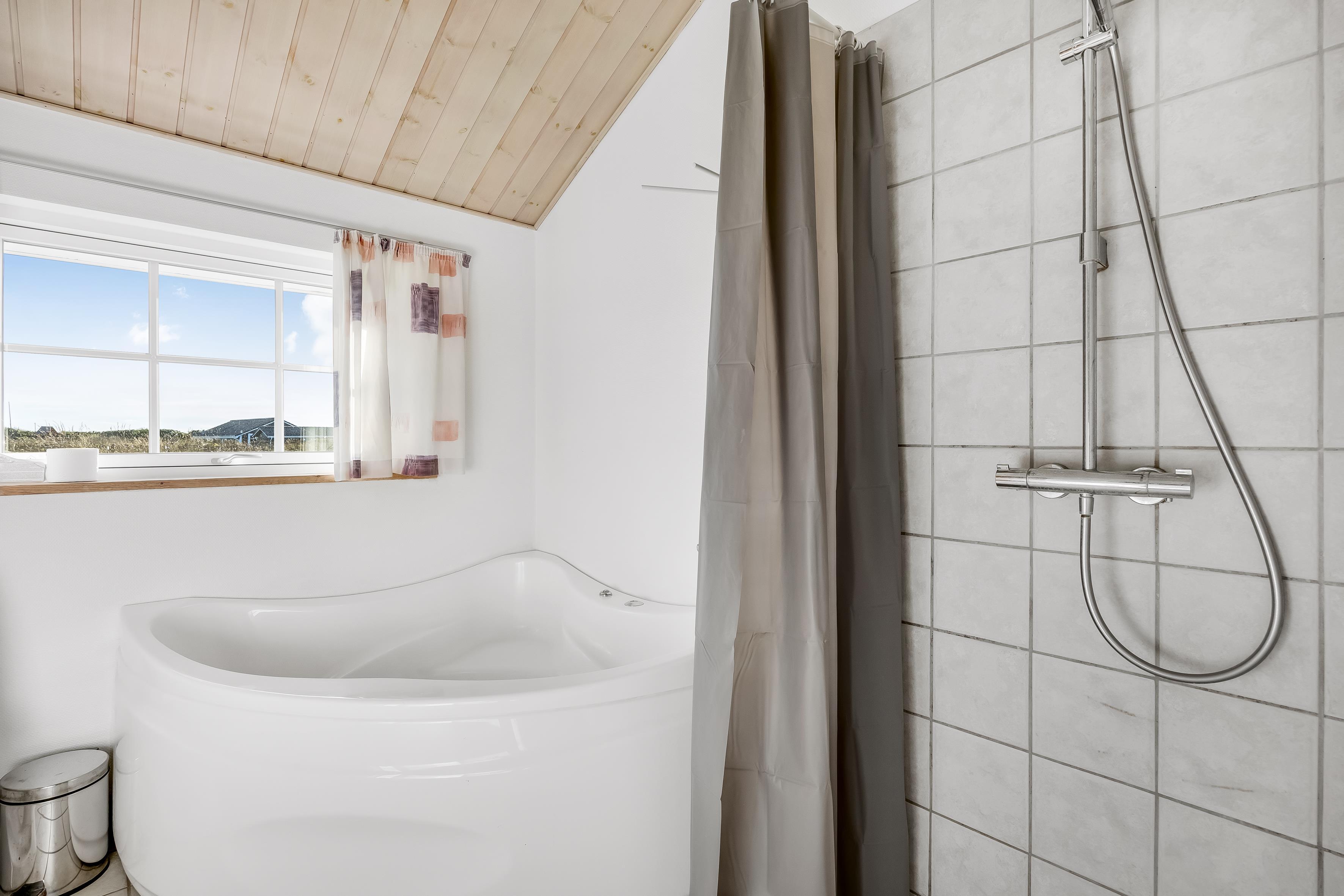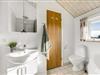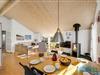 Sommerhuset er moderne og godt udstyret med energivenlig varmepumpe, vaskemaskine, brændeovn og en fryser med 60 liters kapacitet. Køkkenet er udstyret med alt, hvad du har brug for: induktionskogeplader, opvaskemaskine, mikrobølgeovn, varmluftovn og køleskab. Der er ét stort badeværelse med gulvvarme og bruseniche samt et ekstra gæstetoilet – også med gulvvarme.