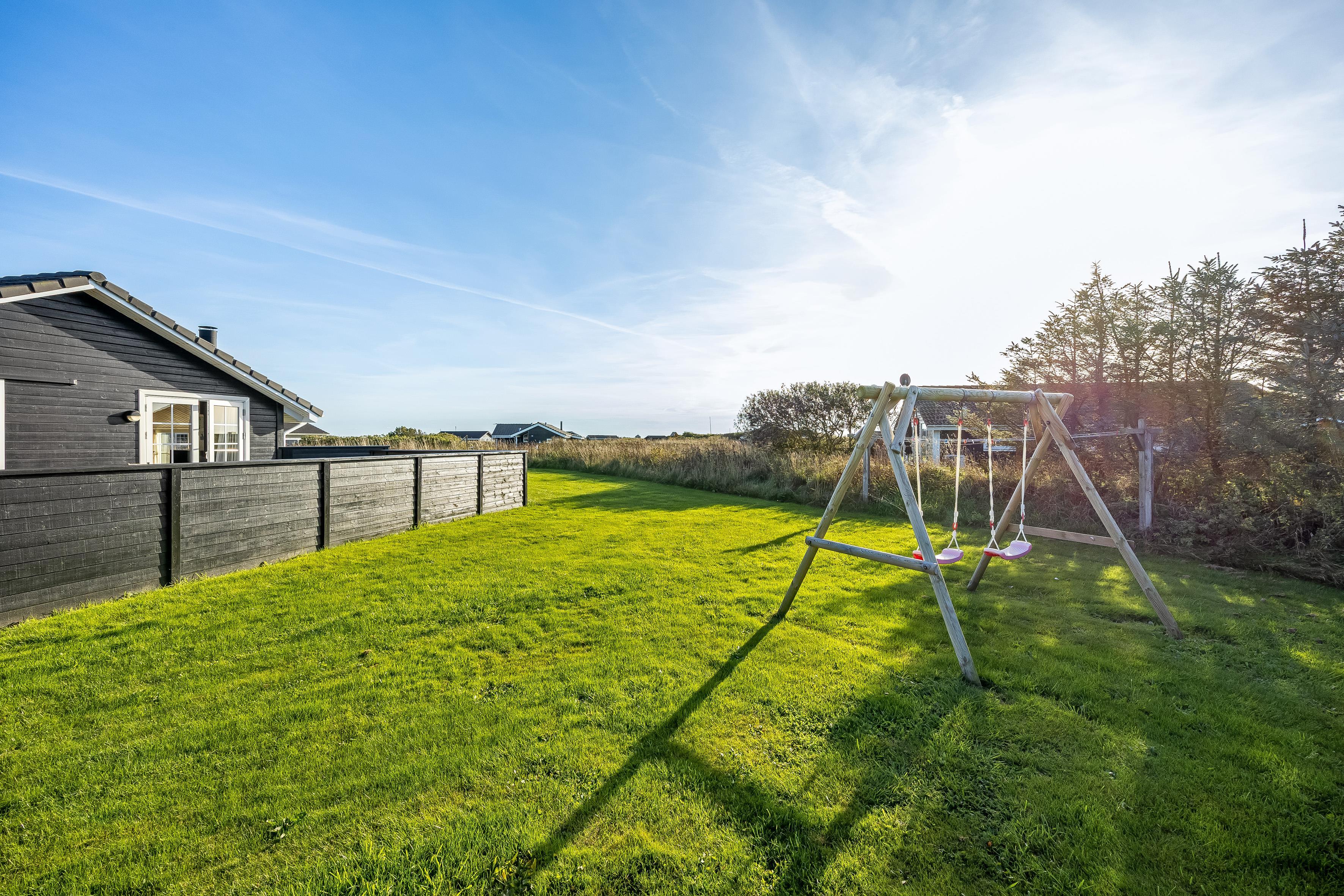 Sommerhuset ligger på en rummelig naturgrund på hele 1.260 m². Her er der god plads til leg og afslapning, og terrassen på 85 m² er lukket, så både børn og hunde kan opholde sig trygt ude. Huset byder også på gynge, grill, redskabsrum og carport. Der er desuden elbil-lader installeret med CEE-stik, og gratis parkering lige ved døren.
