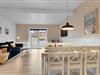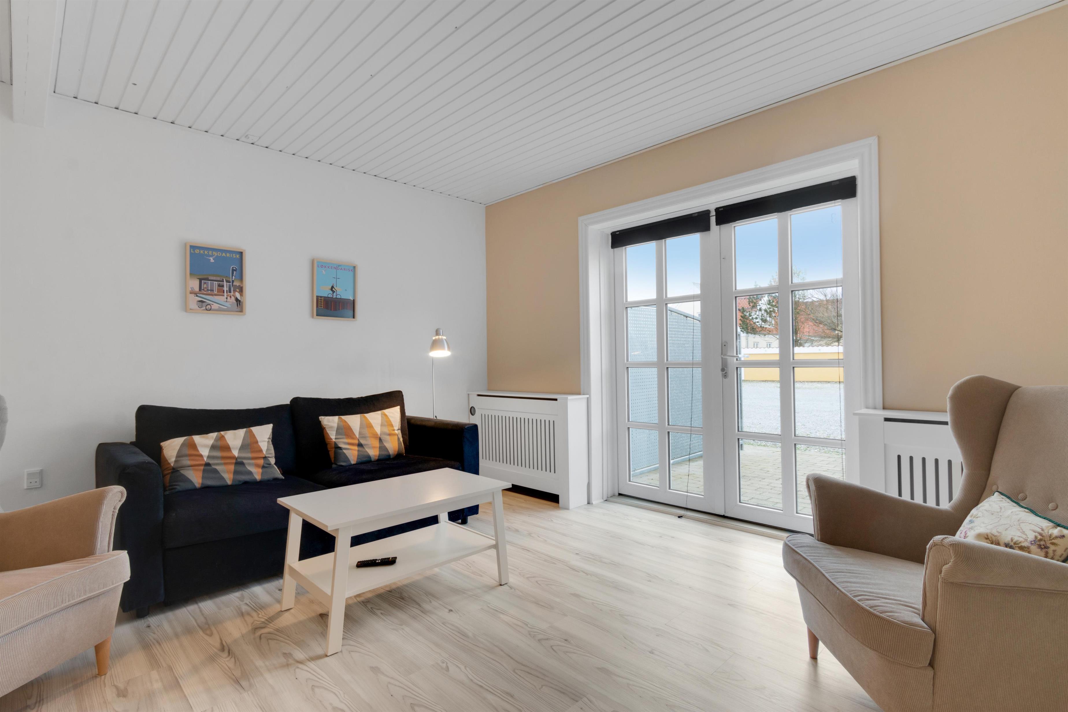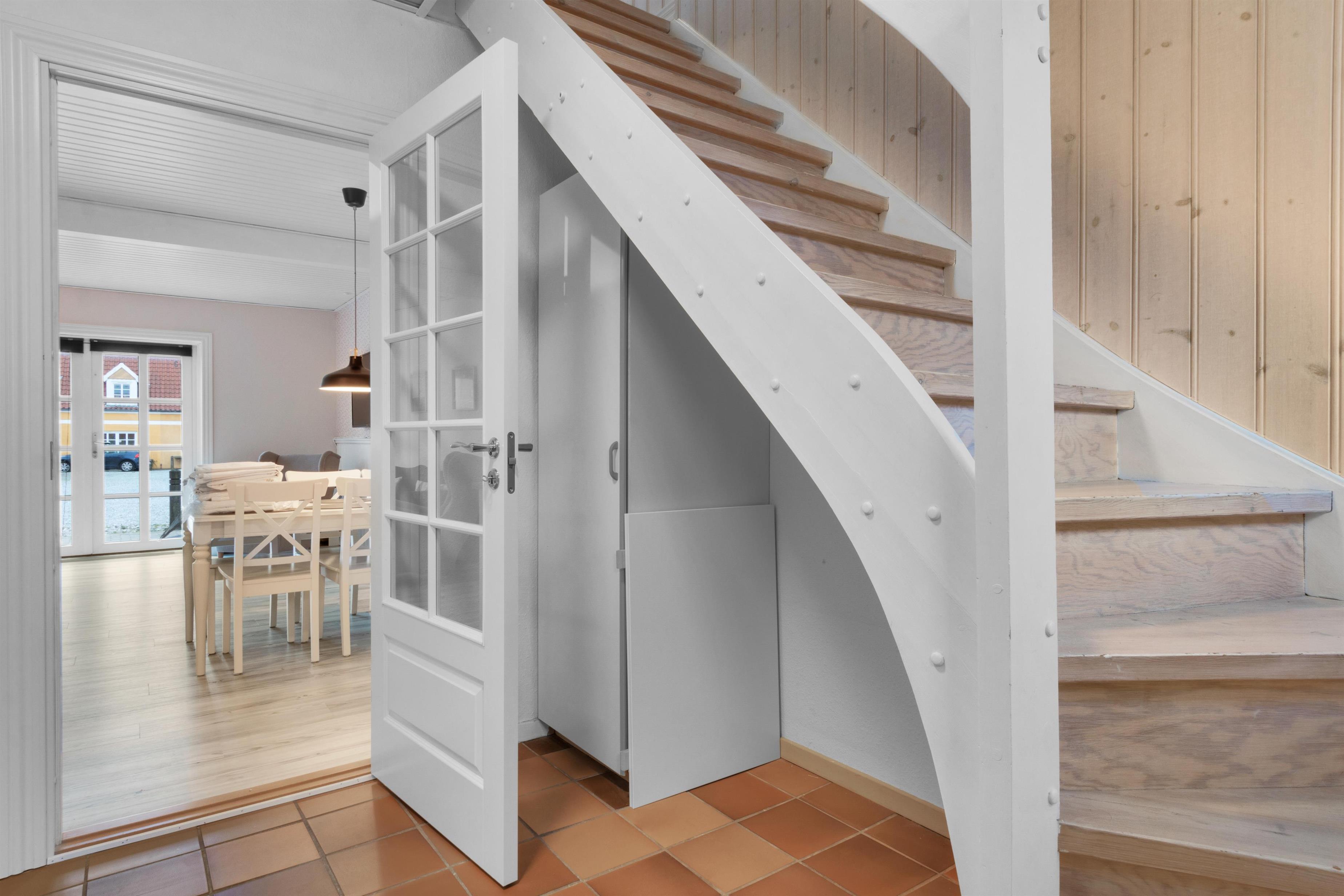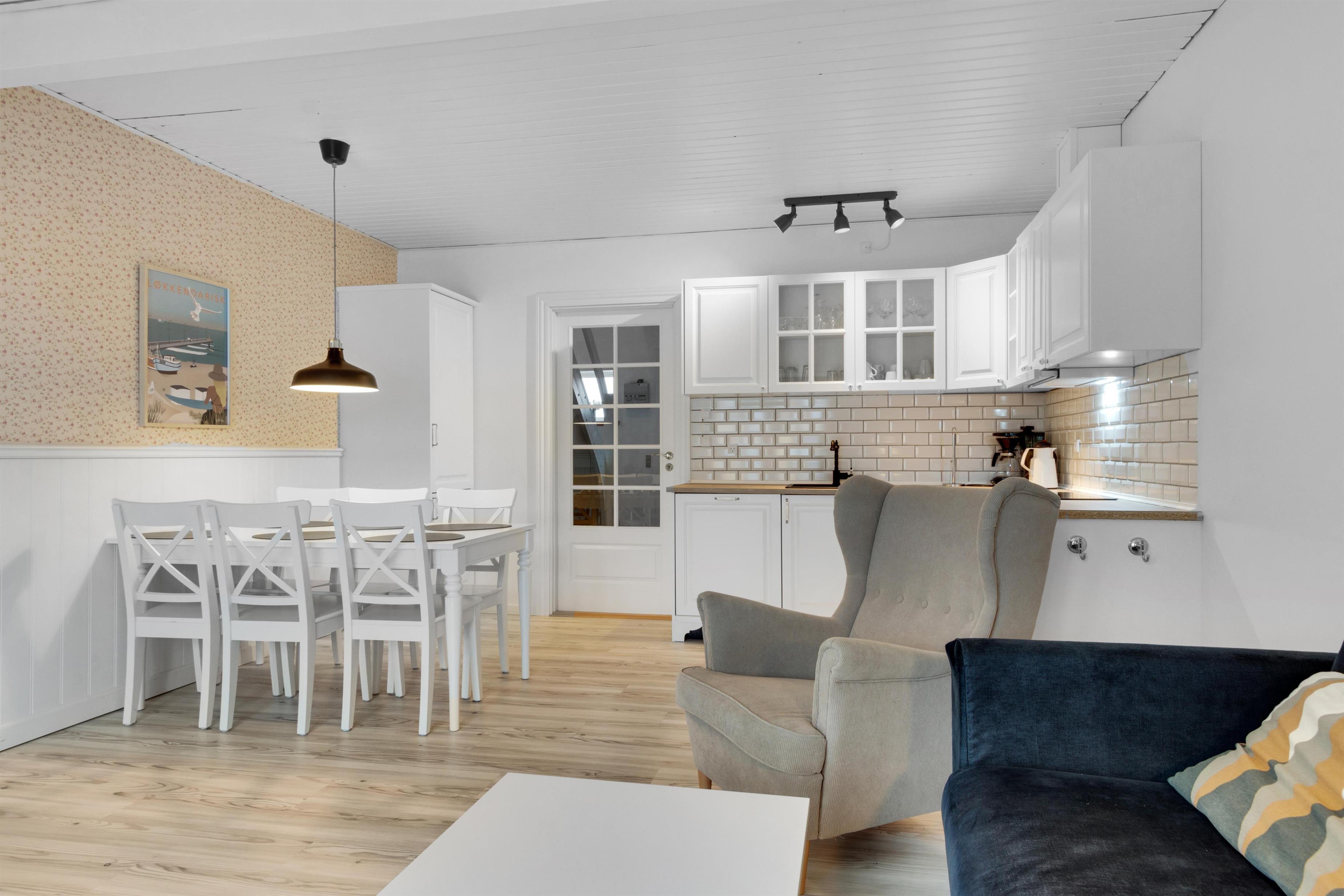 Ferieboligen er simpelthen super hyggelig og samtidig praktisk indrettet i to plan. Her er både plads til syvsovere og natteravne, idet soverummene er placeret på boligens første sal, mens stue, bad og køkken/alrum er i stueplan. Fra det åbne køkken/alrum og stue er der udgang til en dejlig terrasse, hvor man kan sidde i solen og hænge sit saltvandsfyldte badetøj til tørre efter en dejlig tur på stranden.
