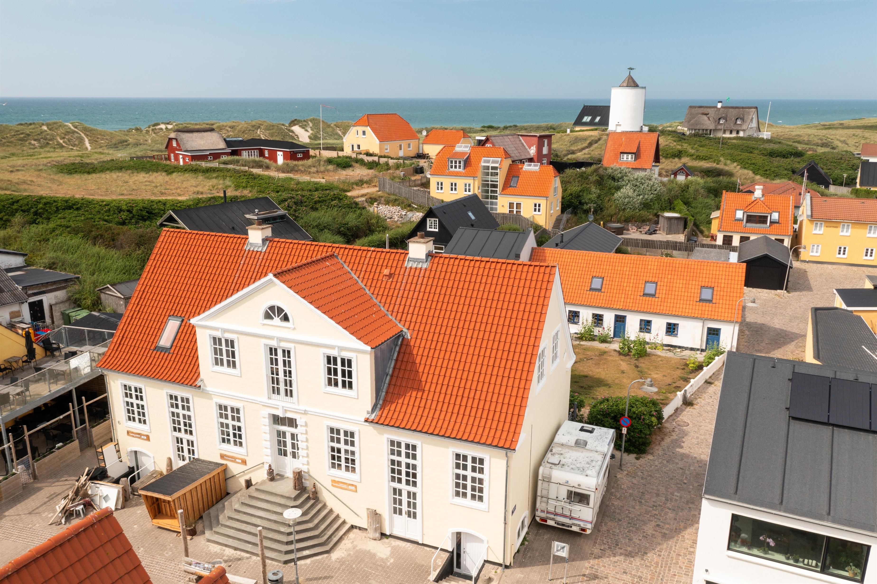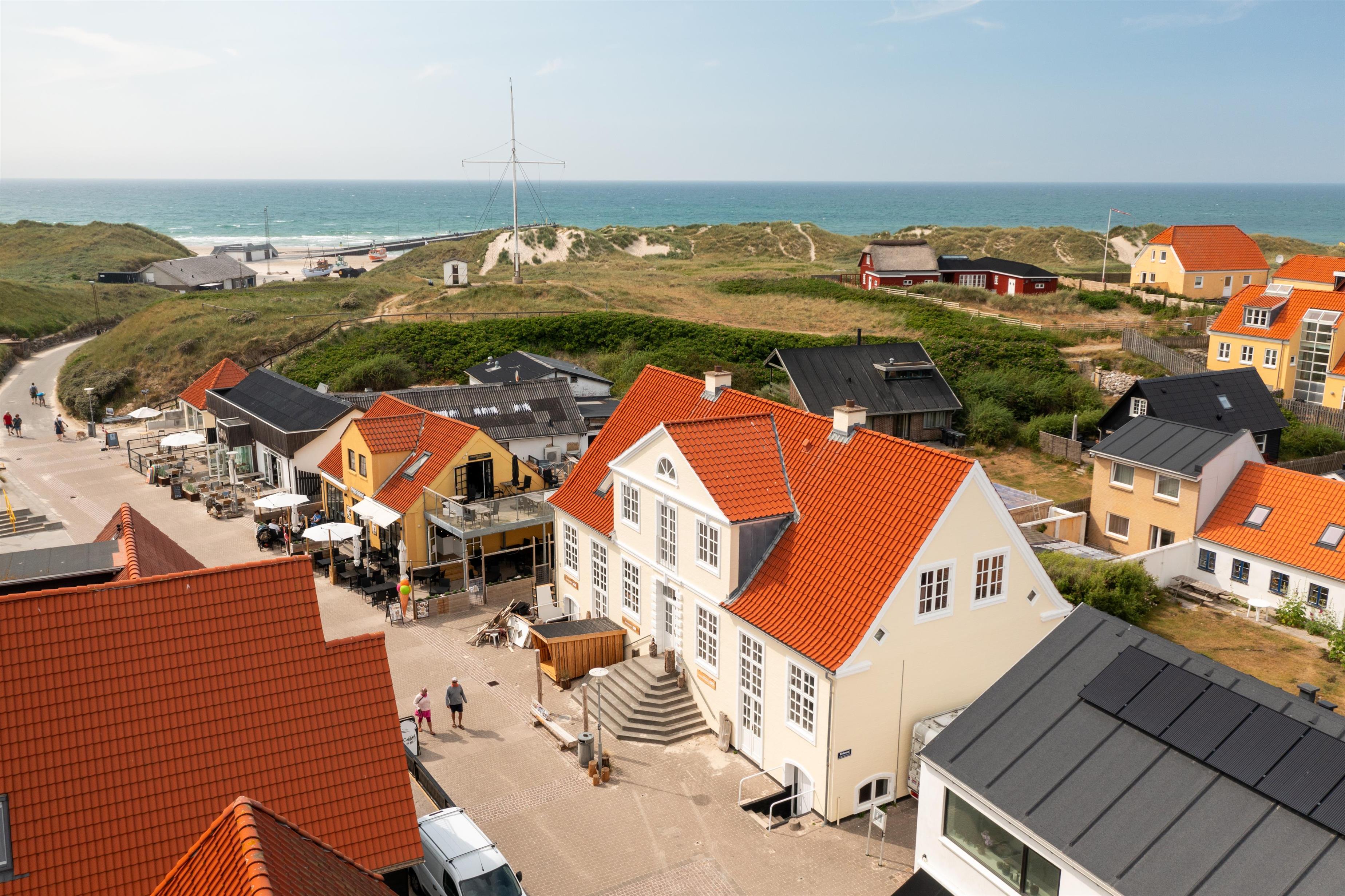 Lejligheden ligger på første sal i en imponerende smuk ejendom. Beliggenheden midt i Løkken centrum med havkig og blot få meter til Vesterhavet gør, at man er dejlig tæt på alting, og alligevel er hævet en etage op fra trafik og larm fra byens liv. Løkken by er tilmed stedet, hvor der er masser af plads, uanset om man ønsker outdoor aktiviteter, wellness og forkælelse eller ro og fordybelse.