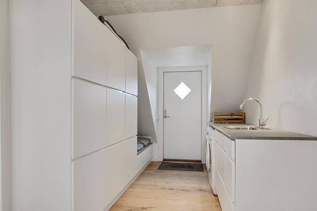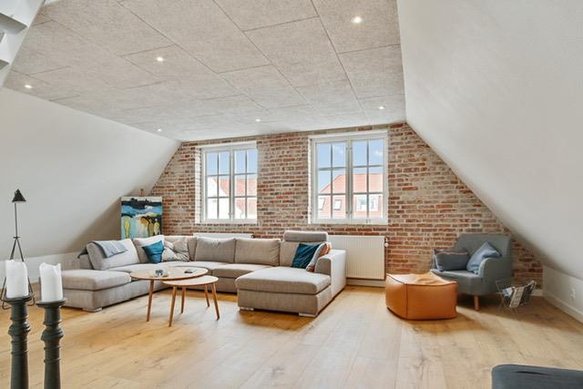 Ferielejligheden er praktisk og vildt lækkert indrettet, og her er fokus på komfort og moderne faciliteter. Lejligheden er opvarmet med fjernvarme, hvilket er såvel praktisk som økonomisk fornuftigt. Stort, lyst og lækkert køkken og stue, og ellers alt, hvad ens hjerte begærer, når man lejer en moderne og nyrenoveret ferielejlighed i Løkken. To lyse soverum, hyggelige skråvægge, fritlagte bjælker og en placering i en charmerende bygning.