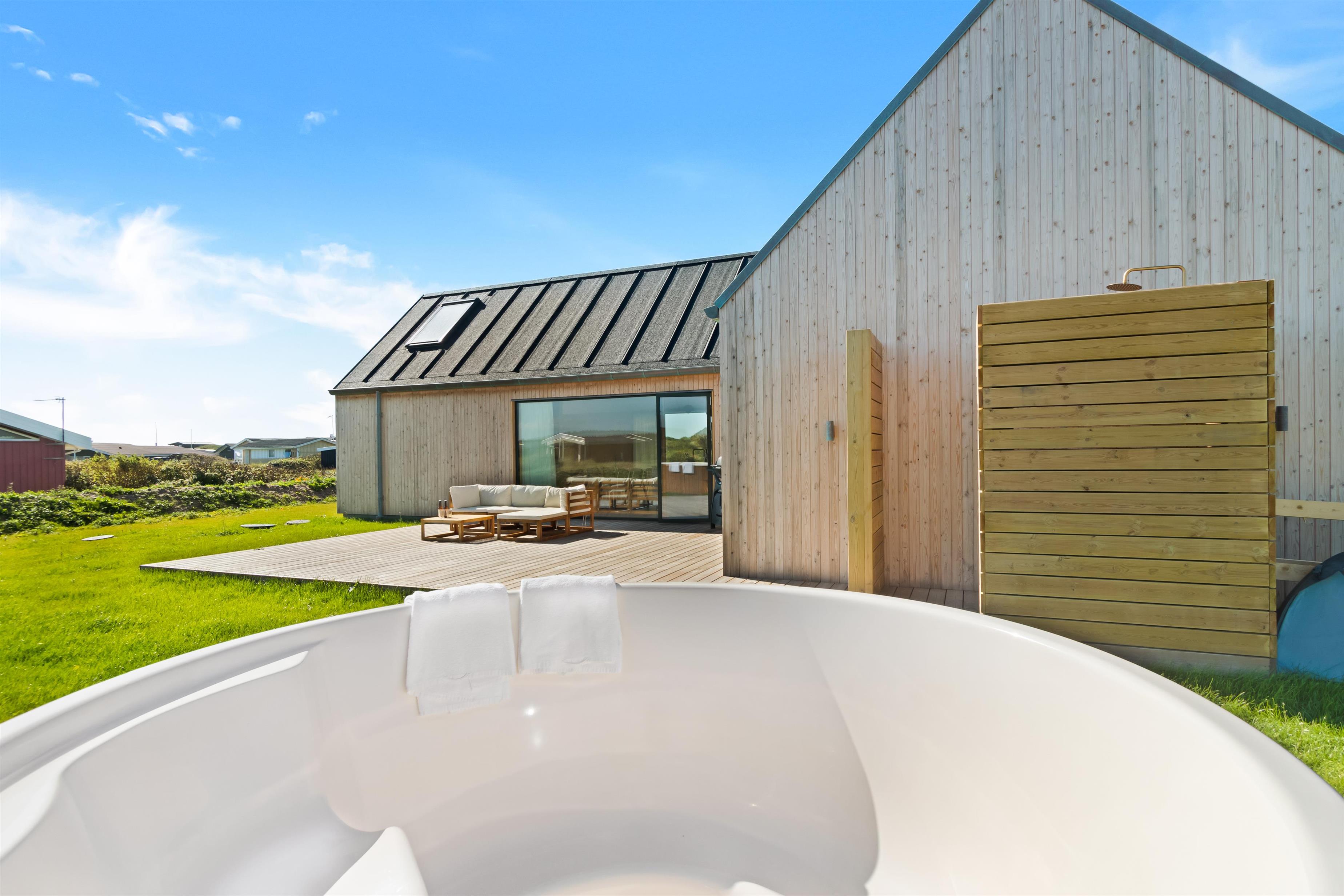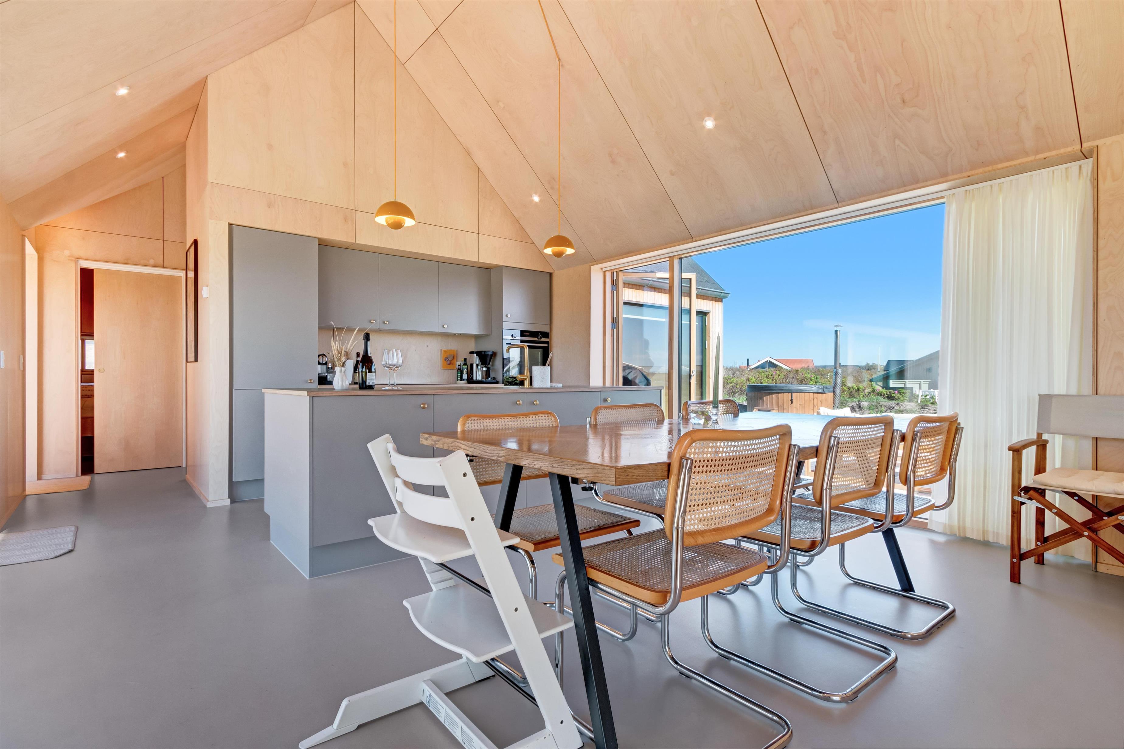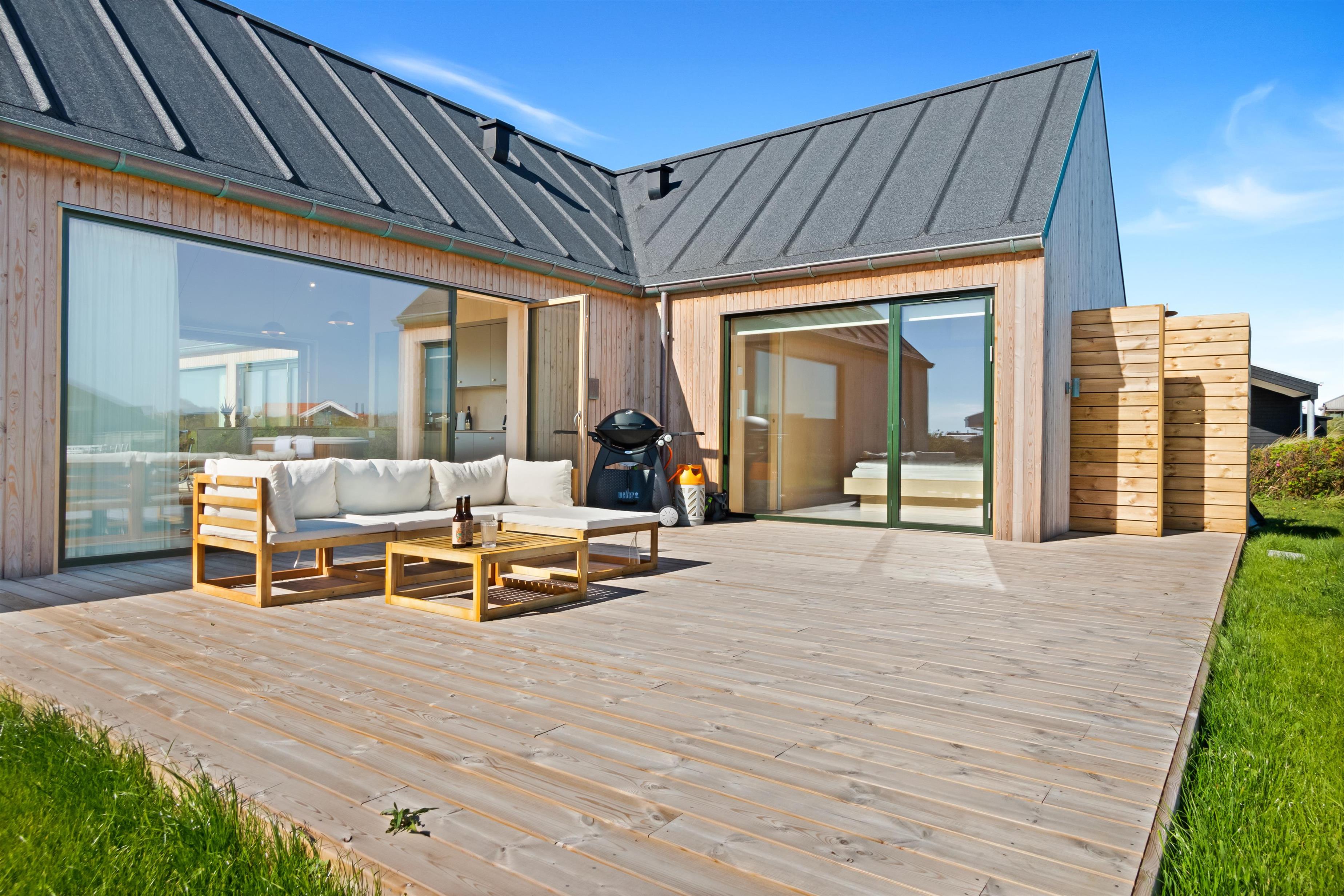 Huset på Magnus Christensens Vej nummer 97 er såvel lækkert, som minimalistisk og hyggeligt. Huset emmer af kvalitet og masser af rum til hygge og afslapning. Her er plads til 8 personer fordelt på 4 soverum. Der er to utroligt lækre badeværelser, to skønne terrasser, udespa, hems og alt, hvad hjertet begærer indenfor moderne faciliteter. Byggeåret er 2023, og alt fremstår derfor funklende nyt. Soverummene ligger for hver deres ende af husets 133 kvadratmeter, og de er afskærmede fra køkken/alrum/stue, så nogle kan gå til ro, mens andre bliver oppe.
